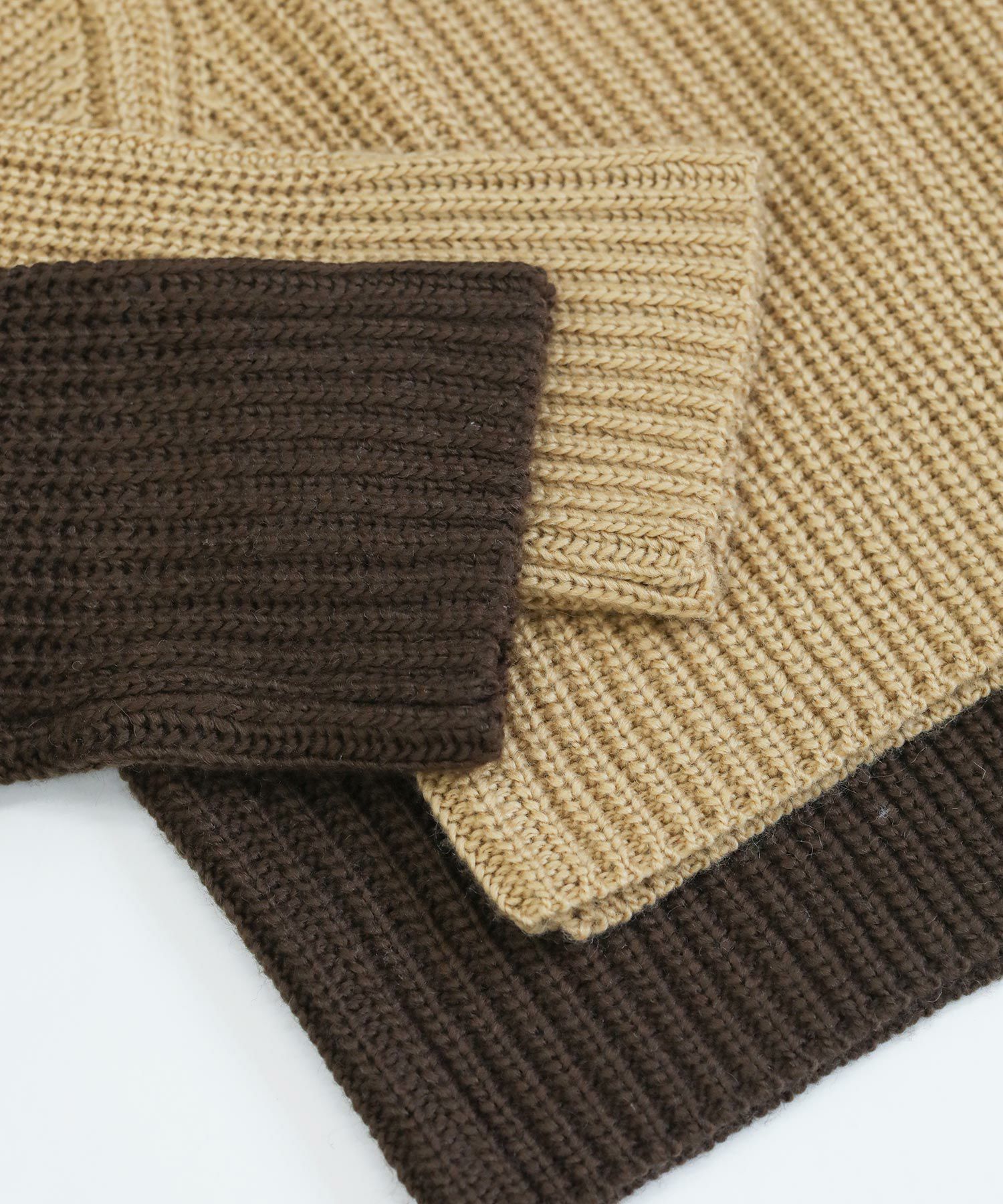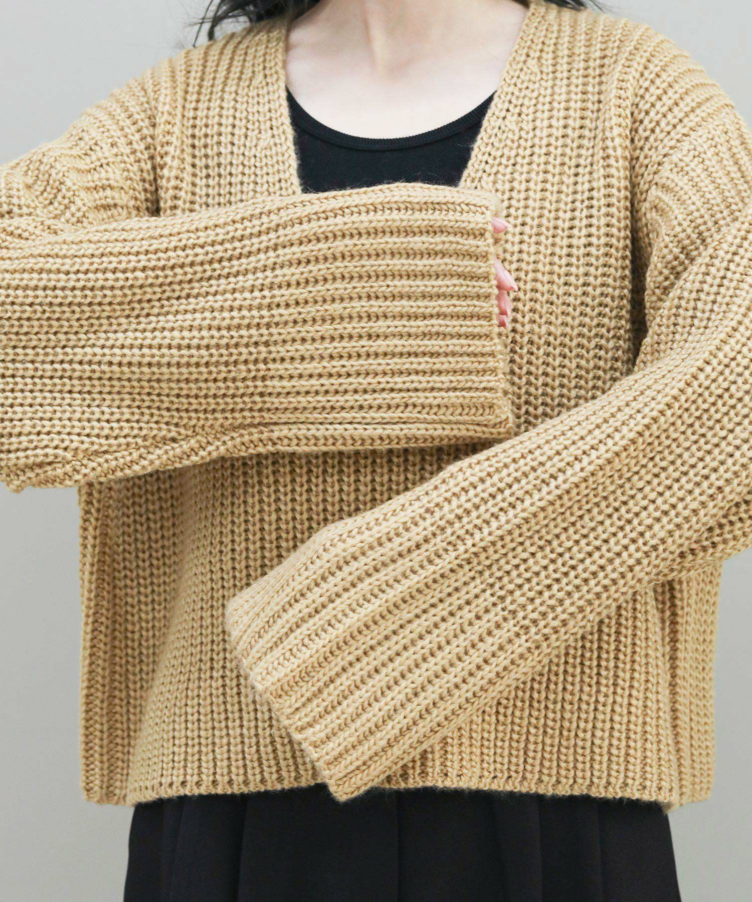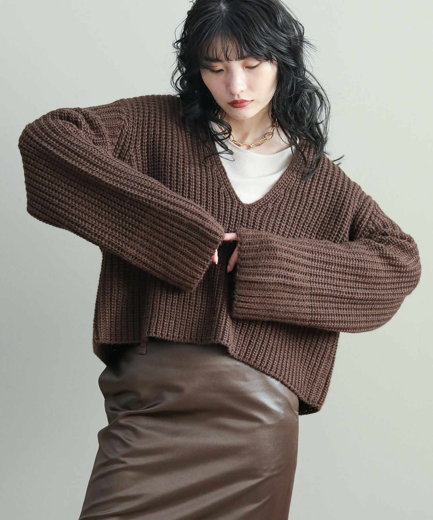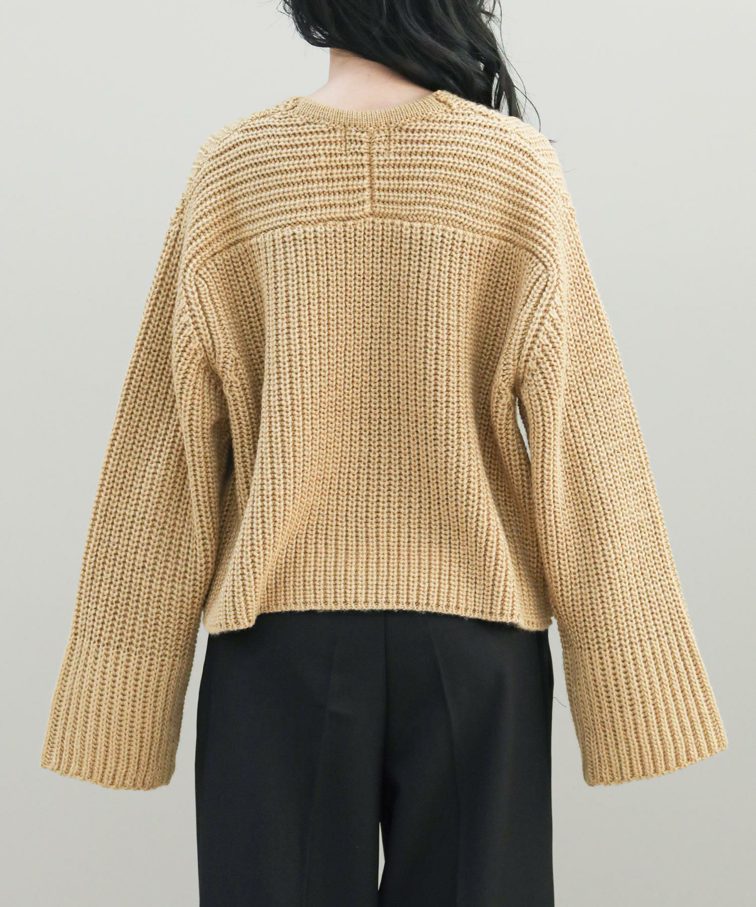 ベーシックな畦ニットですが、幅広の袖やネックラインでトレンド感を出しています。タートルネックやシャツとのレイヤードはもちろん、シンプルにロンTに重ねるだけでもサマになります。