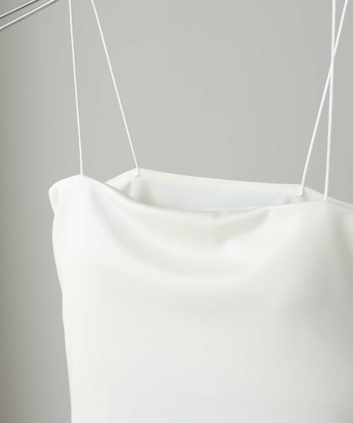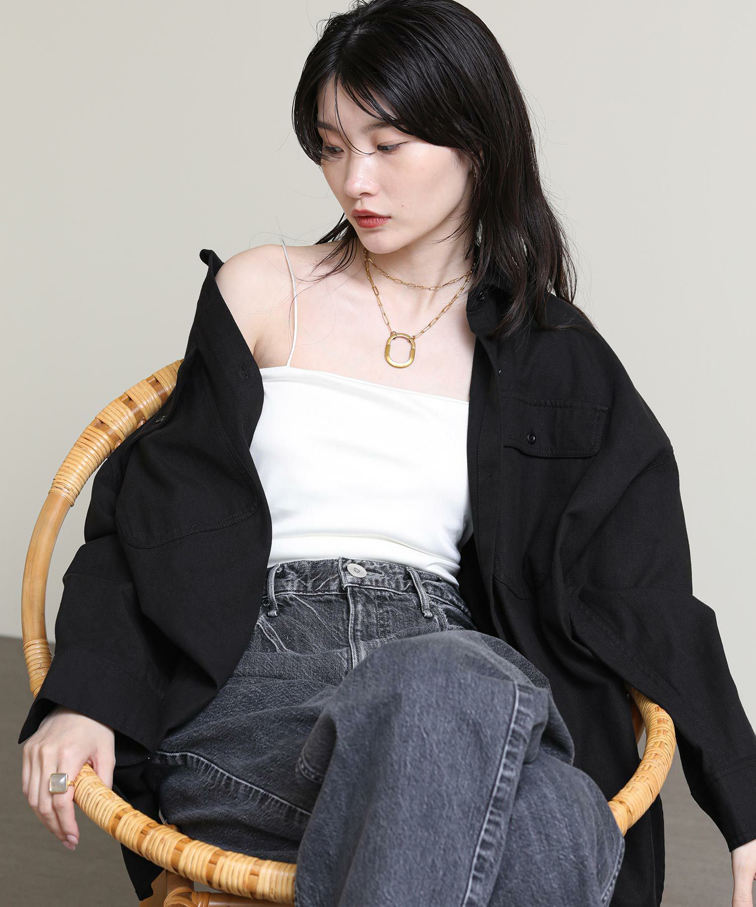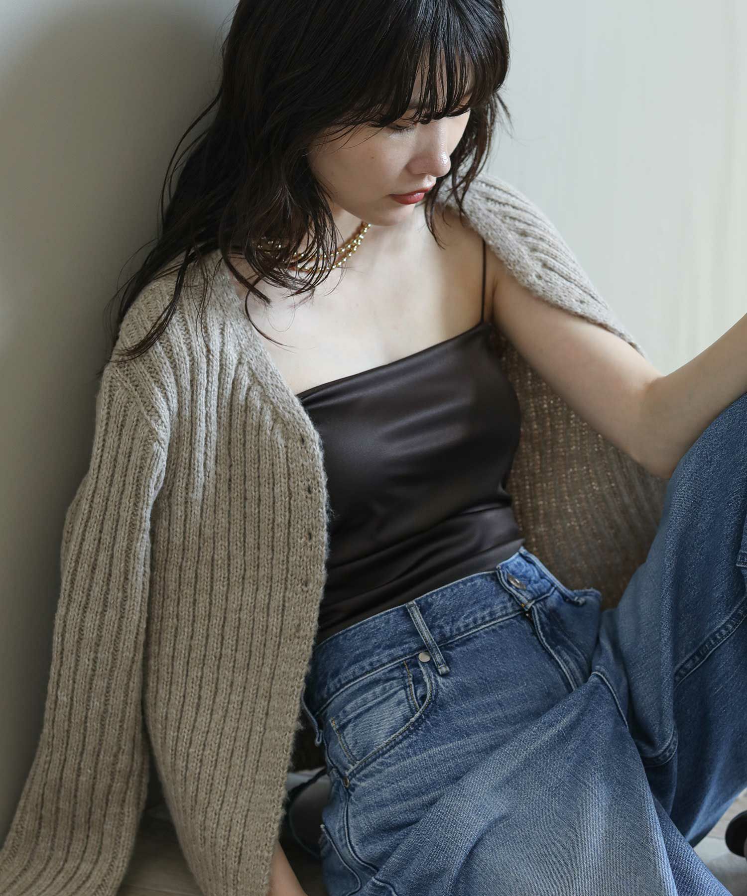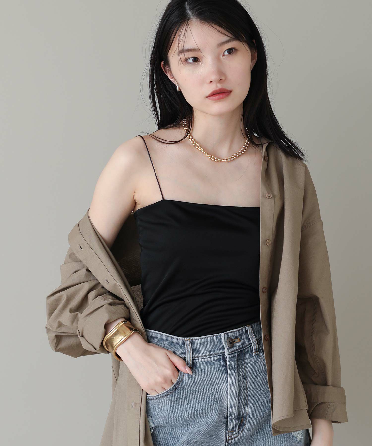 着丈を長くし安心感のあるサイジングになりました。カップはホールド感がありつつも主張しないものを選び、ヘルシーな見え方にこだわっています。サテンの上品な風合いが、深い開きのブラウスやカットソーのインナーにちらっと見えるとアクセントに。シャツをさっと羽織るのだけでも、こなれ感のあるコーディネートが完成します。