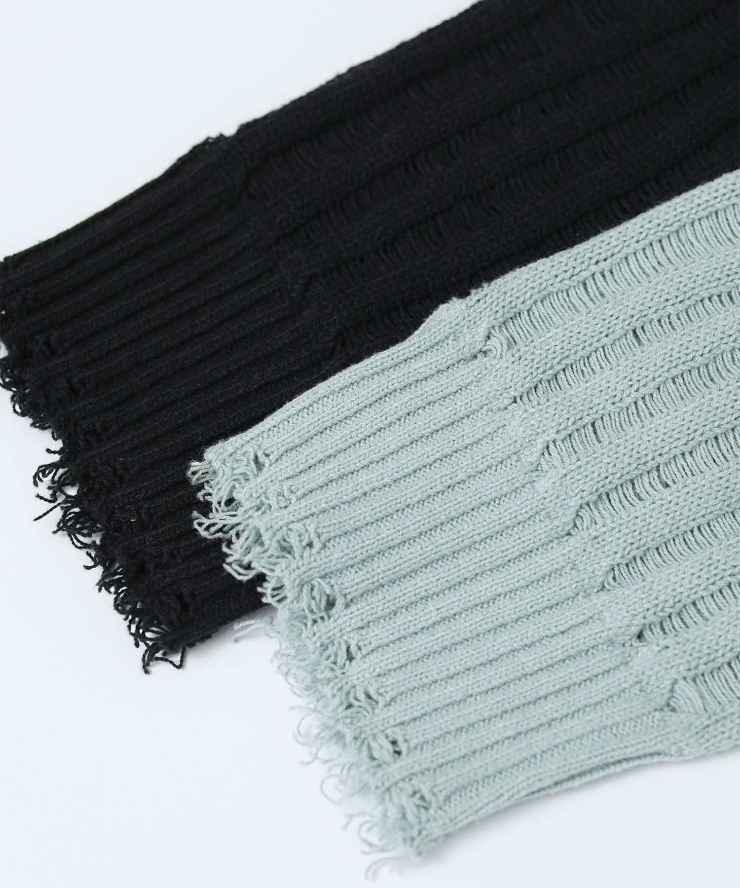 袖や裾のダメージデザインがポイントのプルオーバーニット。