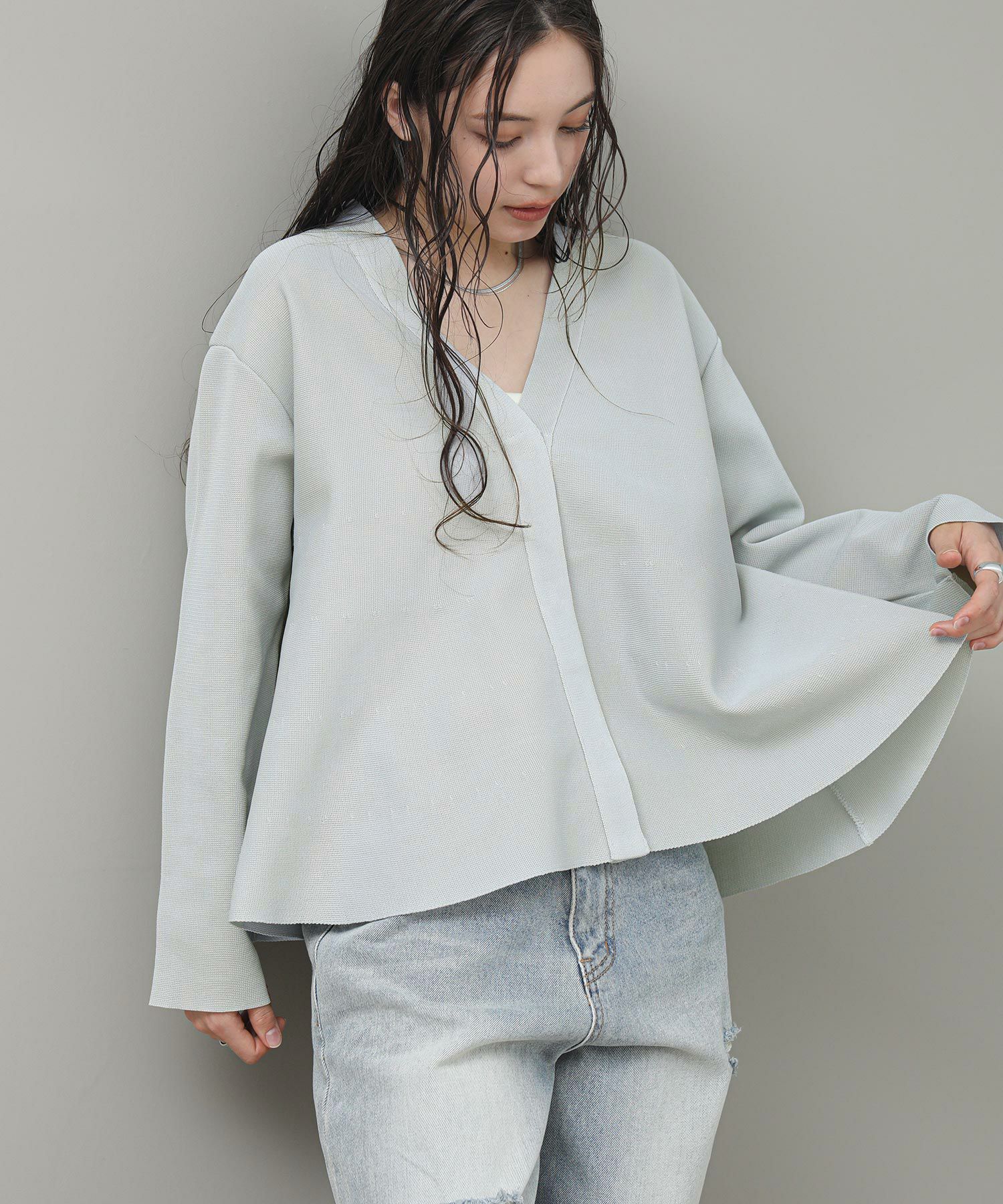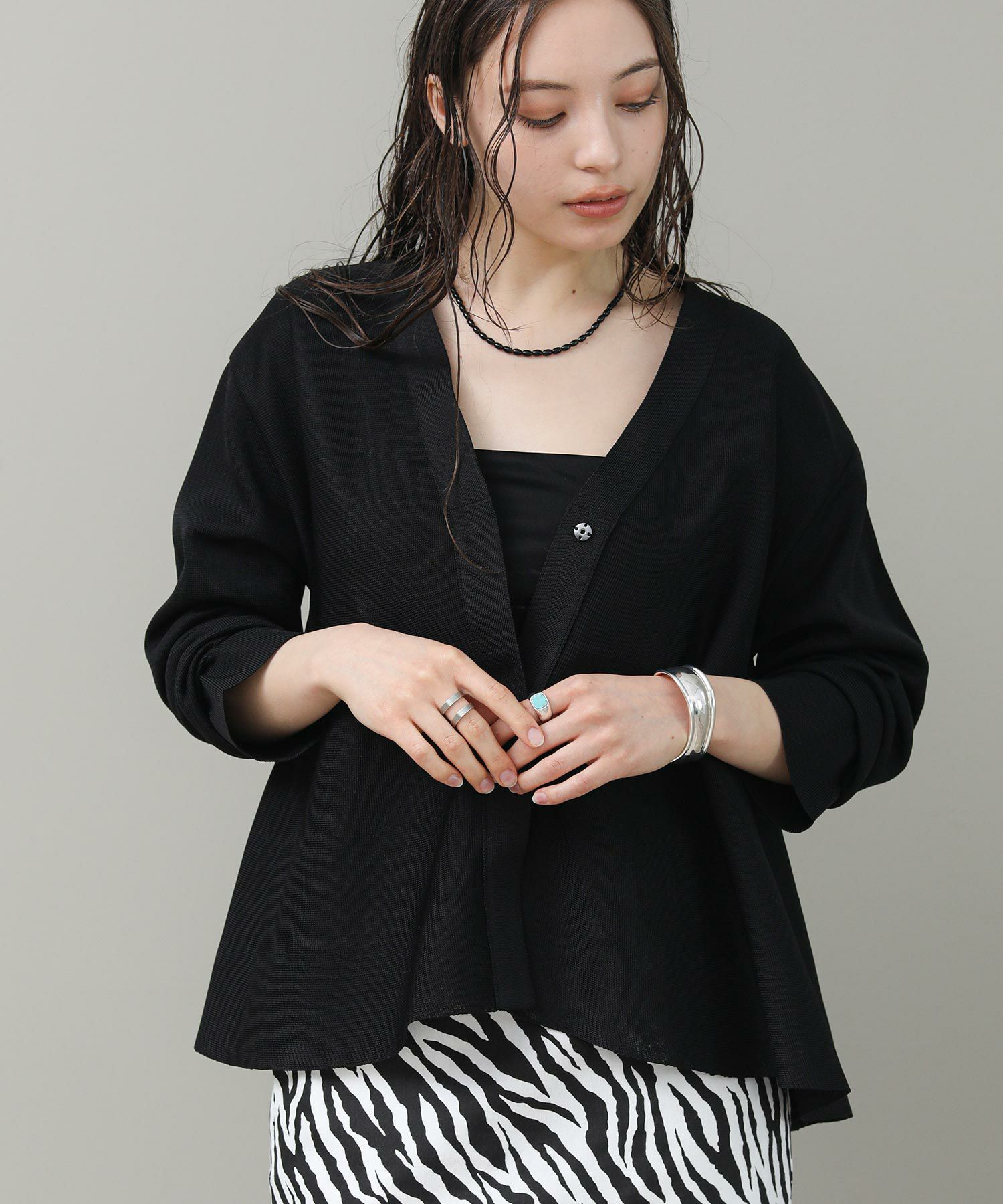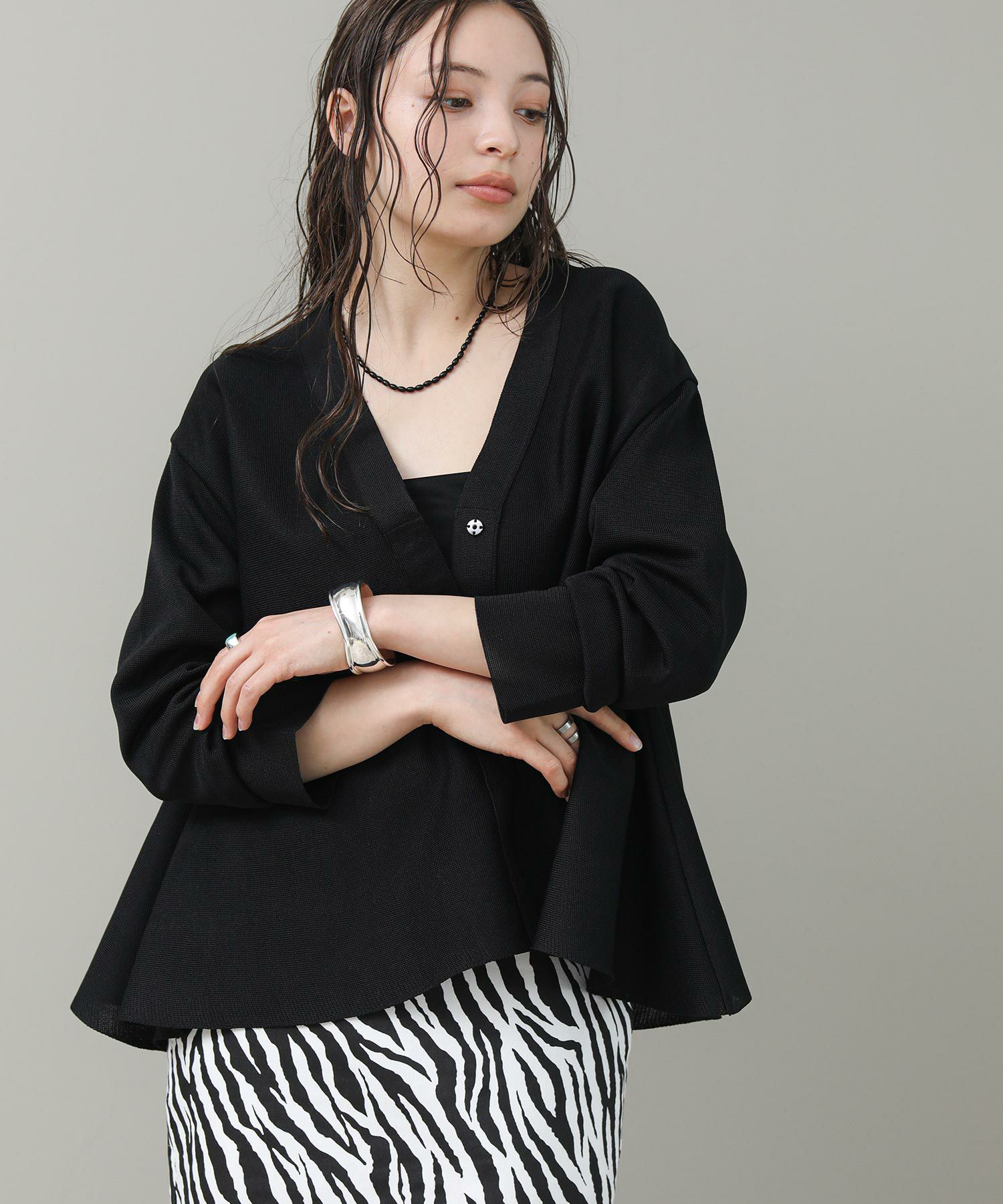 ペプラムシルエットが目を惹くカーディガン。