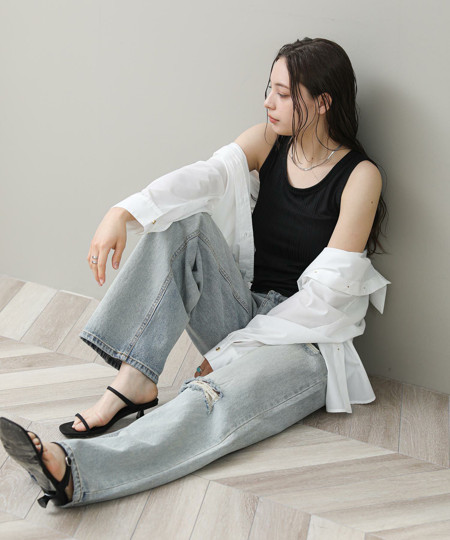 ※着用画像は撮影状況、光の当たり具合で色みが違って見える場合がございます。実際の色みについては、画像一覧の最後に掲載している詳細画像をご参照ください。