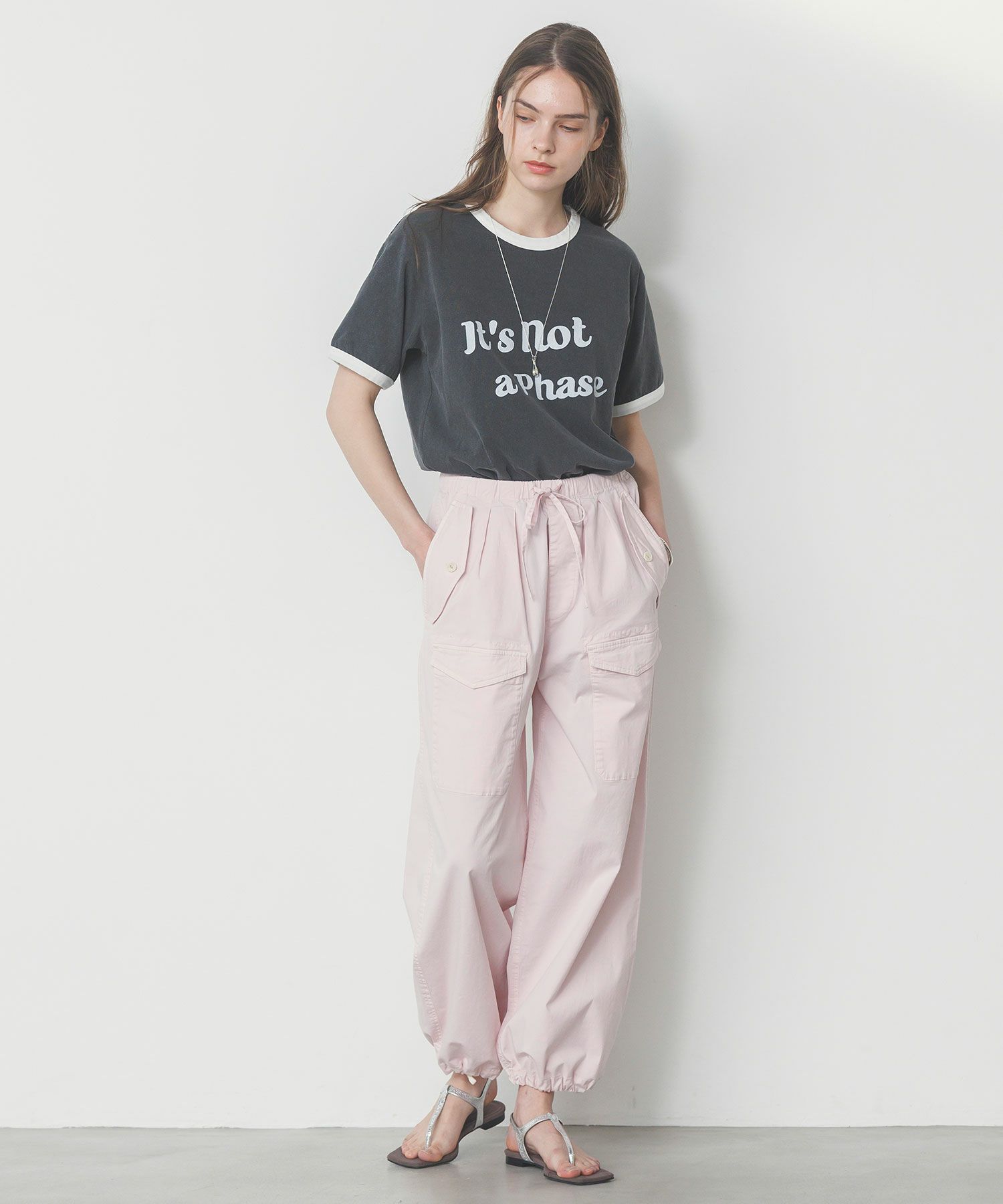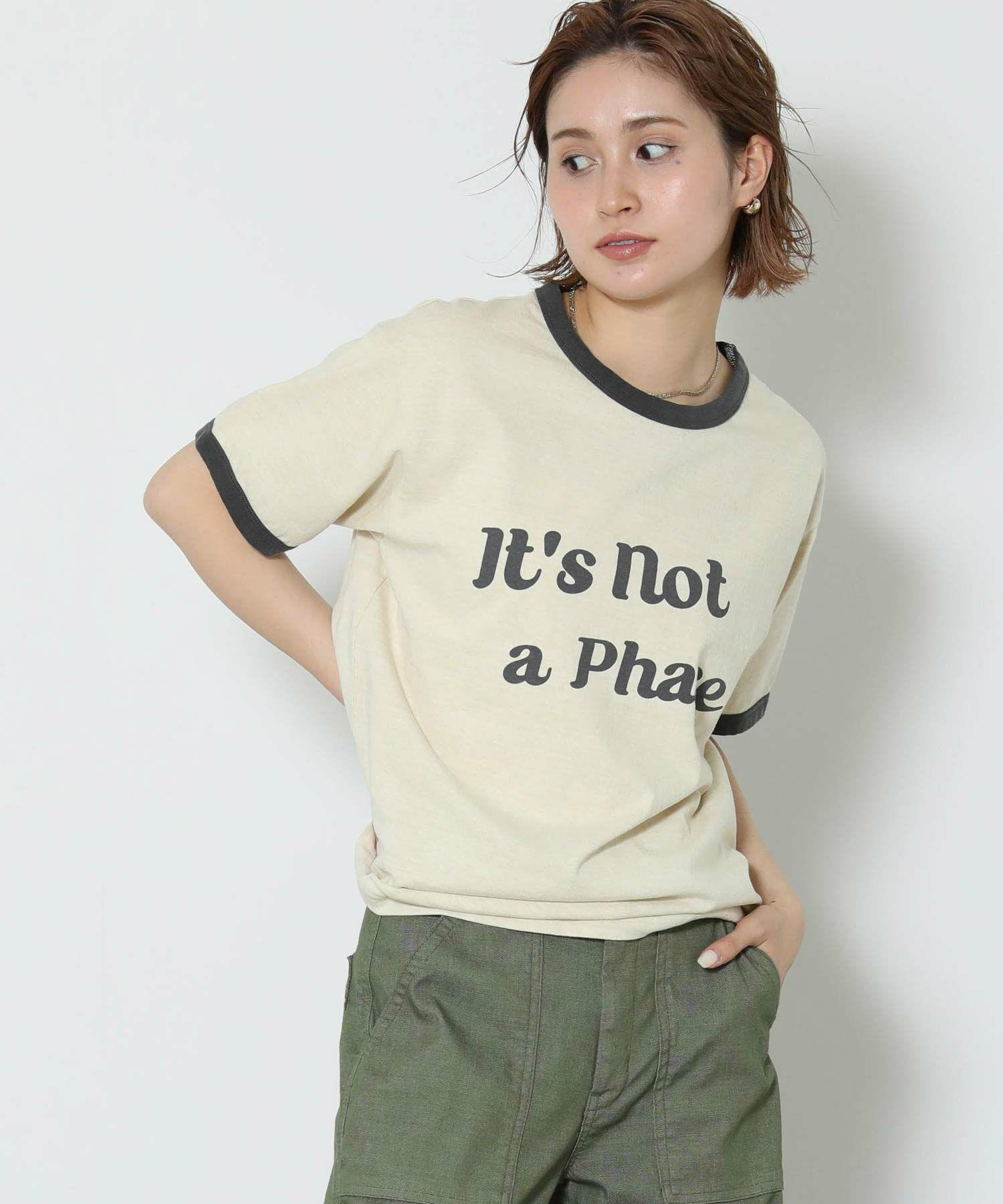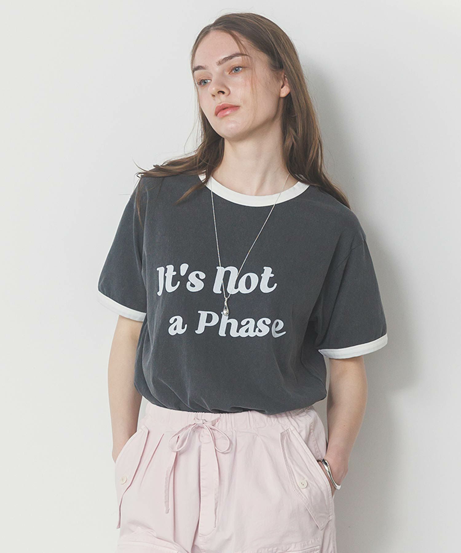 特殊な染色方法で染めるピグメント生地を使用し、ヴィンテージ感あるルックスなのがこだわりのポイント。カーゴパンツにサンダルでカジュアルに楽しんでもらいたい一着。「it’s not a phase」(”これが自分のスタイルなんだ”と自己主張するような時に使うスラング)のメッセージが心くすぐる、遊び心のあるデザインです。