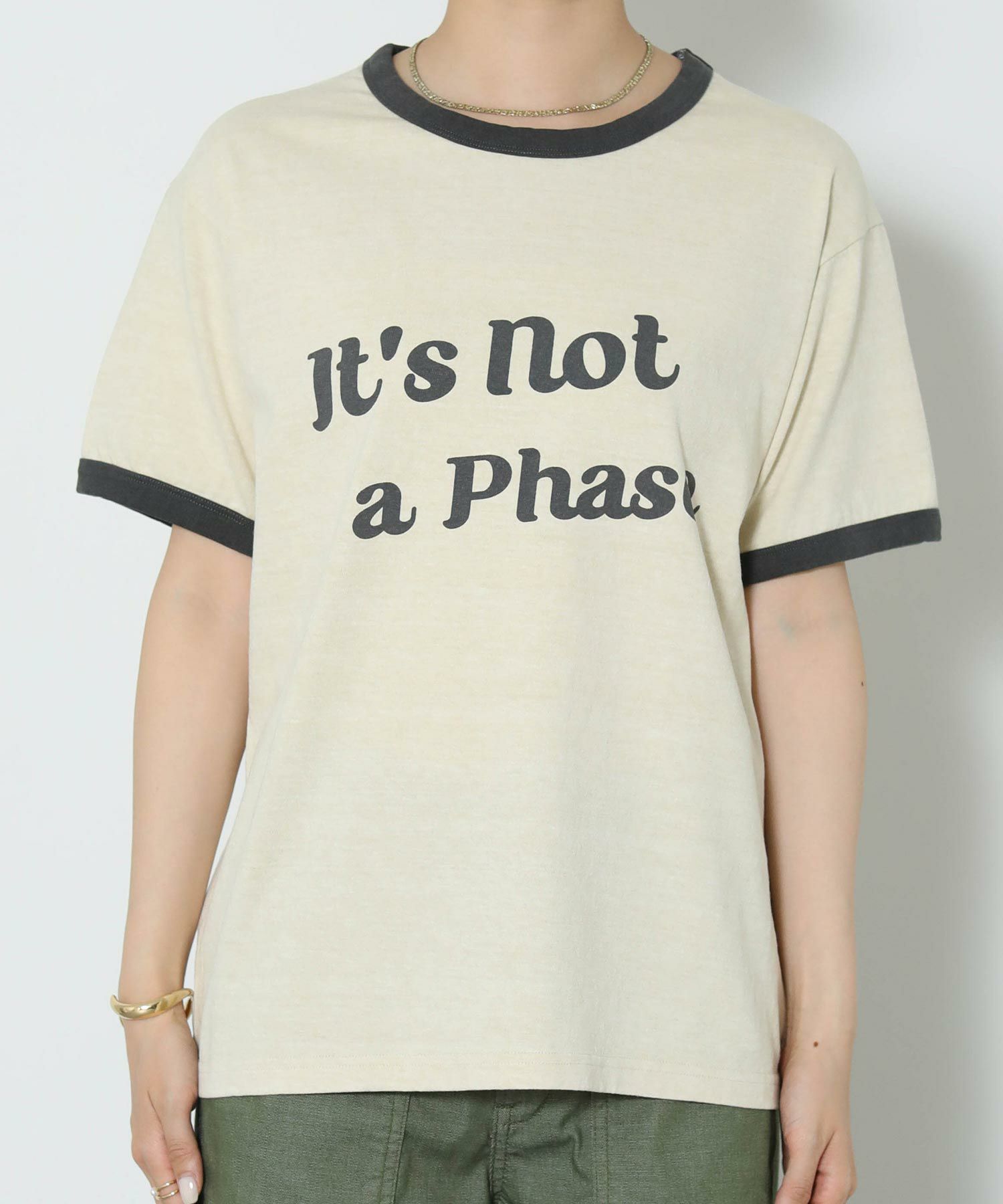 特殊な染色方法で染めるピグメント生地を使用し、ヴィンテージ感あるルックスなのがこだわりのポイント。カーゴパンツにサンダルでカジュアルに楽しんでもらいたい一着。「it’s not a phase」(”これが自分のスタイルなんだ”と自己主張するような時に使うスラング)のメッセージが心くすぐる、遊び心のあるデザインです。