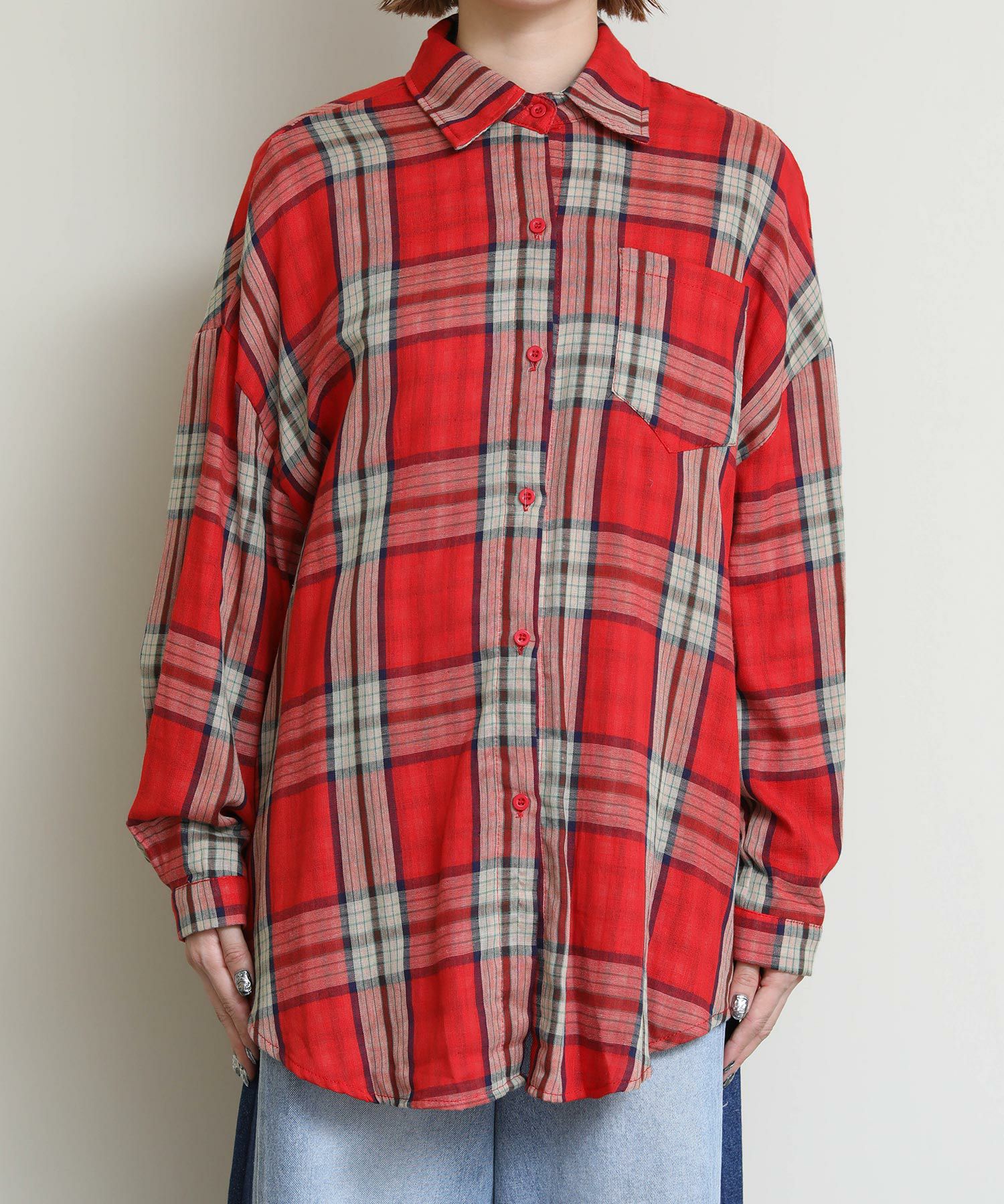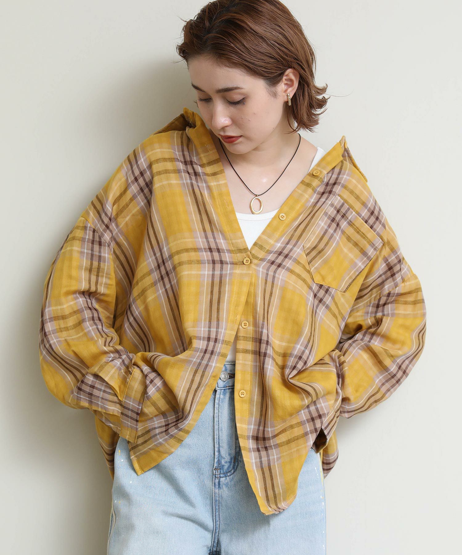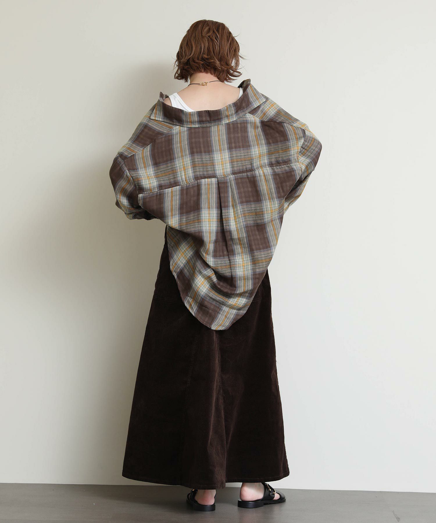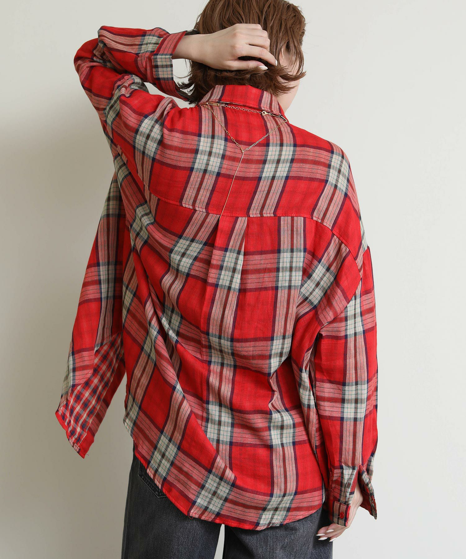 ドルマンシルエットが魅力のチェックシャツ。