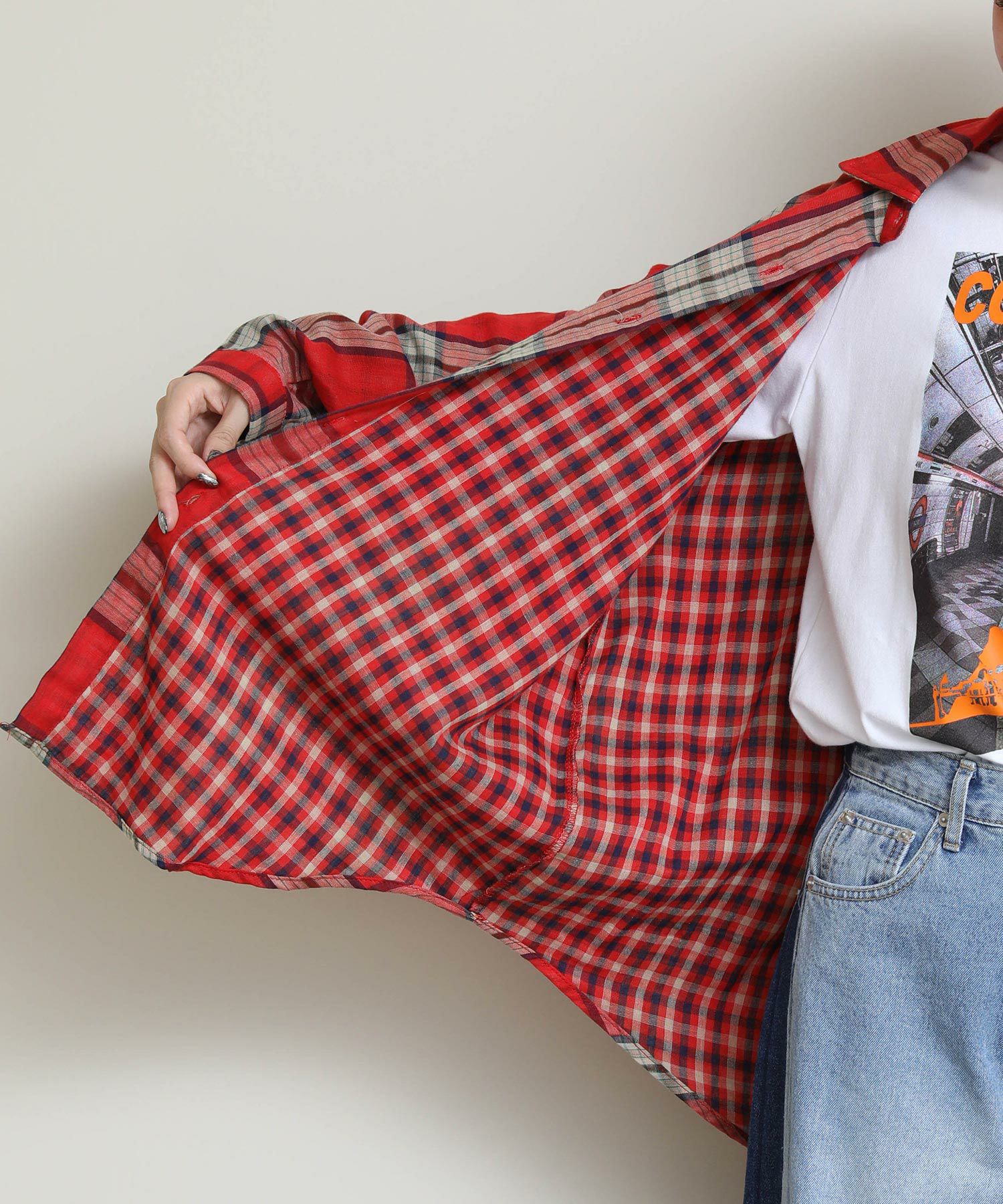 ボタンを閉めてプルオーバーとしても、羽織りとしても着用していただけます。表地と裏地でチェックの柄が異なるのもポイント。