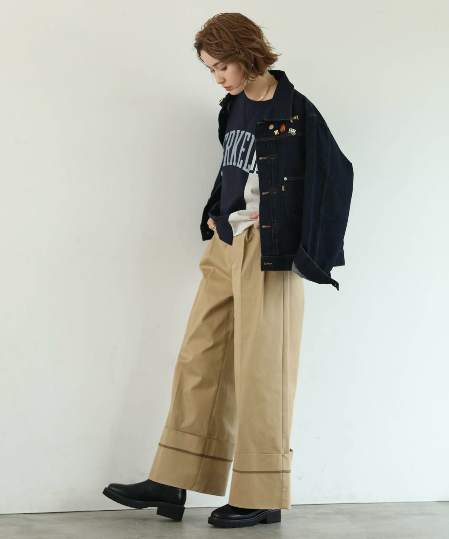 袖をくるっと折り返してもこなれ感が出て可愛くスタイリングして頂けます。