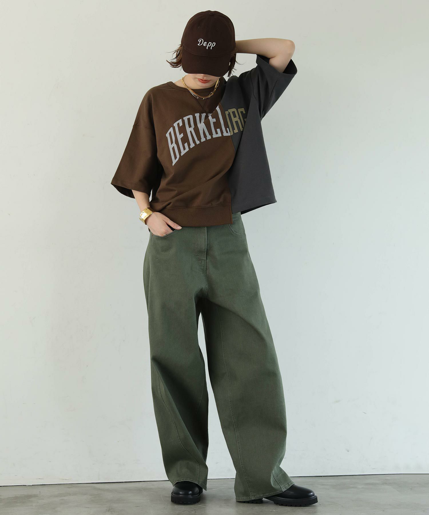 ※着用画像は撮影状況、光の当たり具合で色みが違って見える場合がございます。実際の色みについては、画像一覧の最後に掲載している詳細画像をご参照ください。