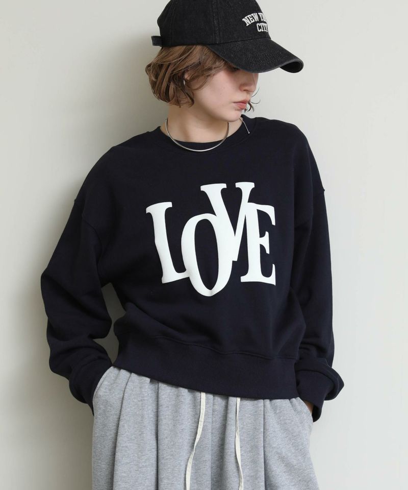 シンプルながらも存在感のある「LOVE」のプリントが特徴で、明るいイエローとシックなネイビーの2色展開で、どちらもコーディネートのアクセントにぴったりな一着です。