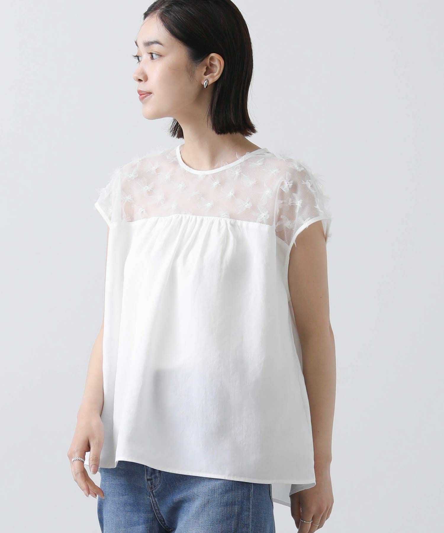立体的な3D刺繍ヨークがポイントのブラウス。