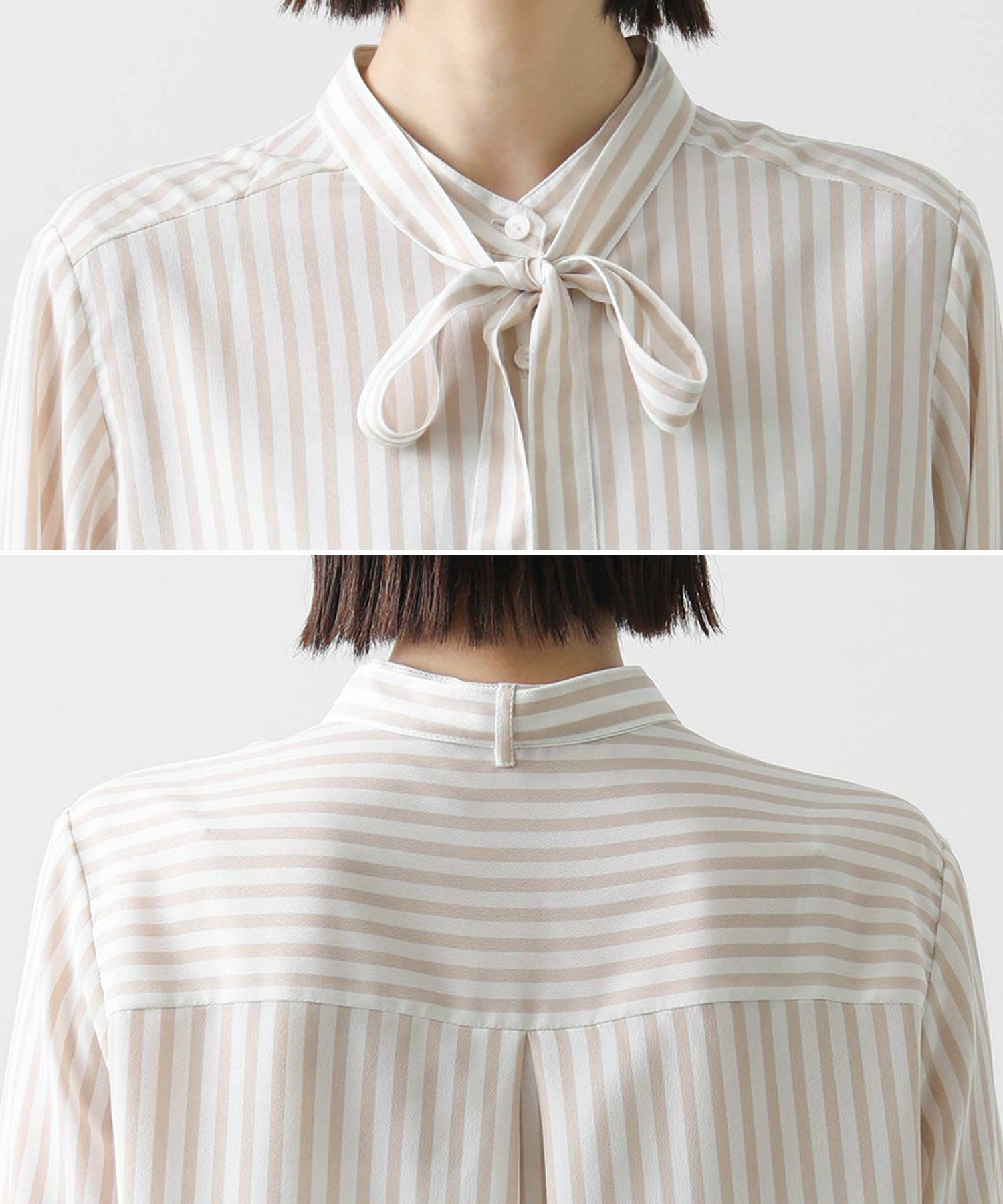 ボウタイは取り外し可能なので、アレンジ自由。オフィスにはもちろん、デニム合わせでカジュアルな着こなしにも幅広く活躍してくれます。