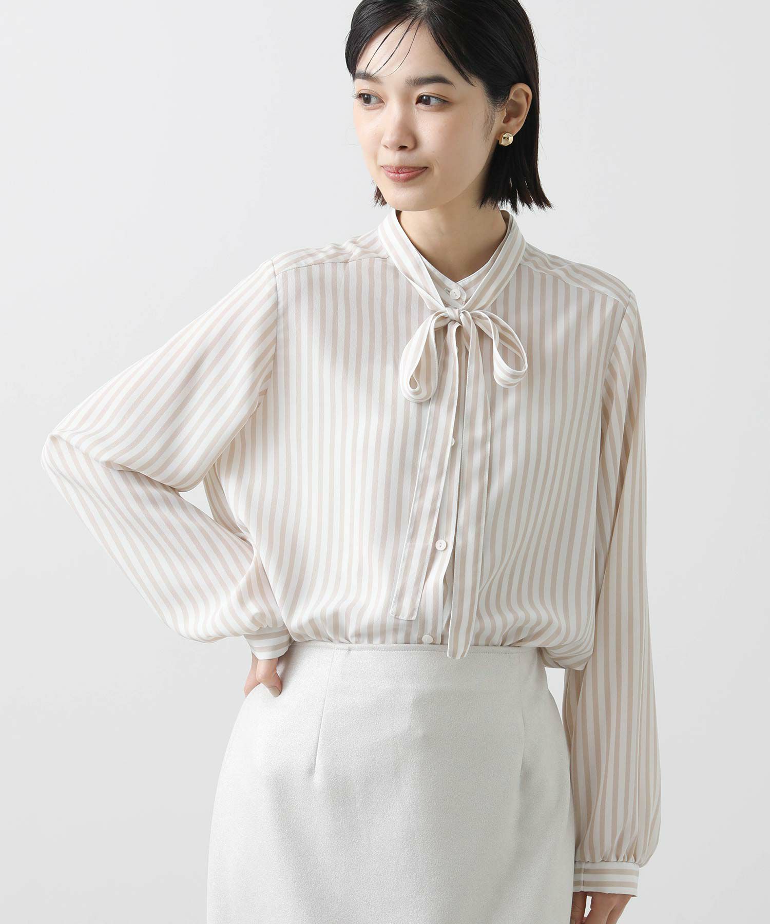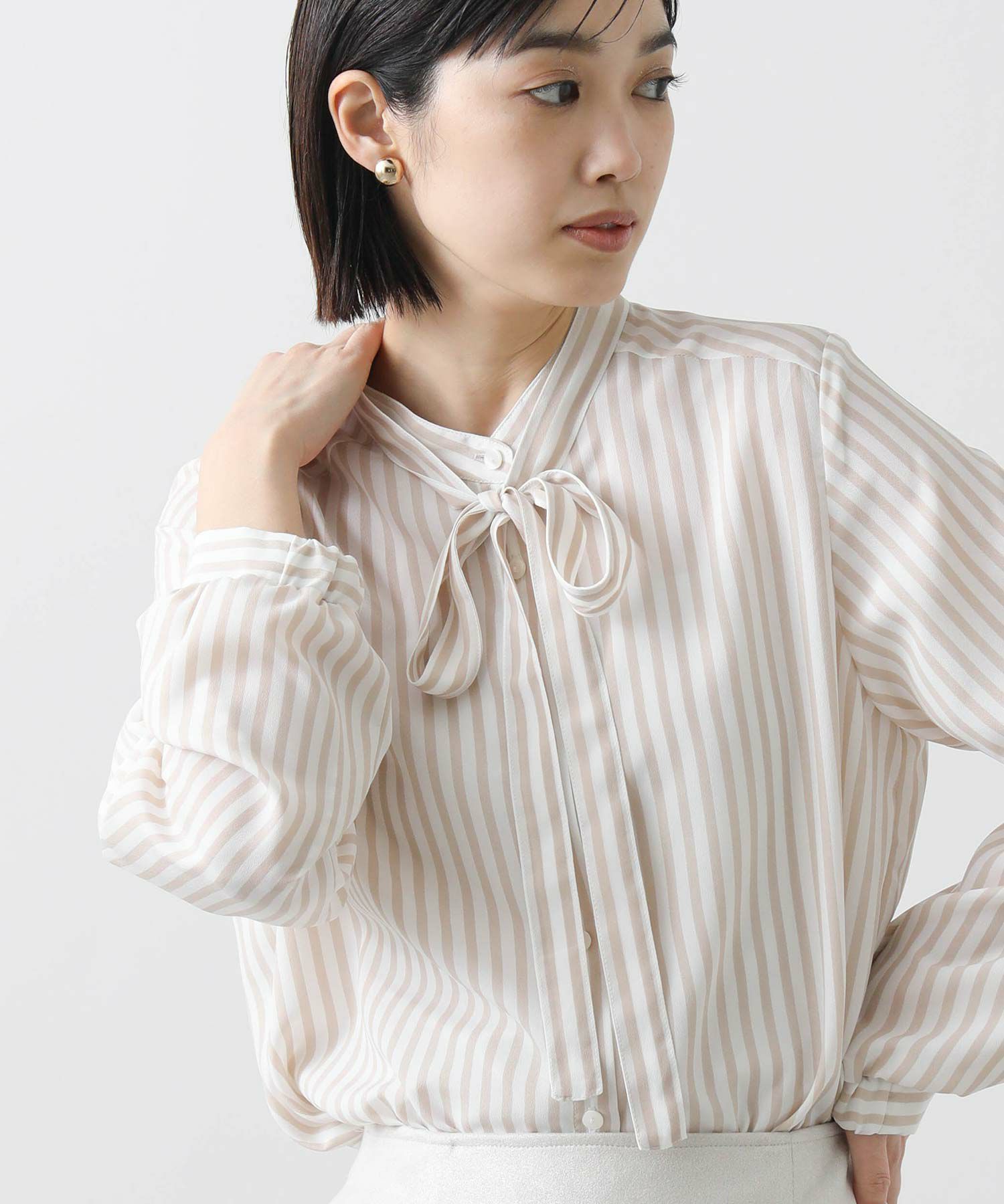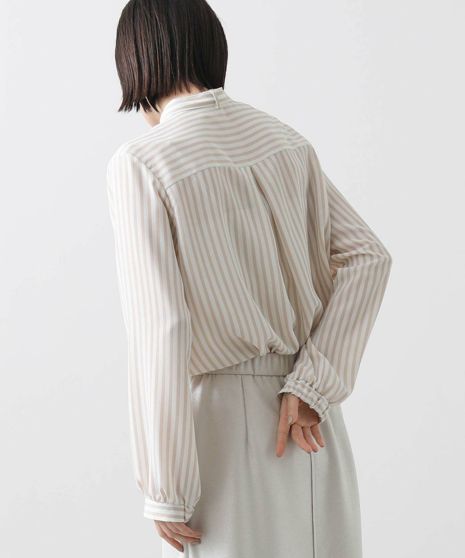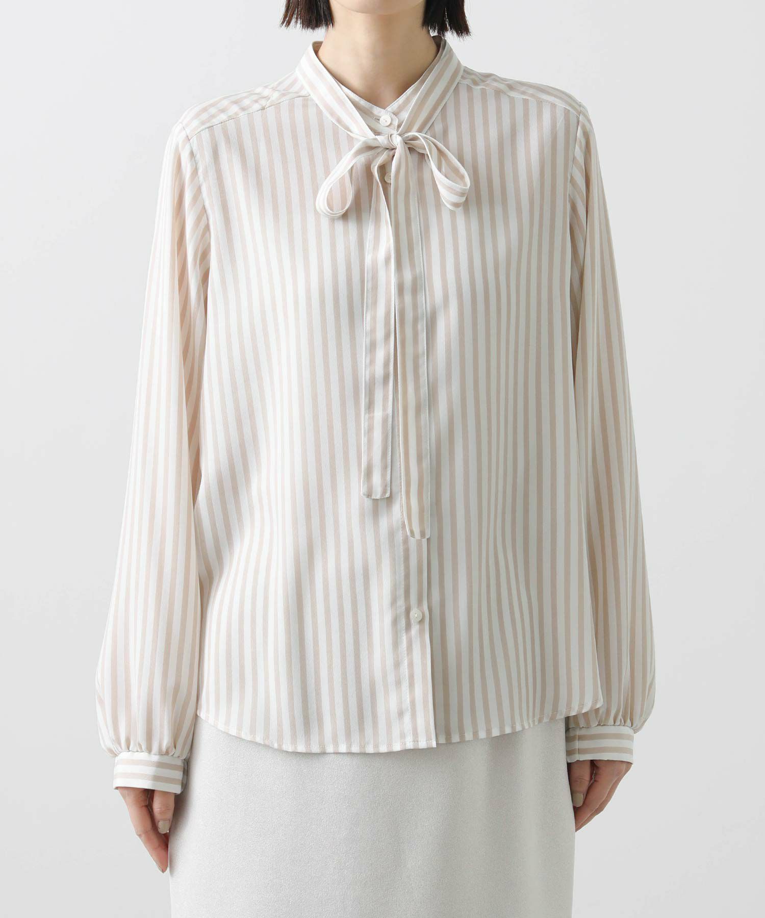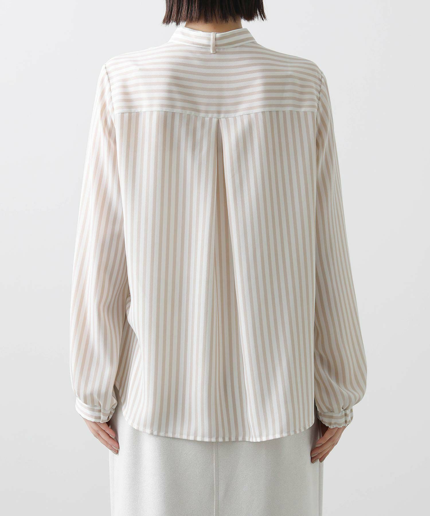 s.ストライプスタンドタイブラウス