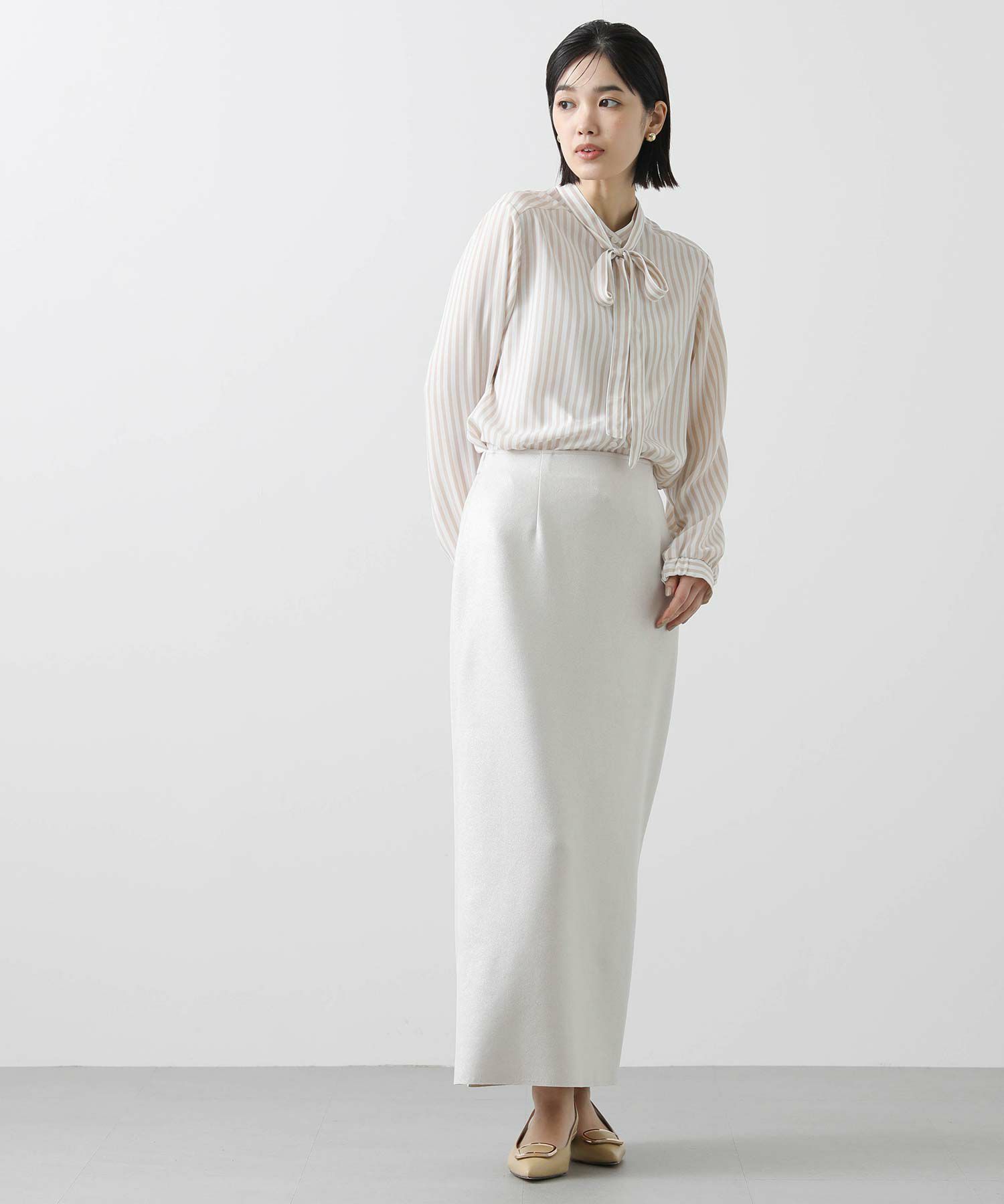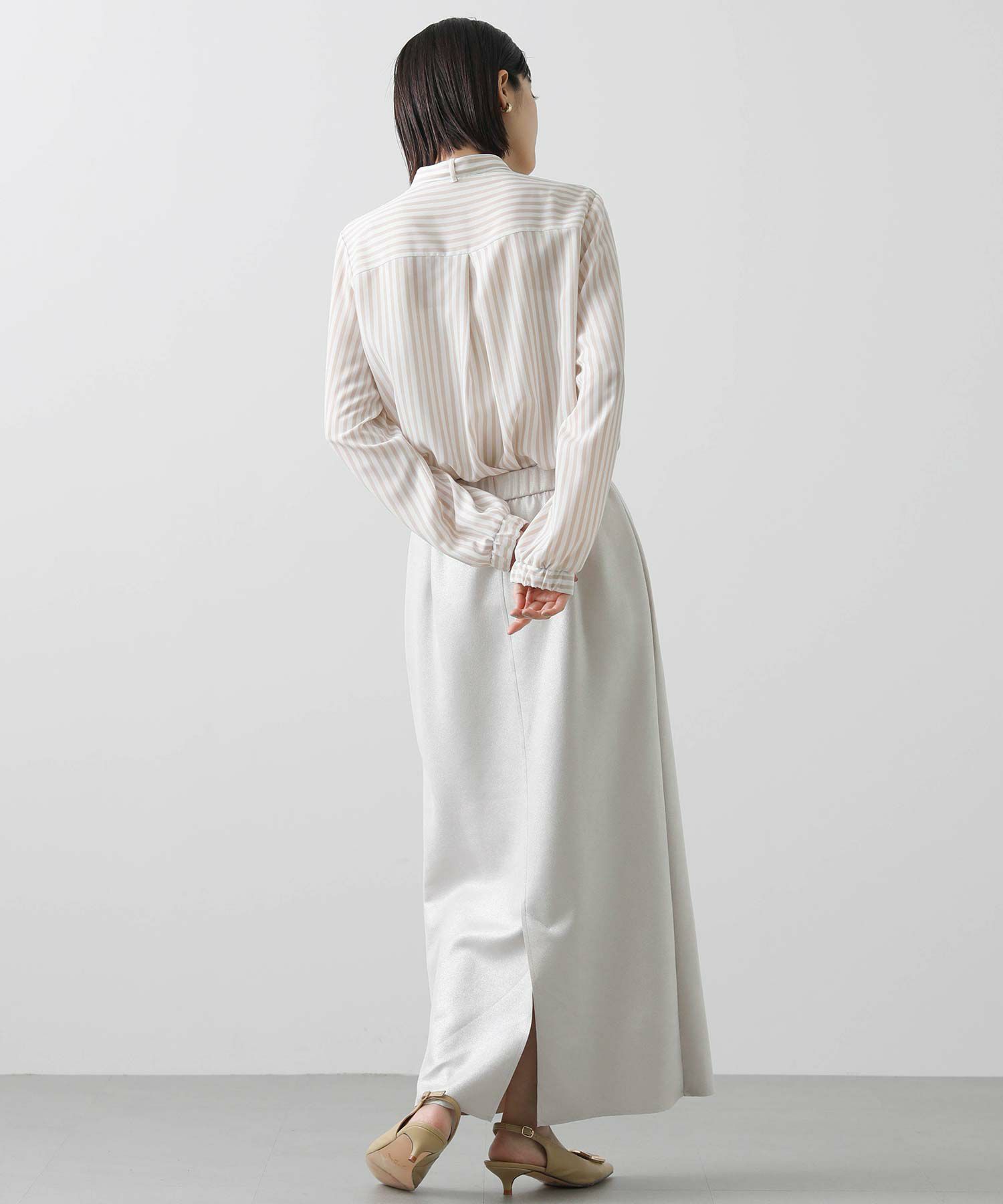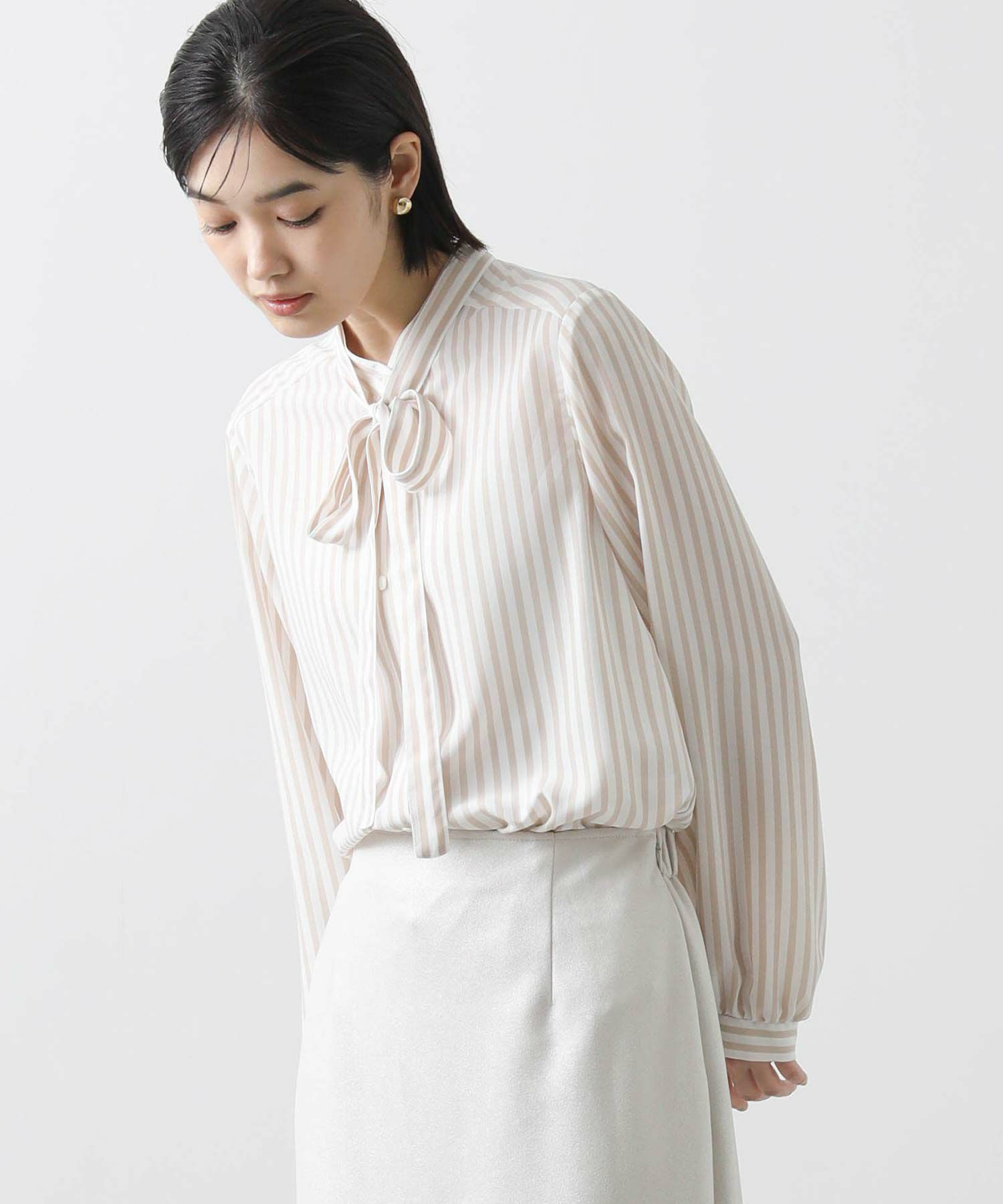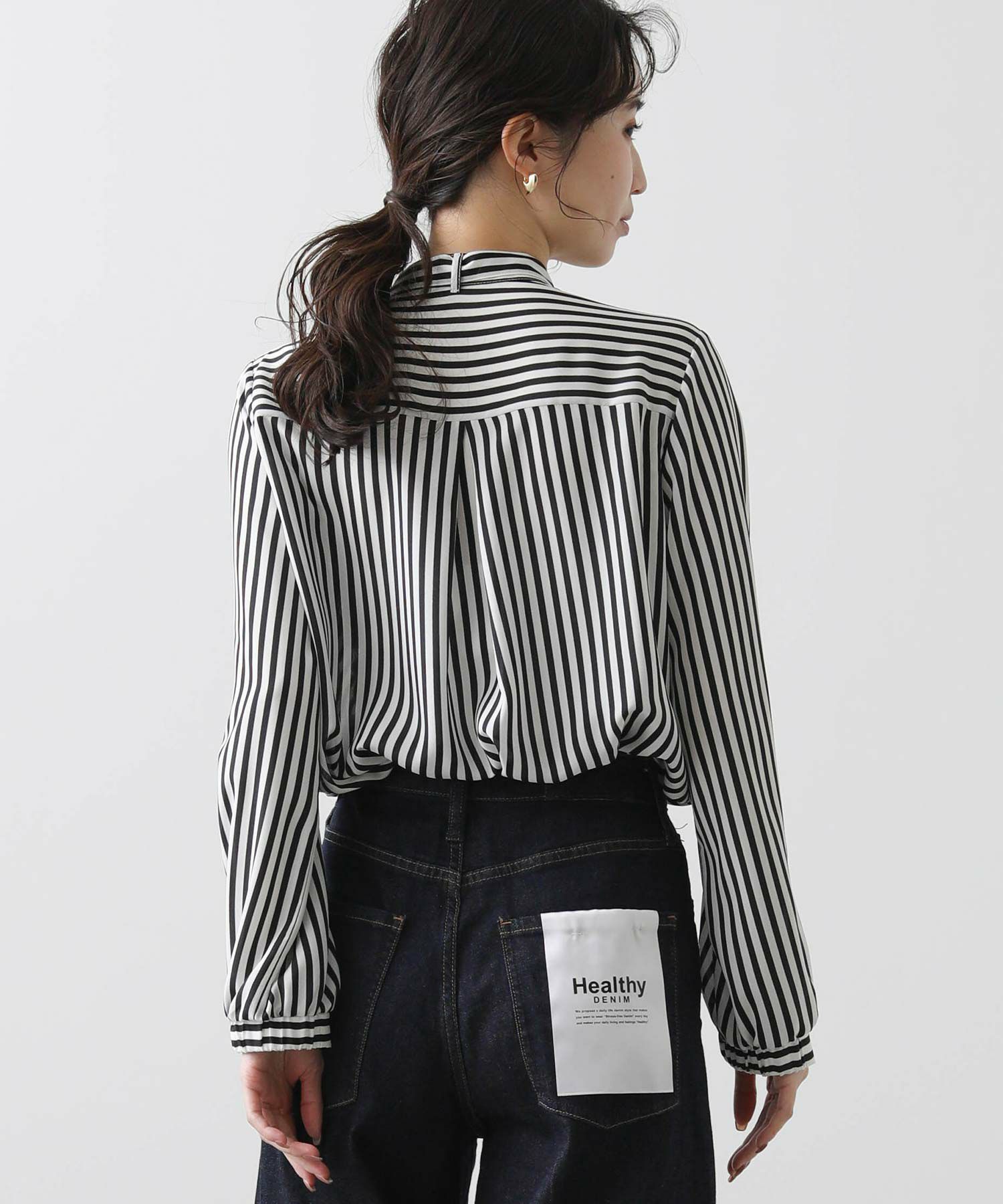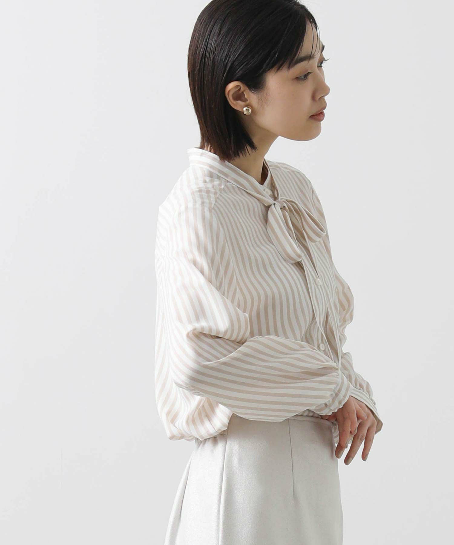 s.ストライプスタンドタイブラウス