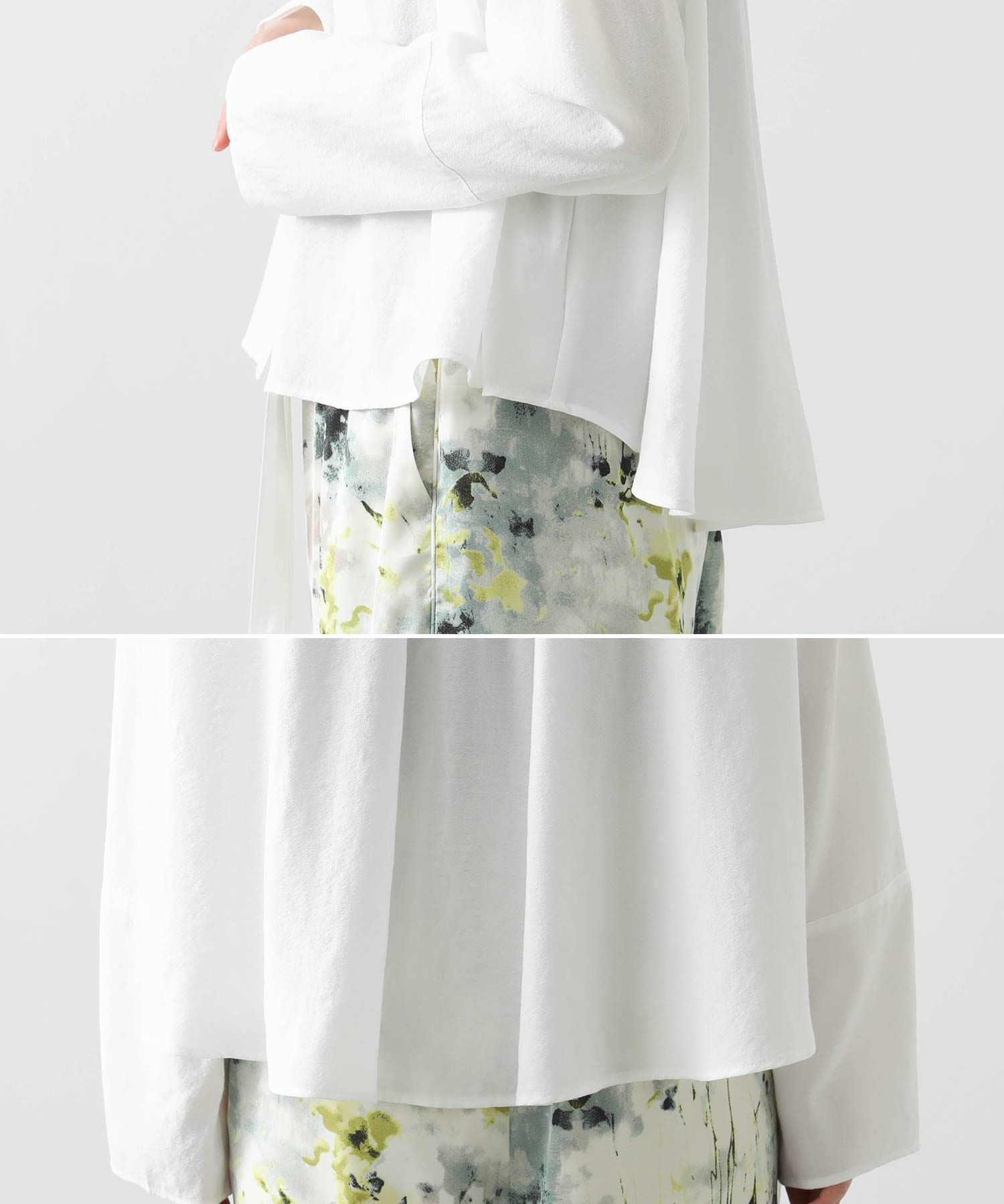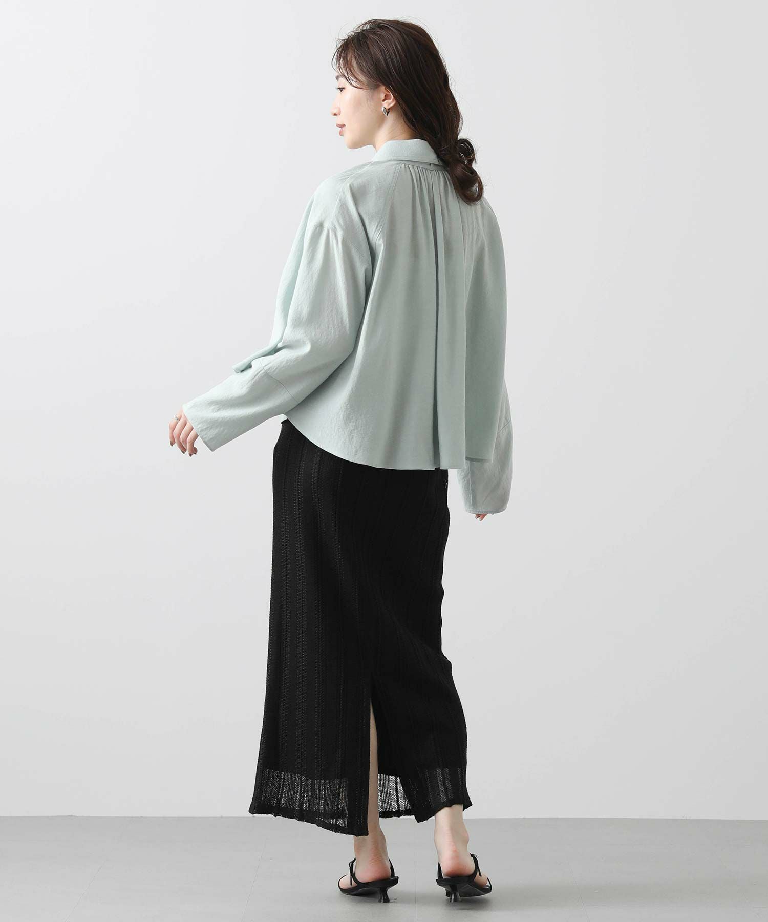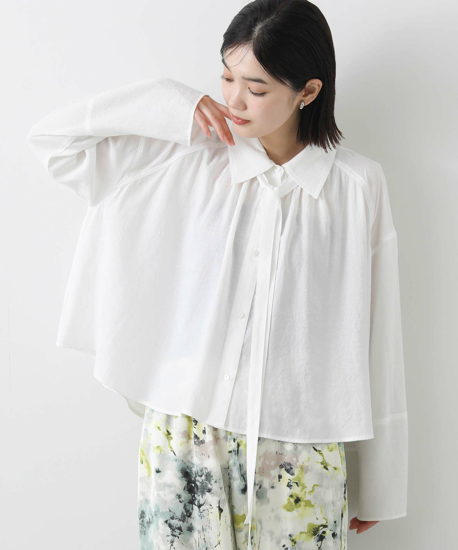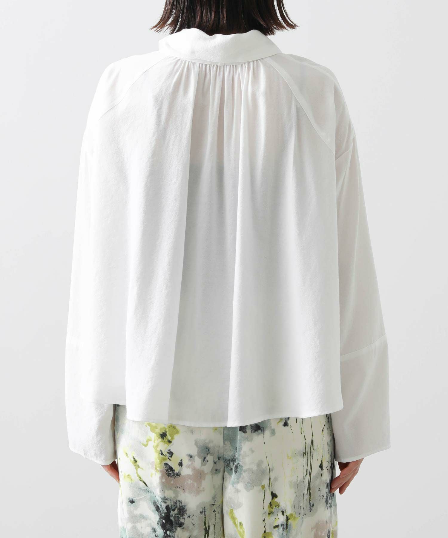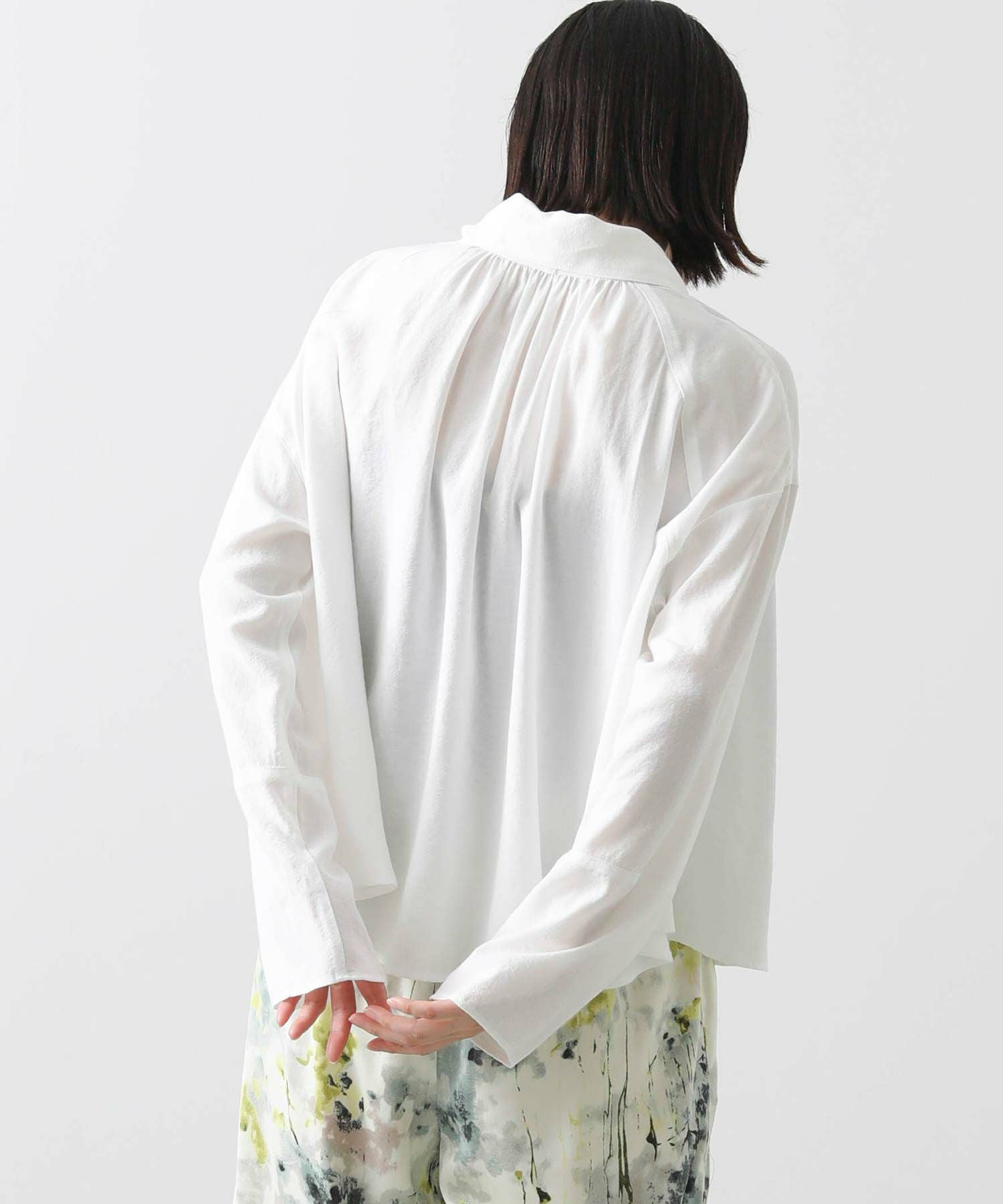 Aラインシルエットが空気をはらむような抜け感のあるブラウス。