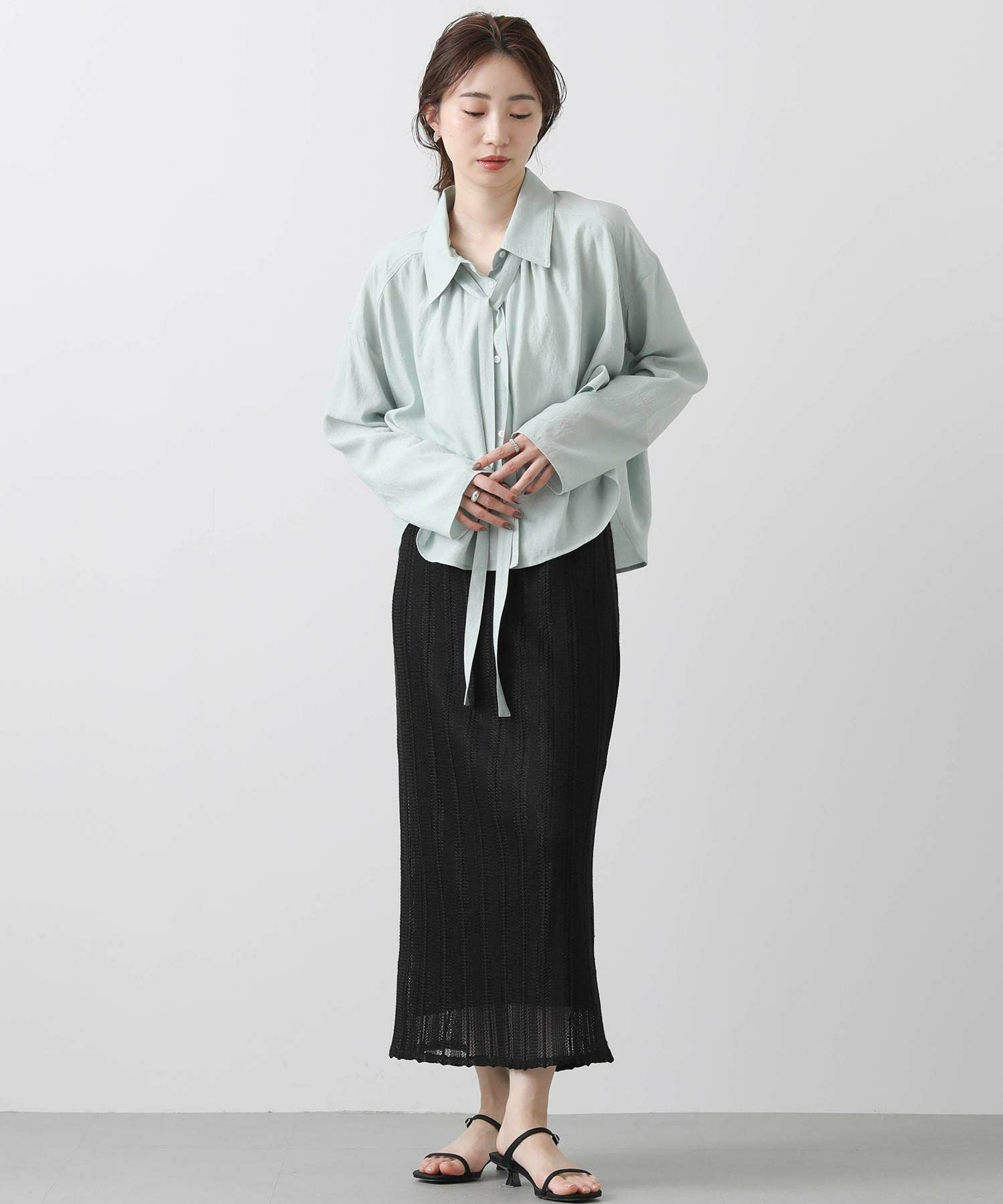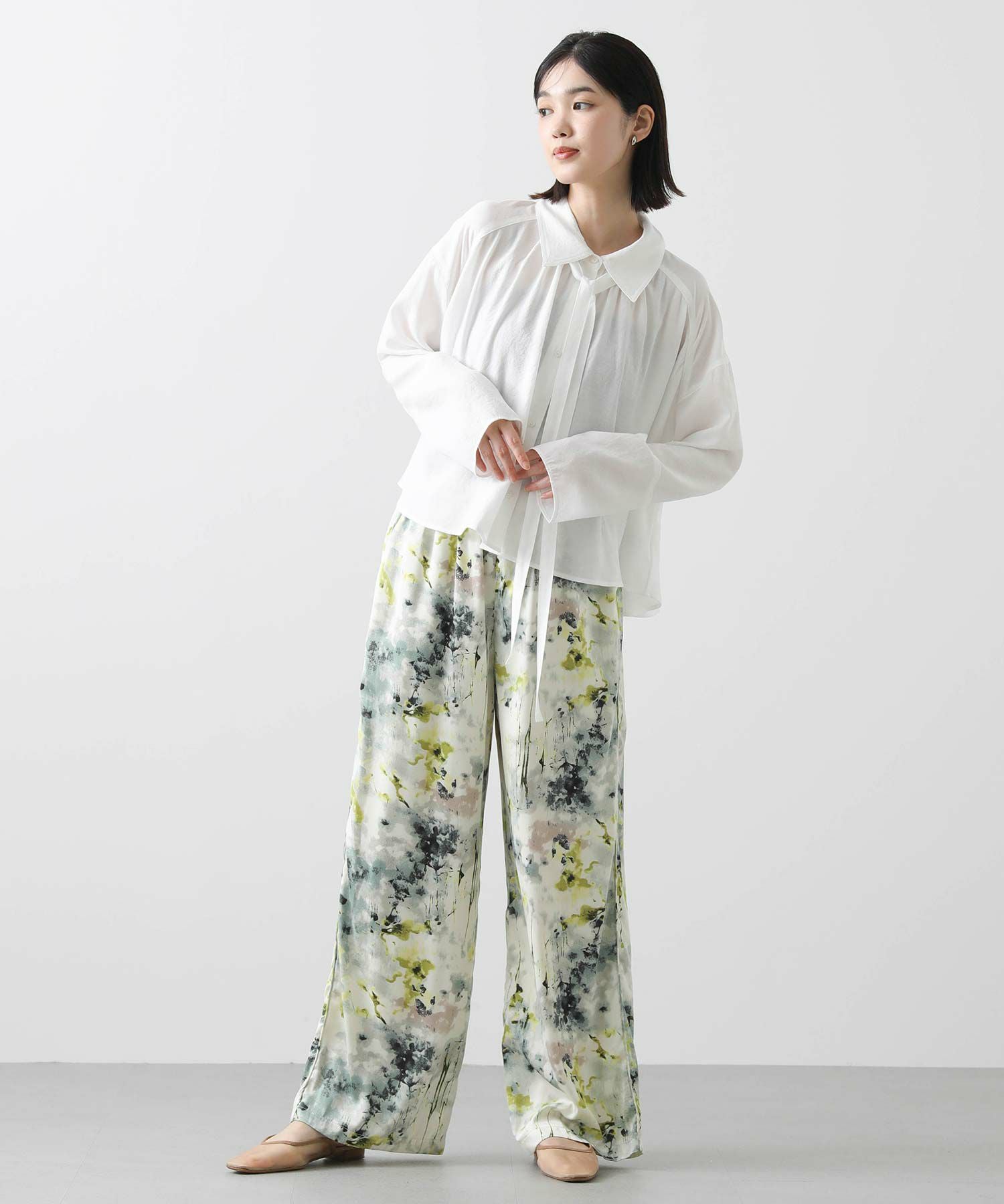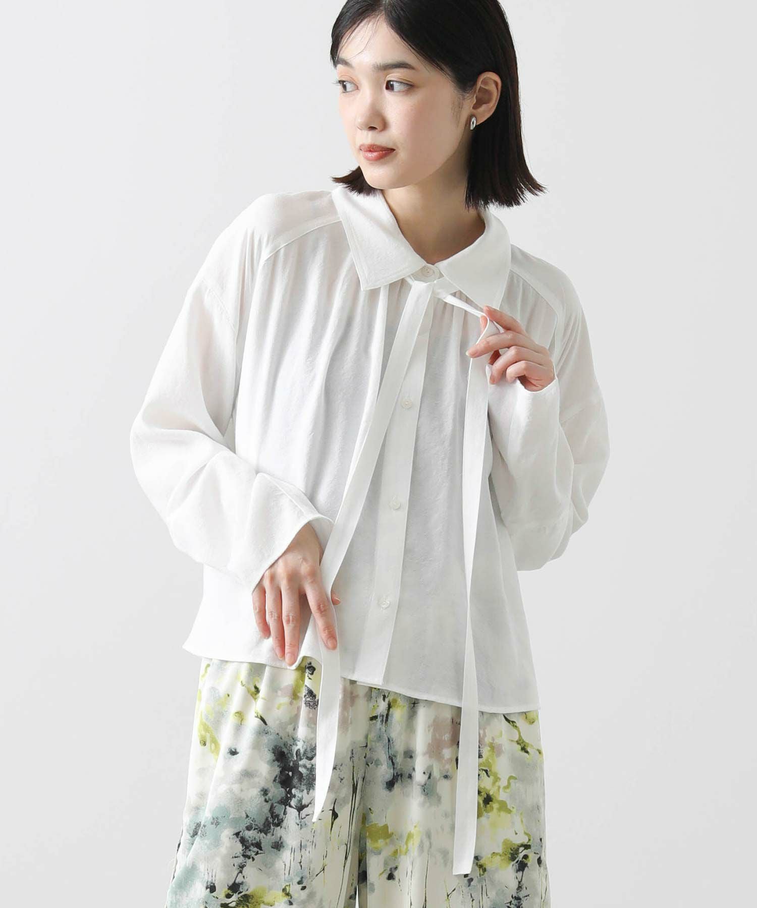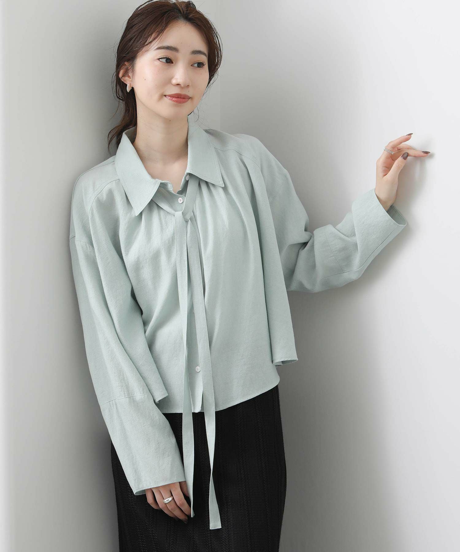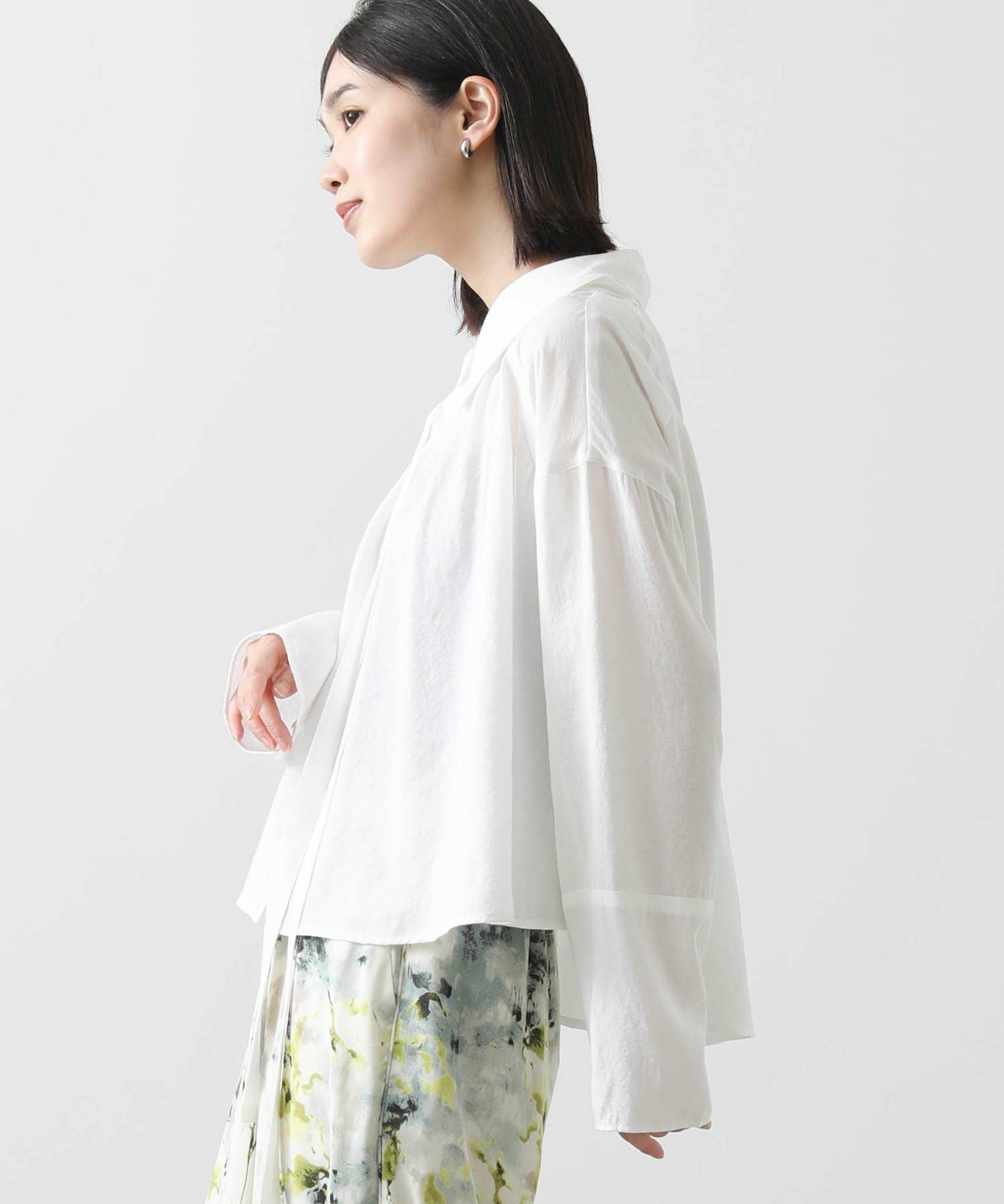 Aラインシルエットが空気をはらむような抜け感のあるブラウス。
