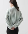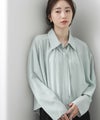 裾にフレアが出るAラインのショート丈ブラウスです。長めの袖とのバランスがかわいいシルエットに、大き目の衿が、顔回りを華やかに見せてくれます。