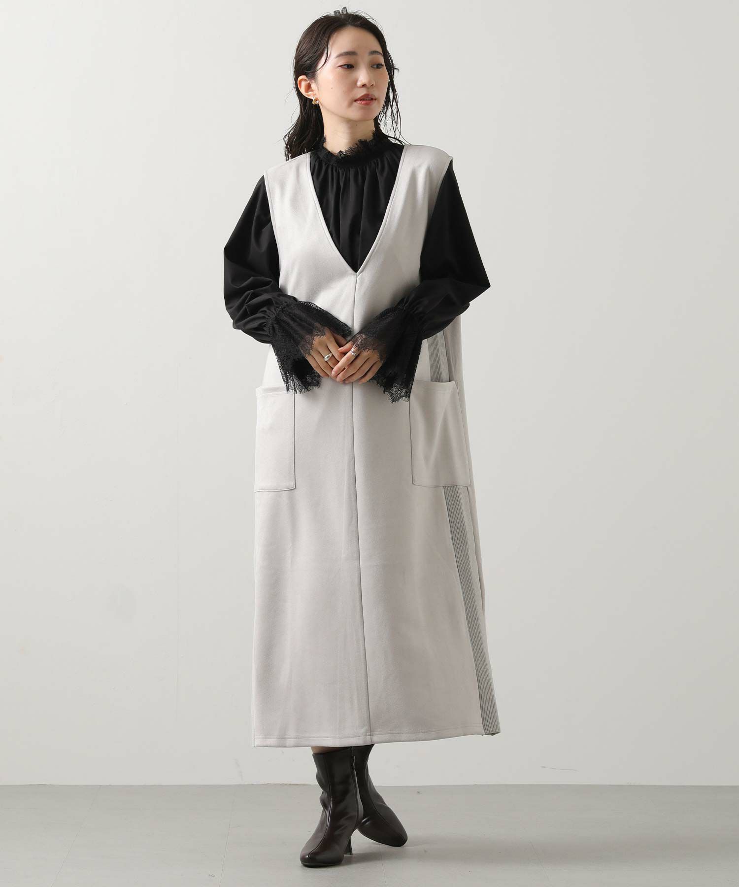 1枚で楽しむのはもちろん、ニットやジャケットのインナーに合わせてレースを覗かせるレイヤードスタイルもオススメ。