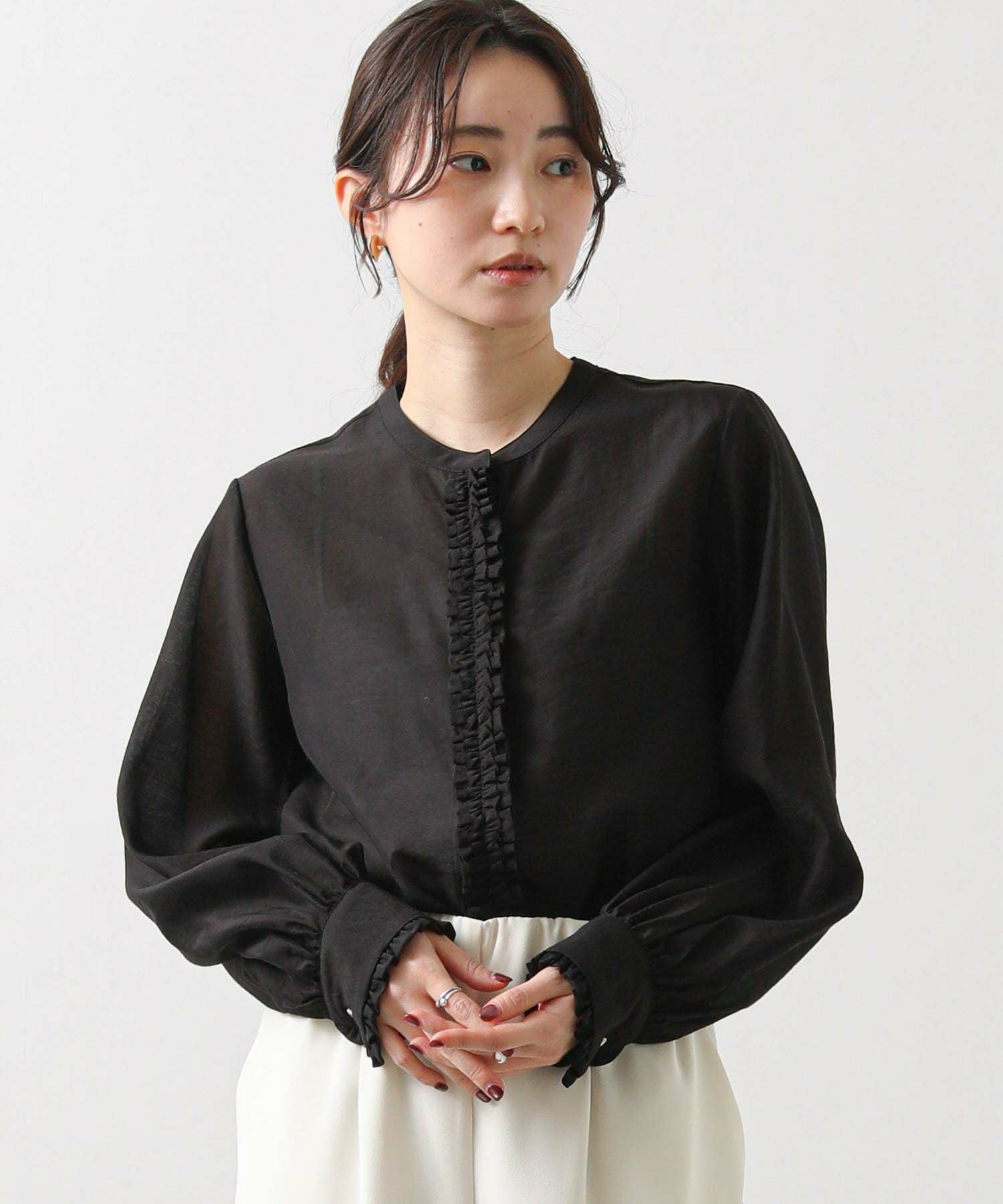 ジャケットインした際に覗くフリルが華やかさをプラス。