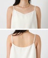 上品な光沢のサテン生地で程よい厚みがあるので、下着感がなく、インでもアウトでも汎用性の高い1枚に仕上げました。