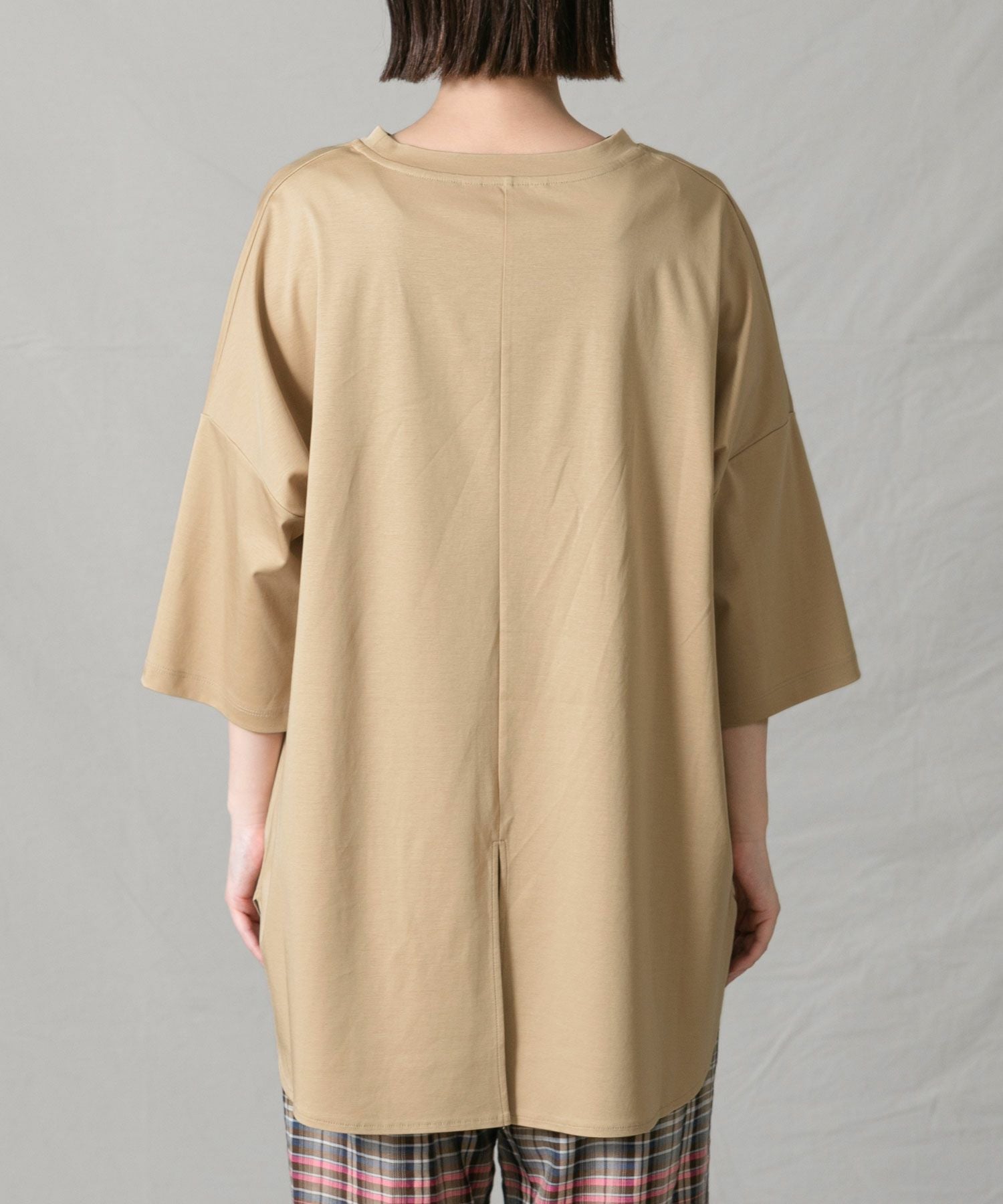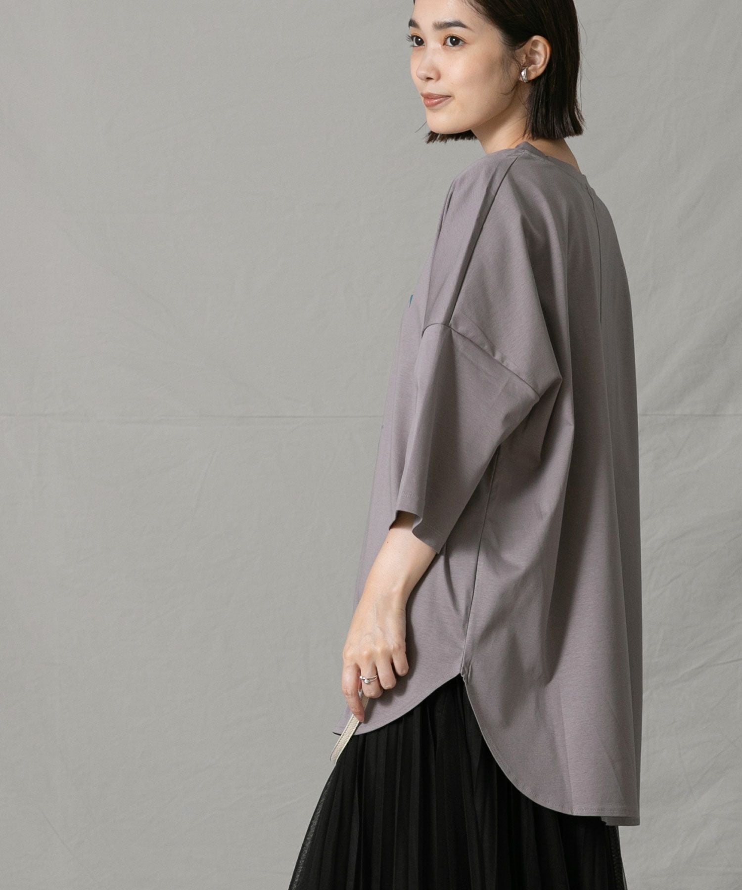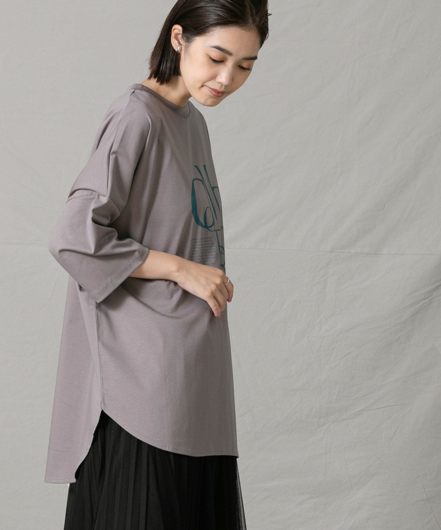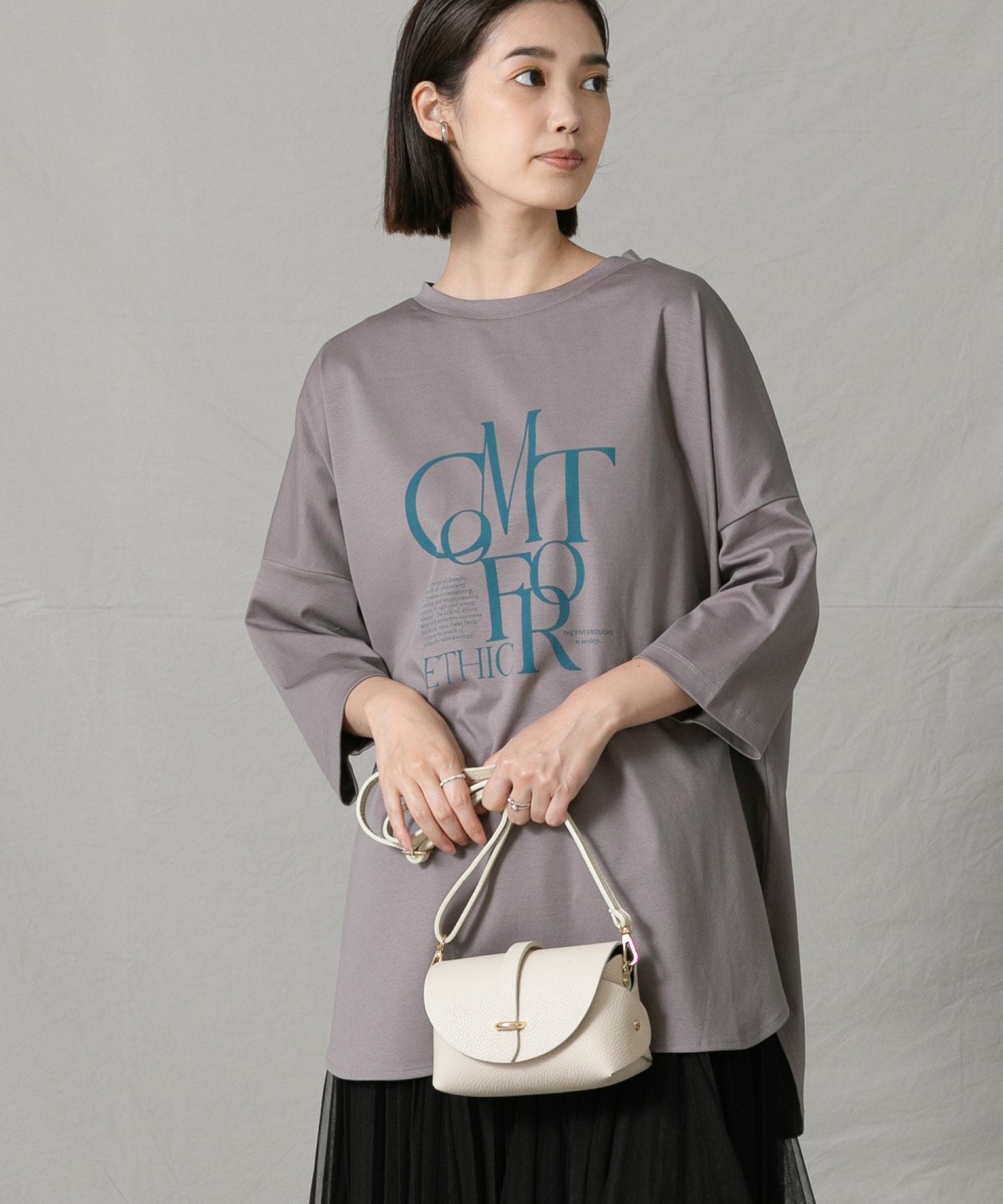 ロゴは大小の文字を組み合わせ、シックな配色にすることで秋らしい雰囲気に仕上がりました。ゆったりとしたサイズ感なので袖をロールアップしてもバランス良く、こなれ感もアップします。
