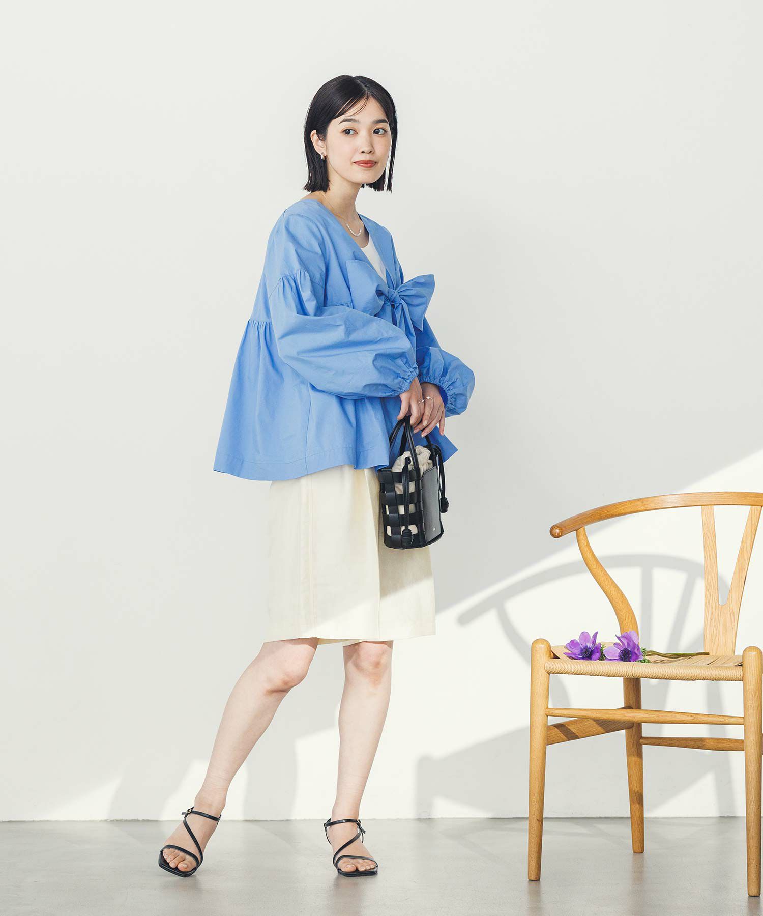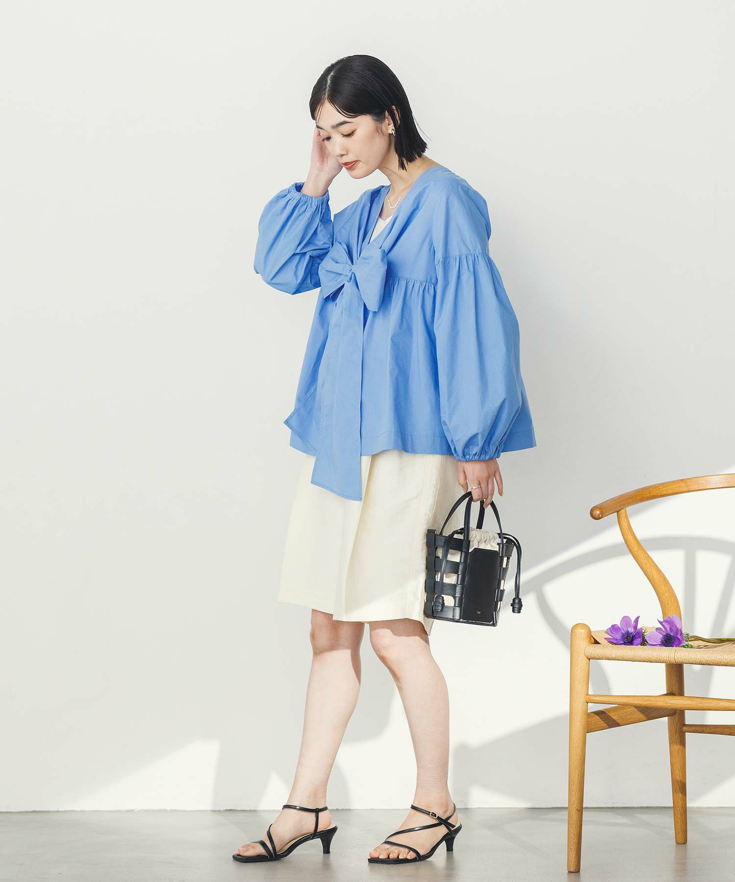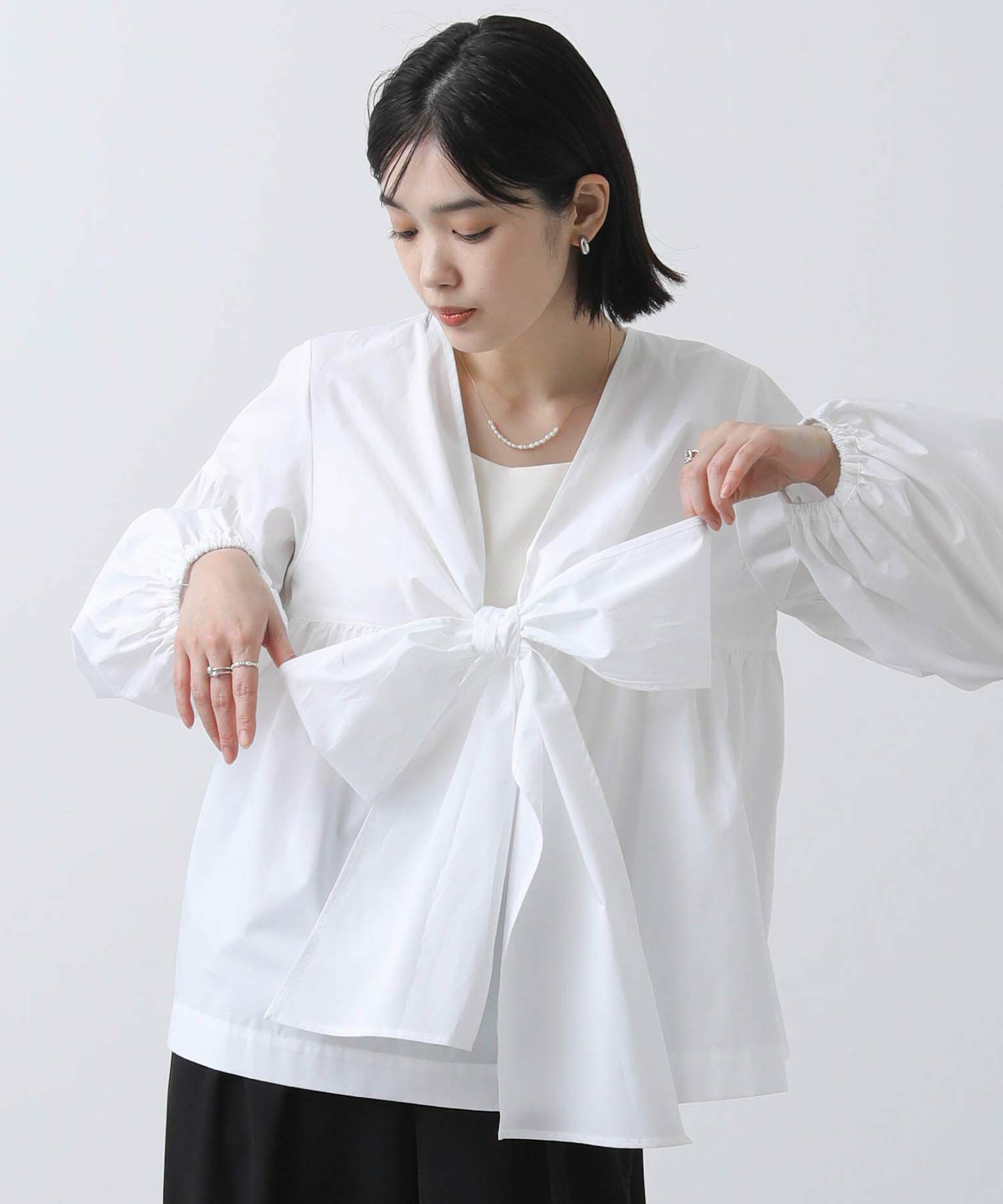 胸元の大きなリボンが旬なブラウス。