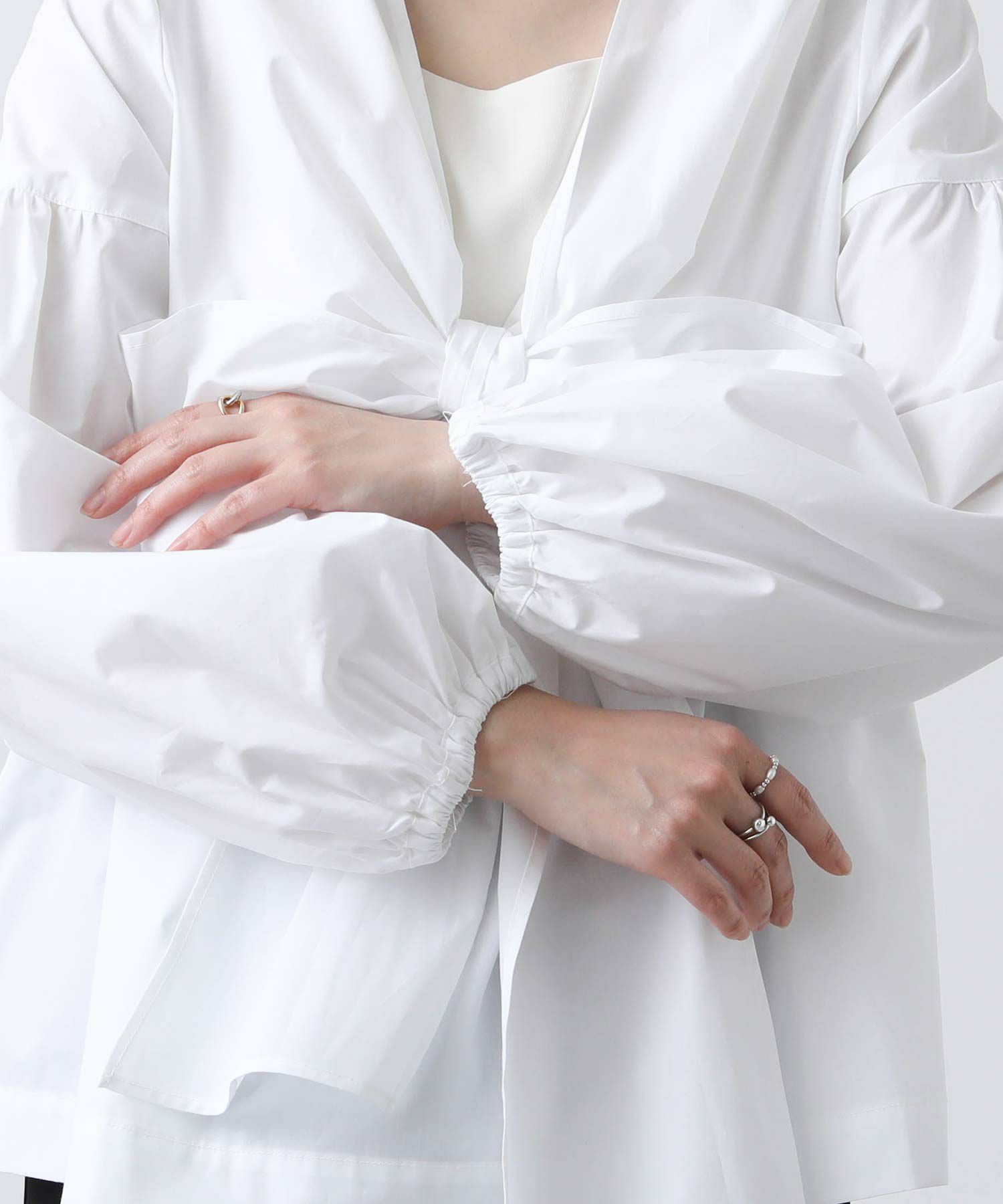袖口はゴム仕様で、たくし上げて袖のボリューム感を調整できます。