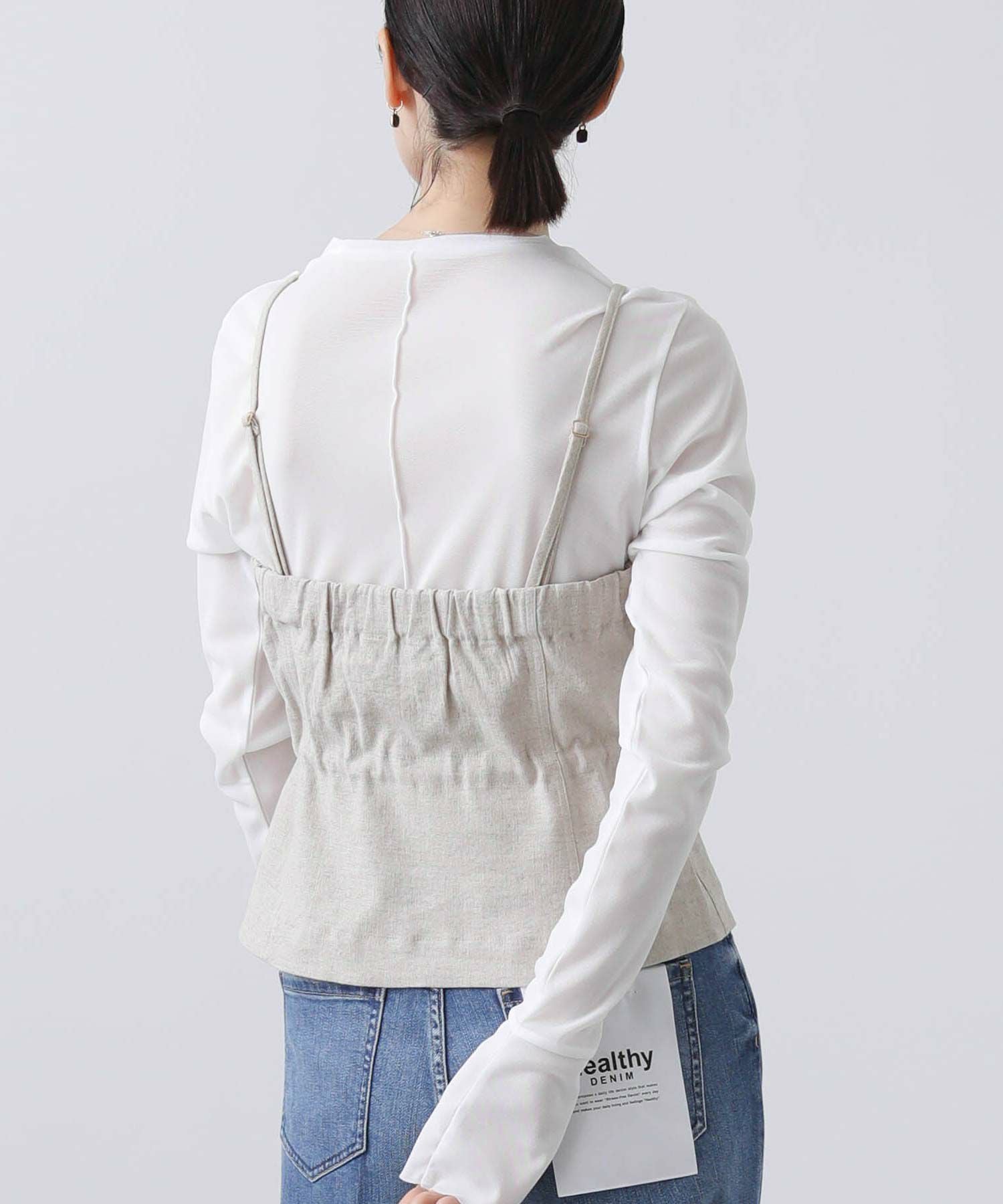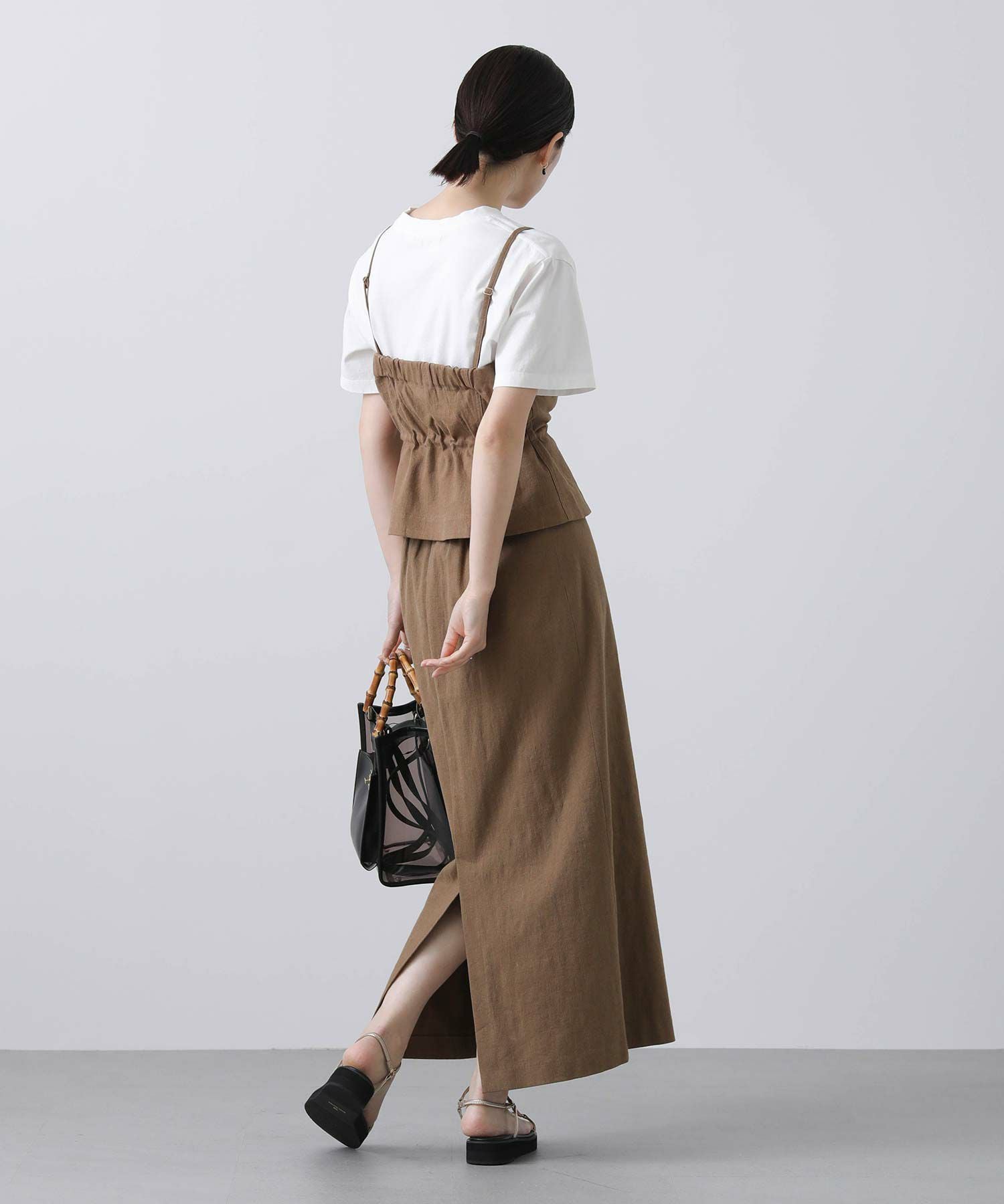 ウエストのドロスト機能付きで取り外し可能な肩紐付きなので華奢な方にもオススメ。