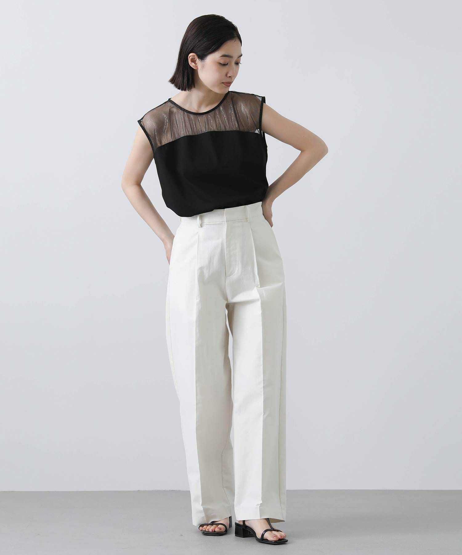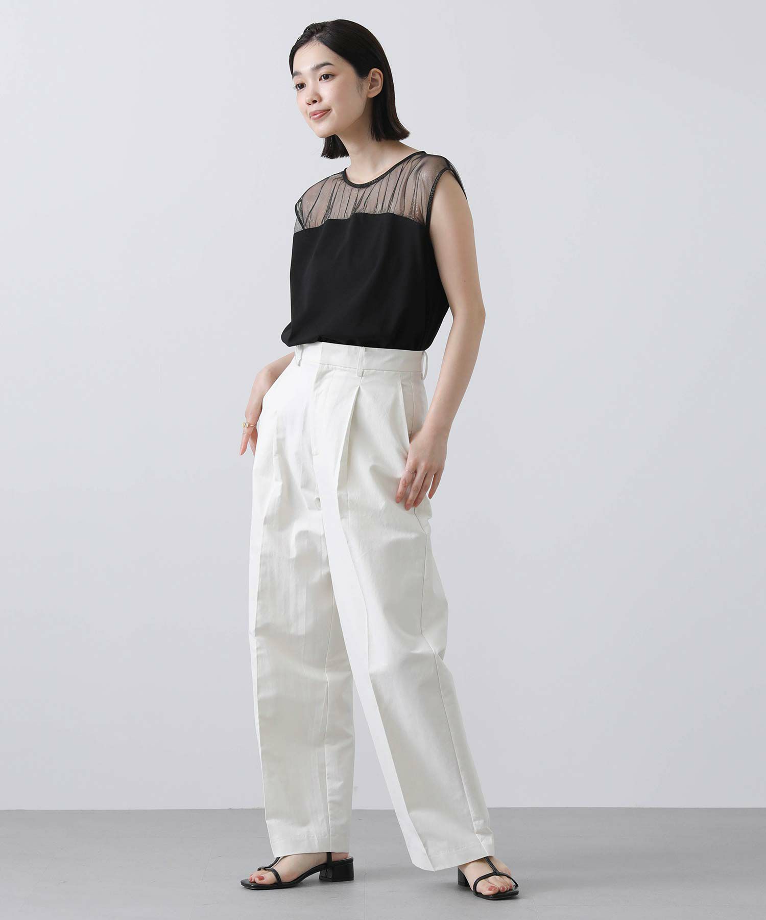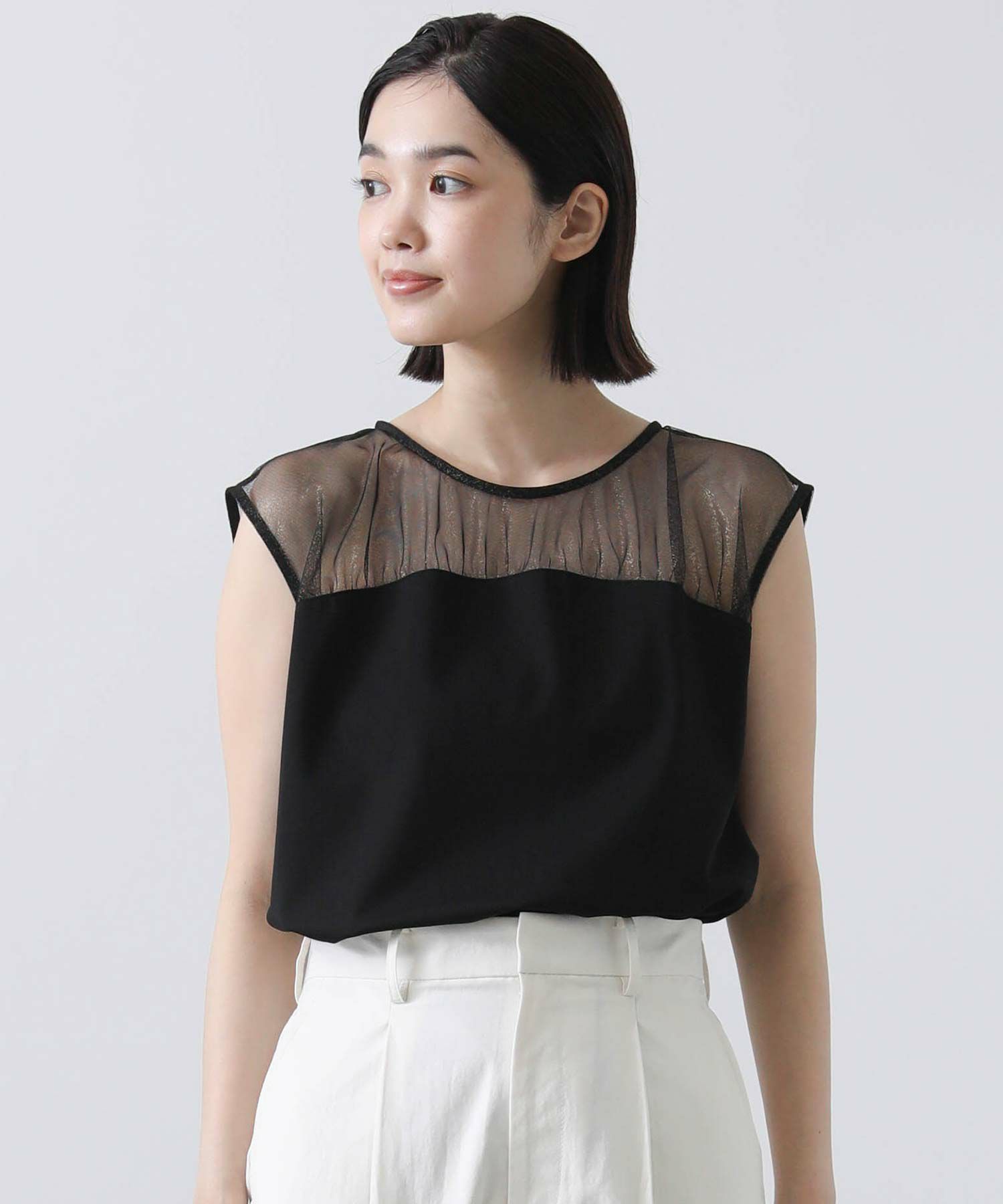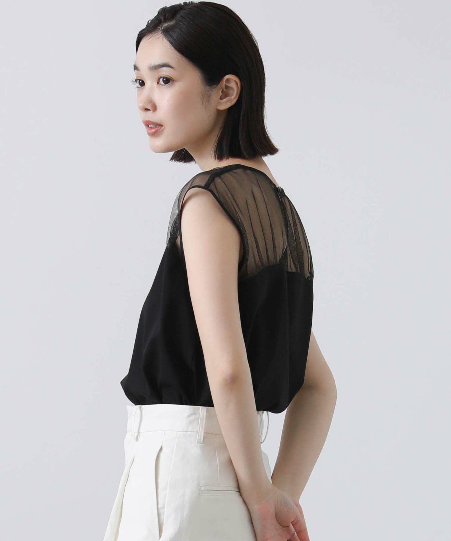 シアートップスにビスチェをレイヤードしたように見える優れもの。