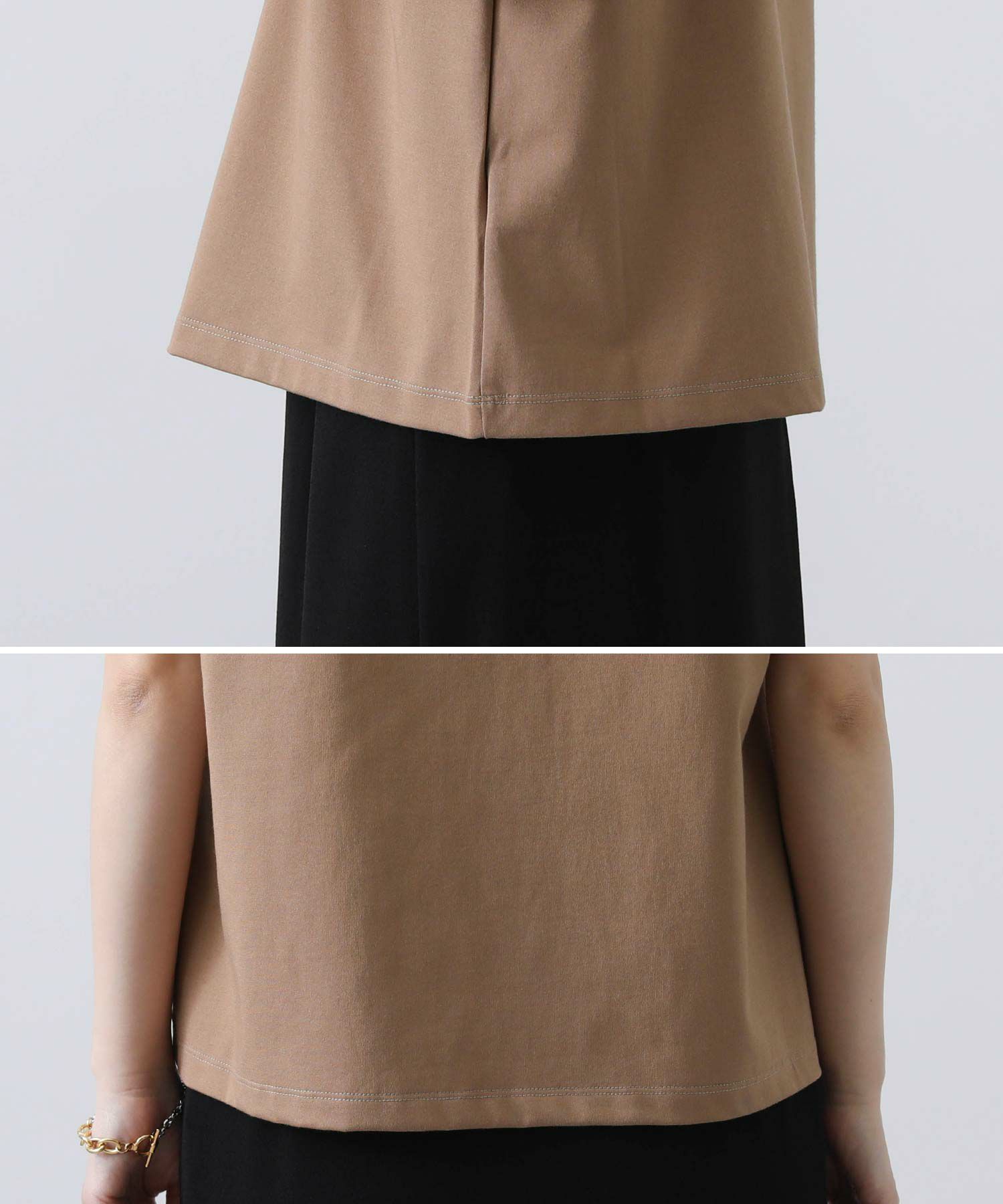 一枚で着ても着映えするよう身頃のカットはきれいに見えるシルケットカットソーを使用。
