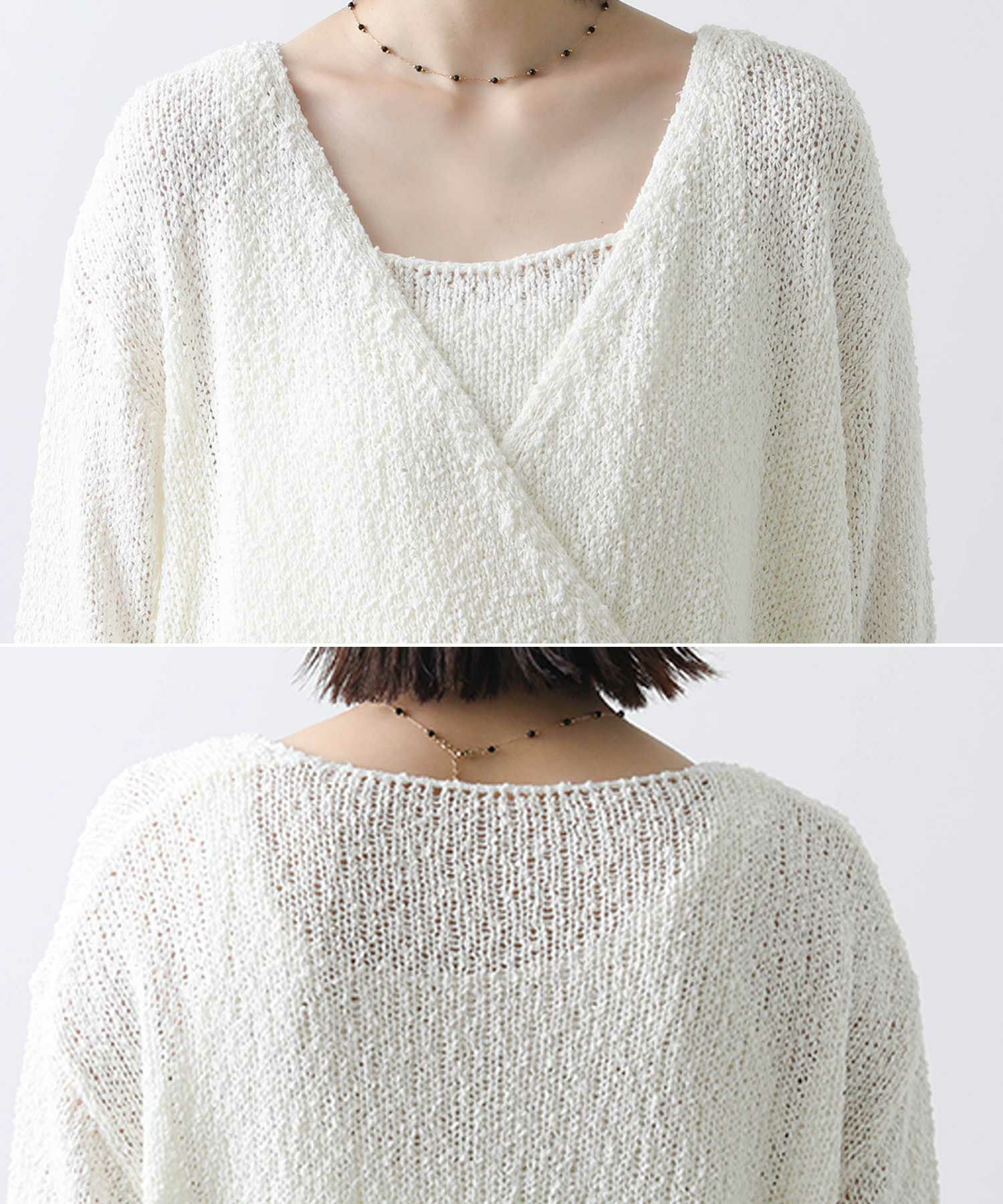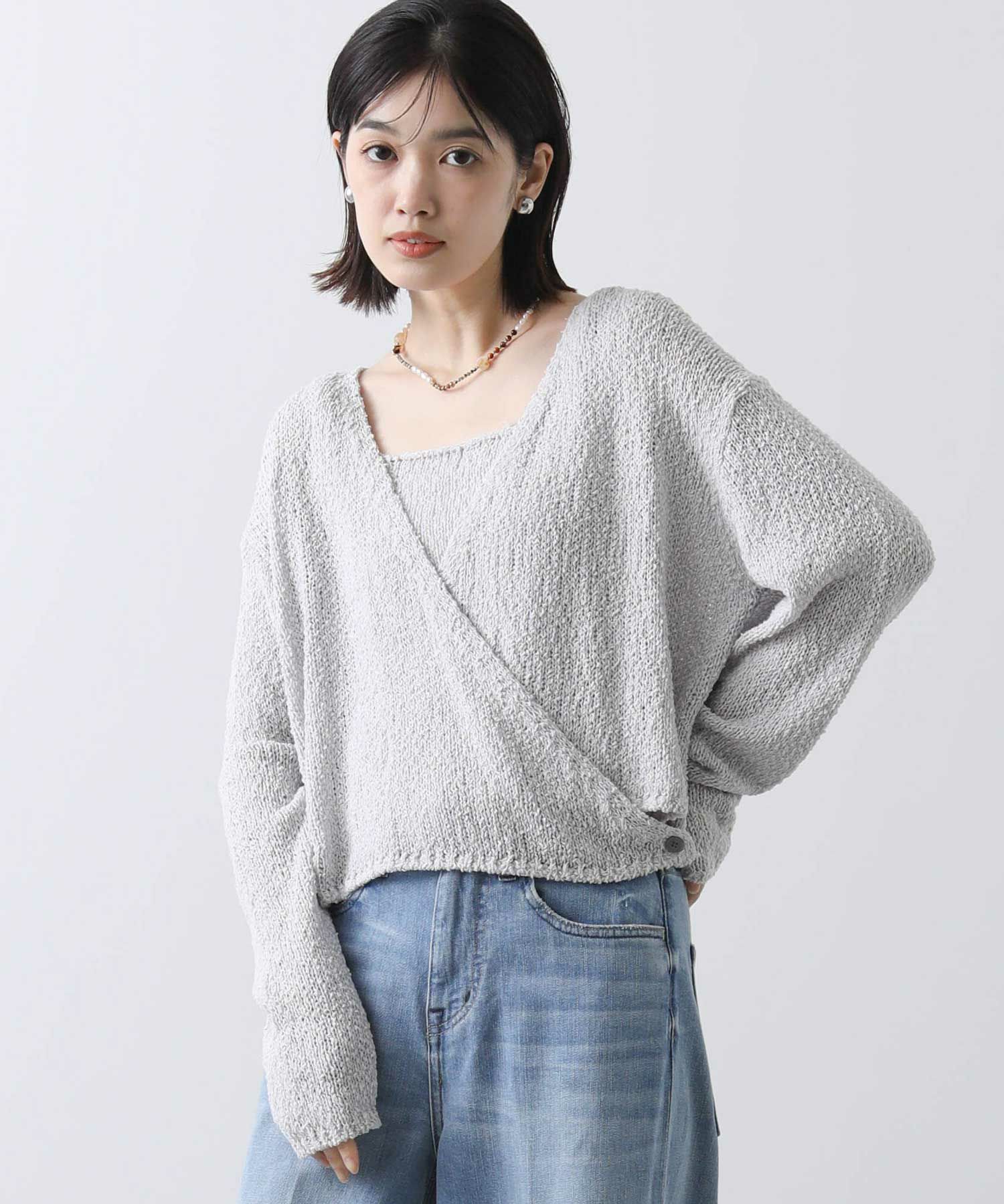 程よいカジュアル感と抜け感を醸し出すカシュクールニット×キャミセット。