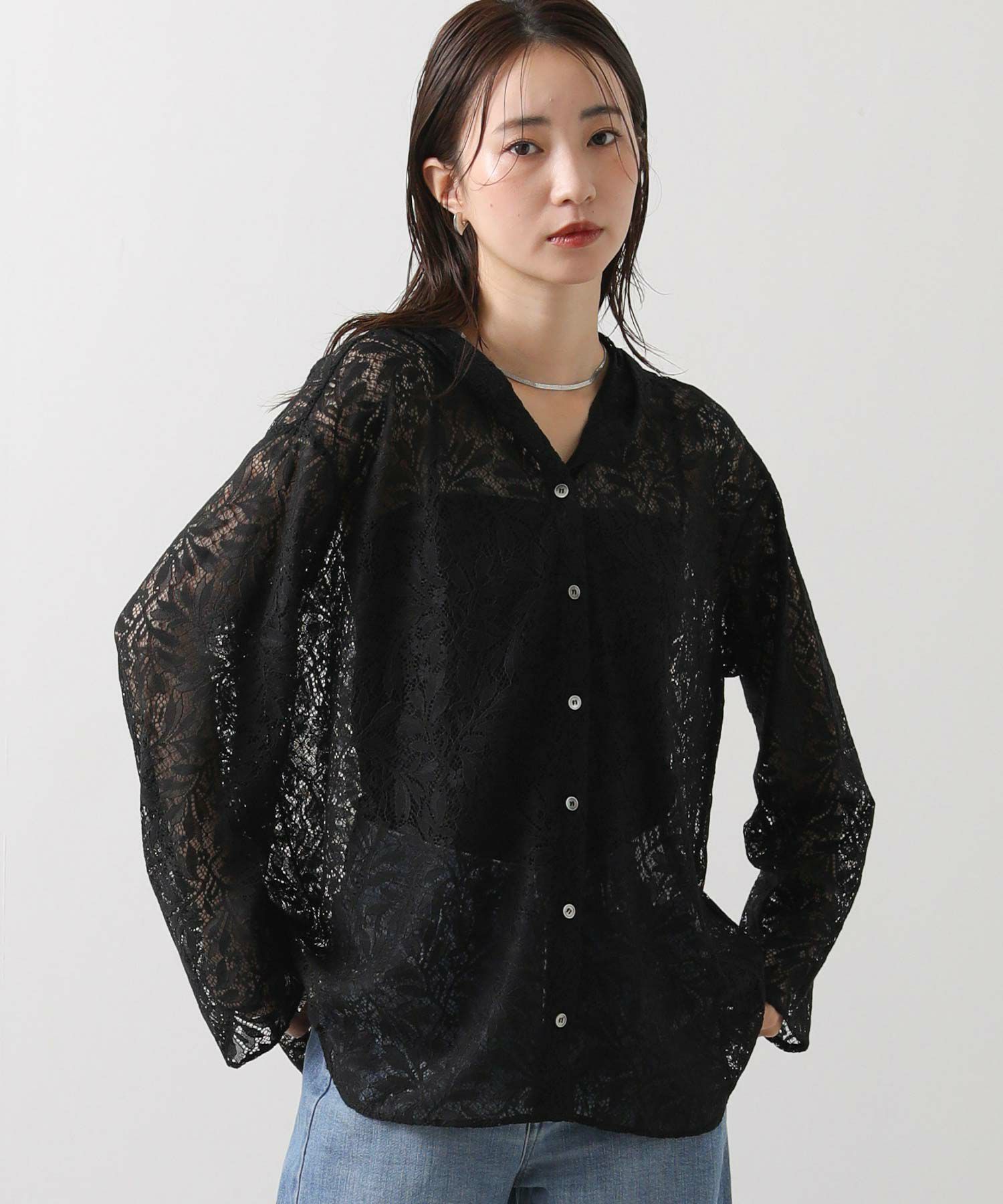 程よい透け感が美しいレースを使用し、軽やかで女性らしい印象に。