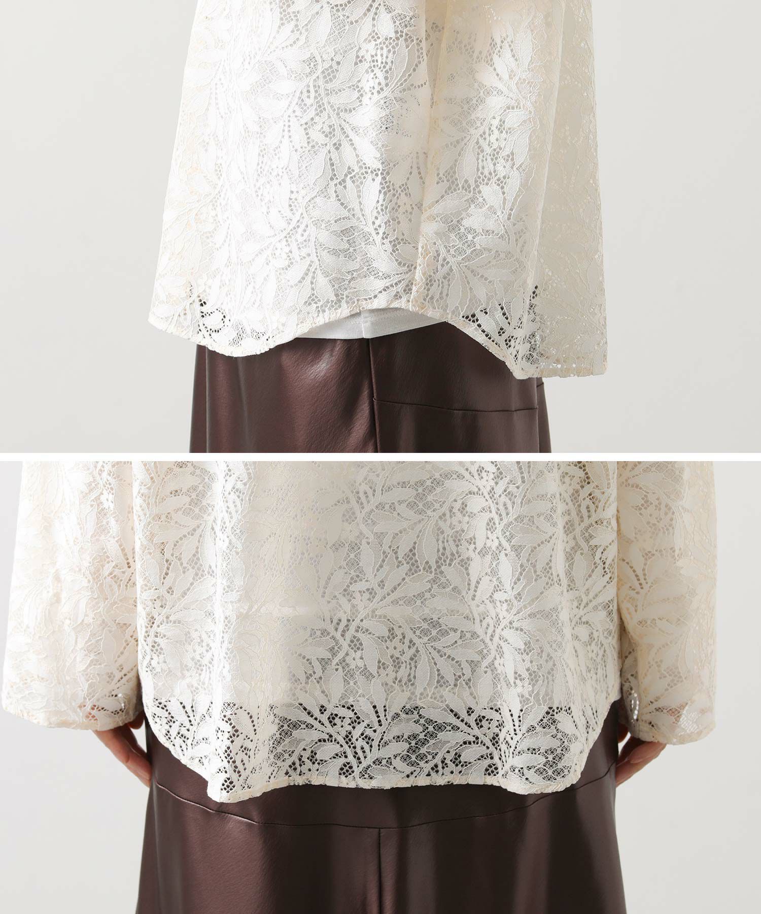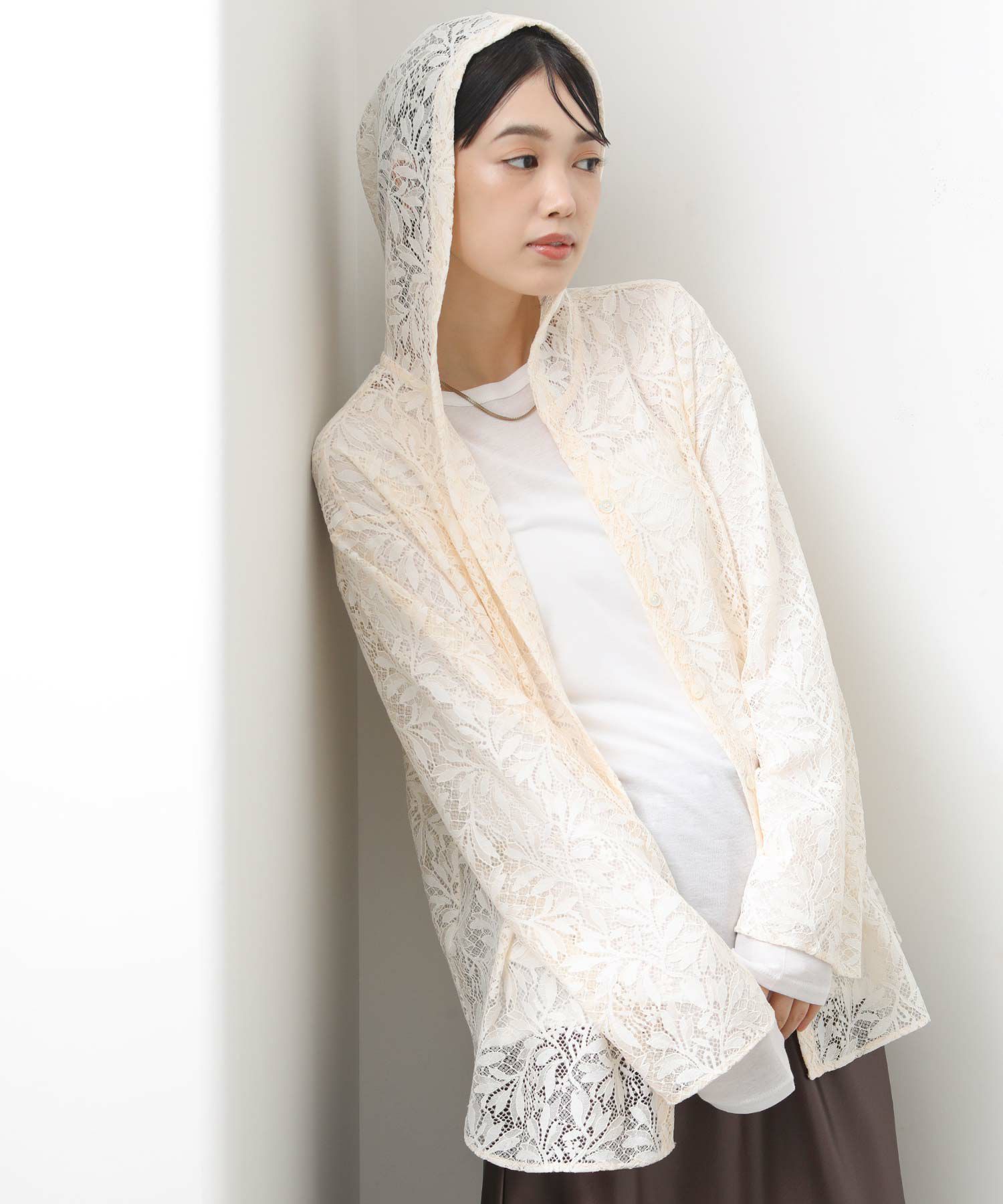 程よい透け感が美しいレースを使用し、軽やかで女性らしい印象に。 フードデザインを合わせることで、甘さを抑えた大人のカジュアルスタイルを楽しめます。