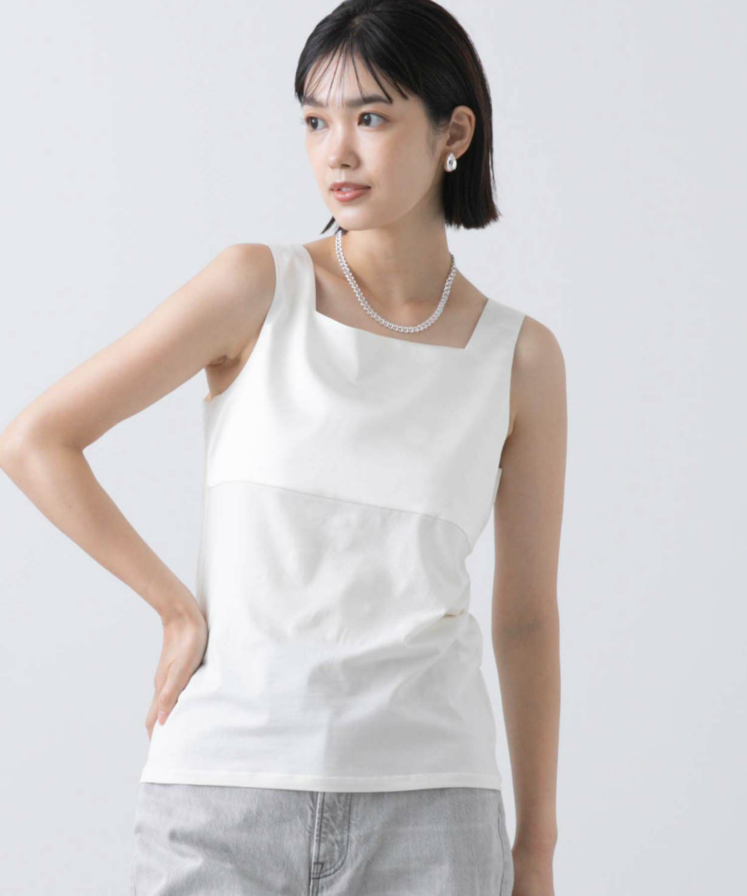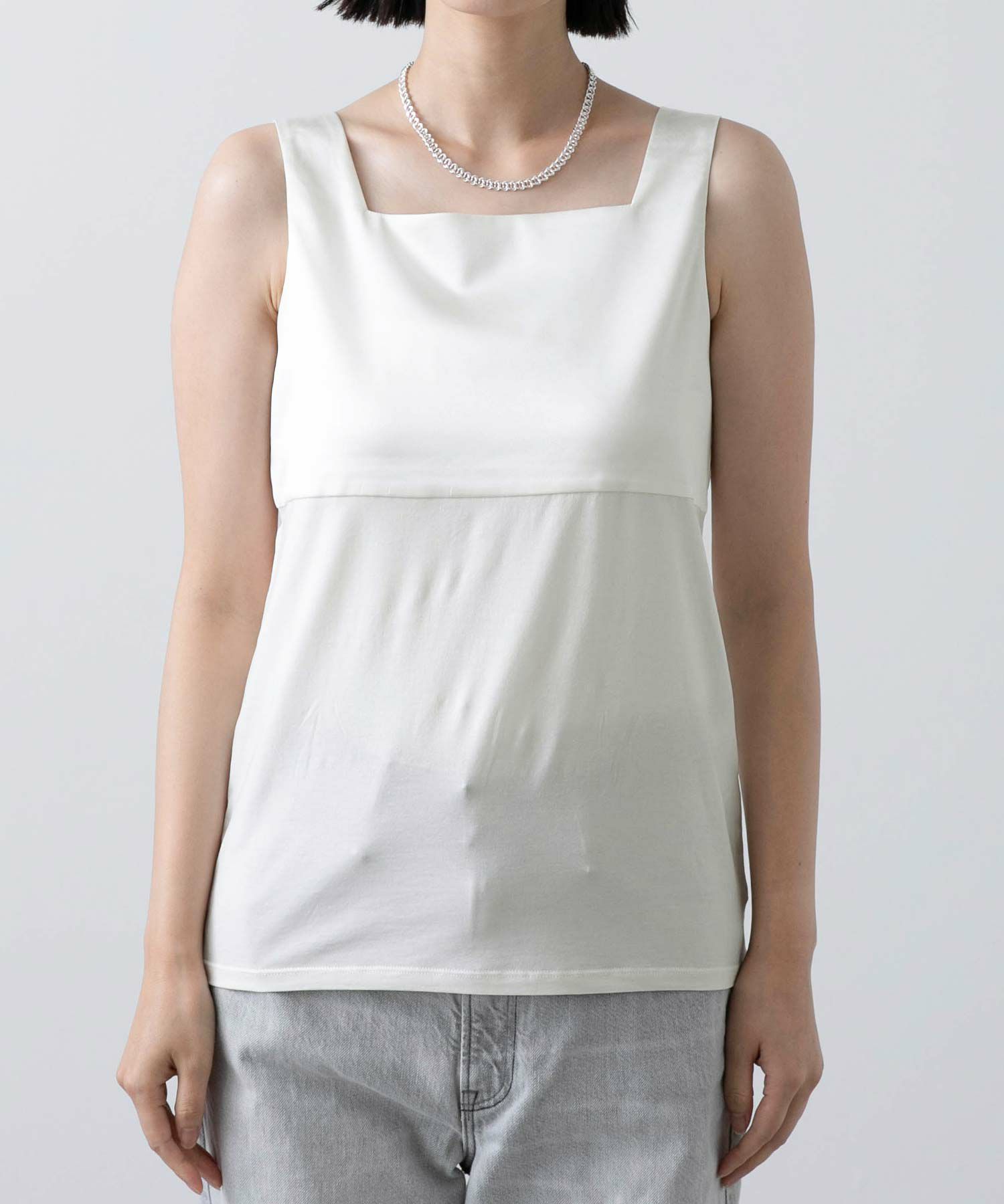 コットンタンク×サテンキャミのハイブリットな1枚が入荷しました。
