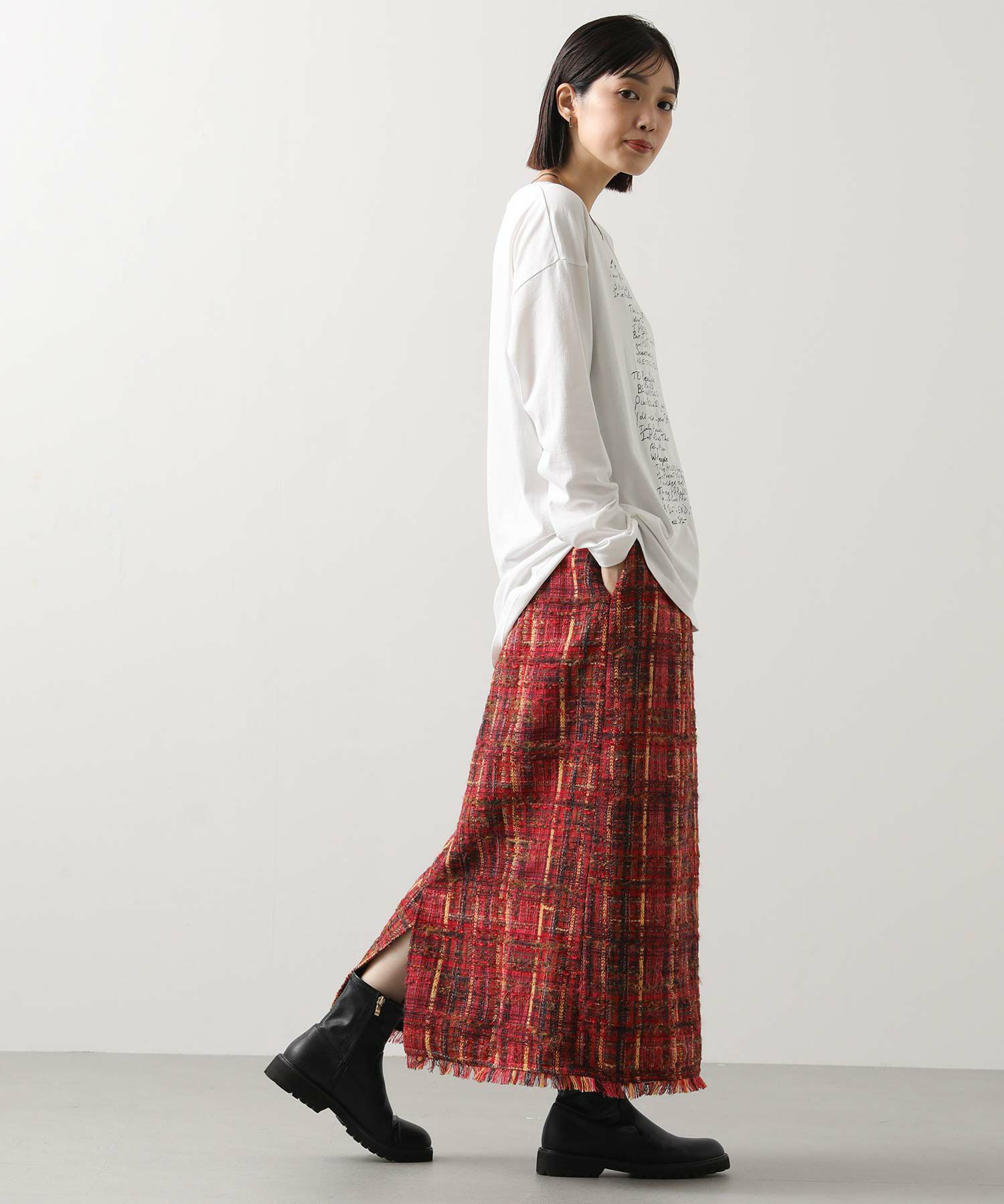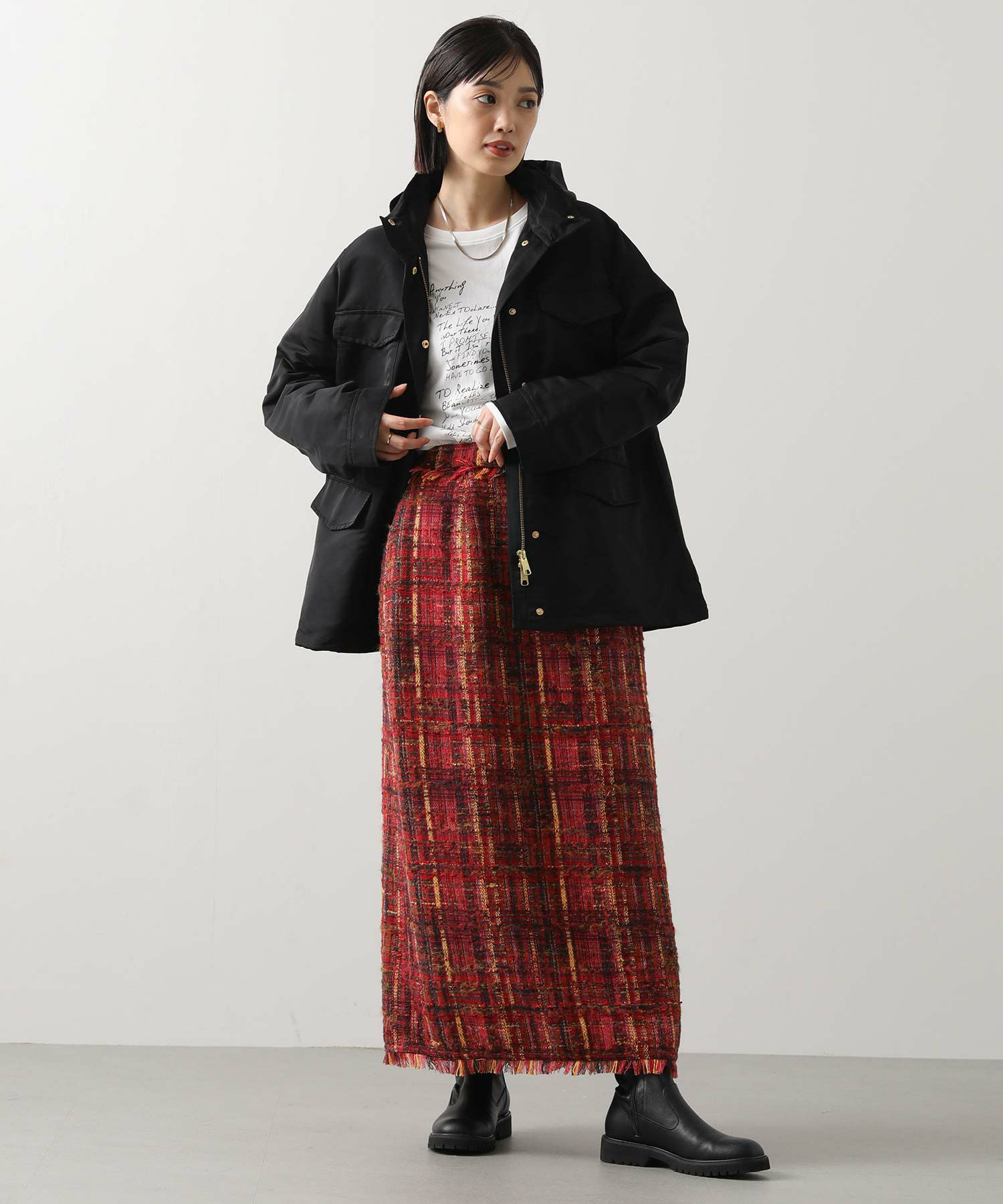 ※着用画像は撮影状況、光の当たり具合で色みが違って見える場合がございます。実際の色みについては、画像一覧の最後に掲載している詳細画像をご参照ください。