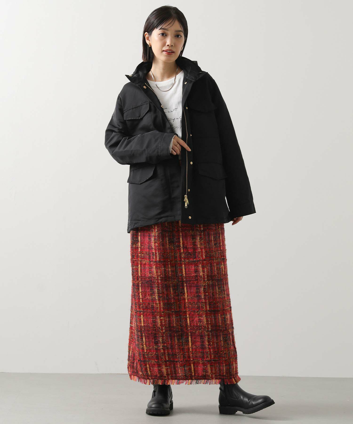 ※着用画像は撮影状況、光の当たり具合で色みが違って見える場合がございます。実際の色みについては、画像一覧の最後に掲載している詳細画像をご参照ください。