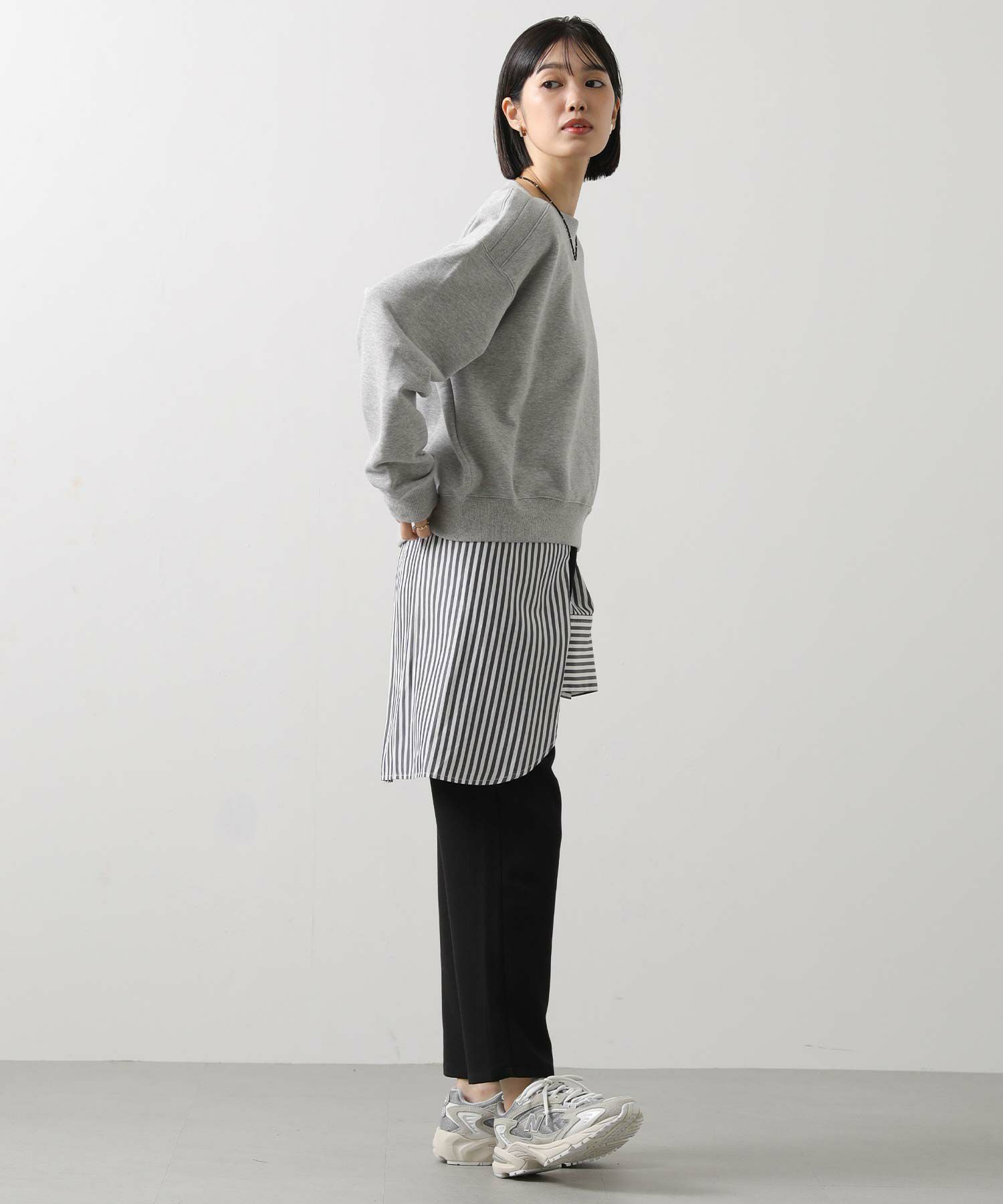 柔らかな裏毛素材が着心地の良さを叶えつつ、きれいめスタイルにも自然に馴染む1着。