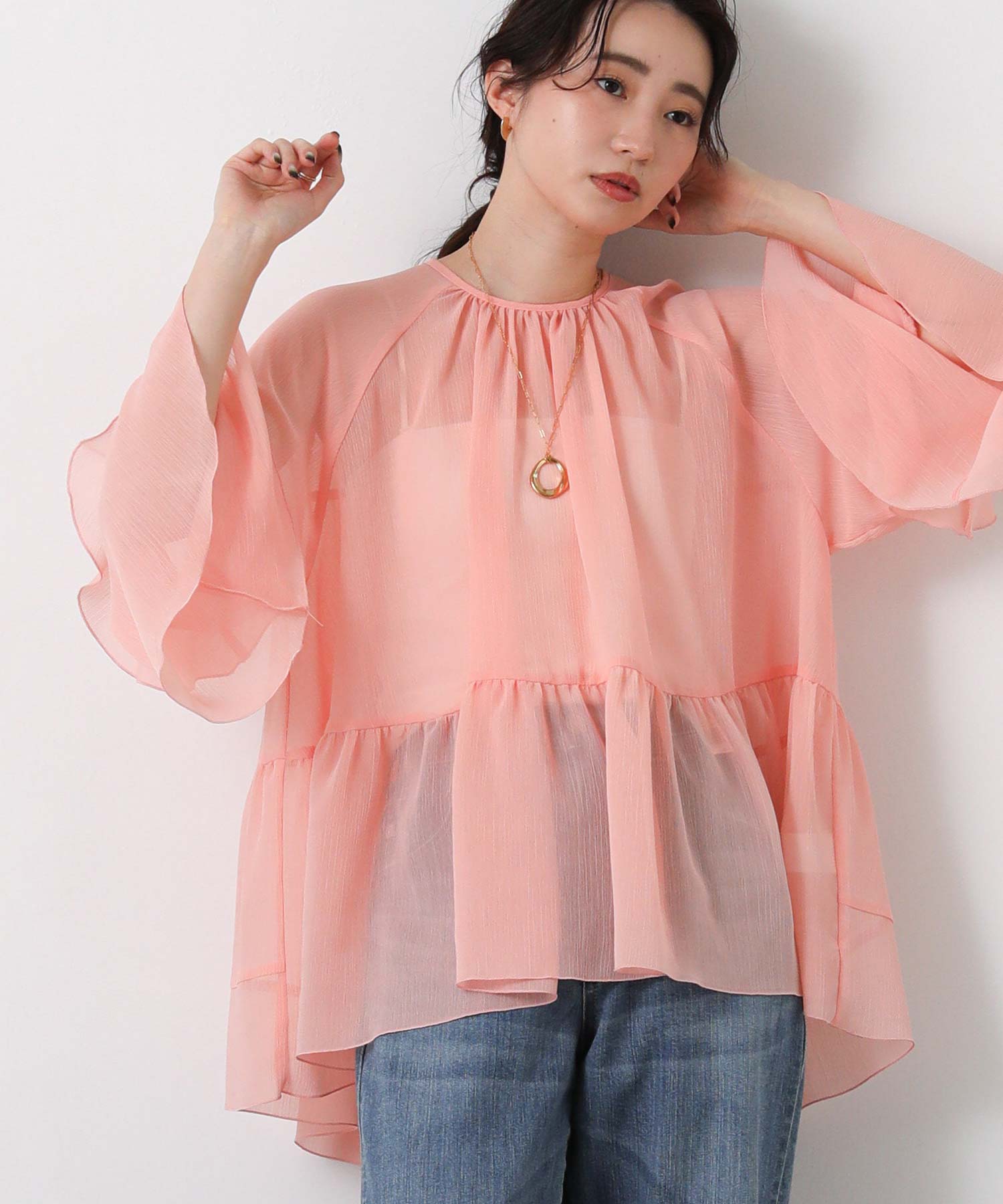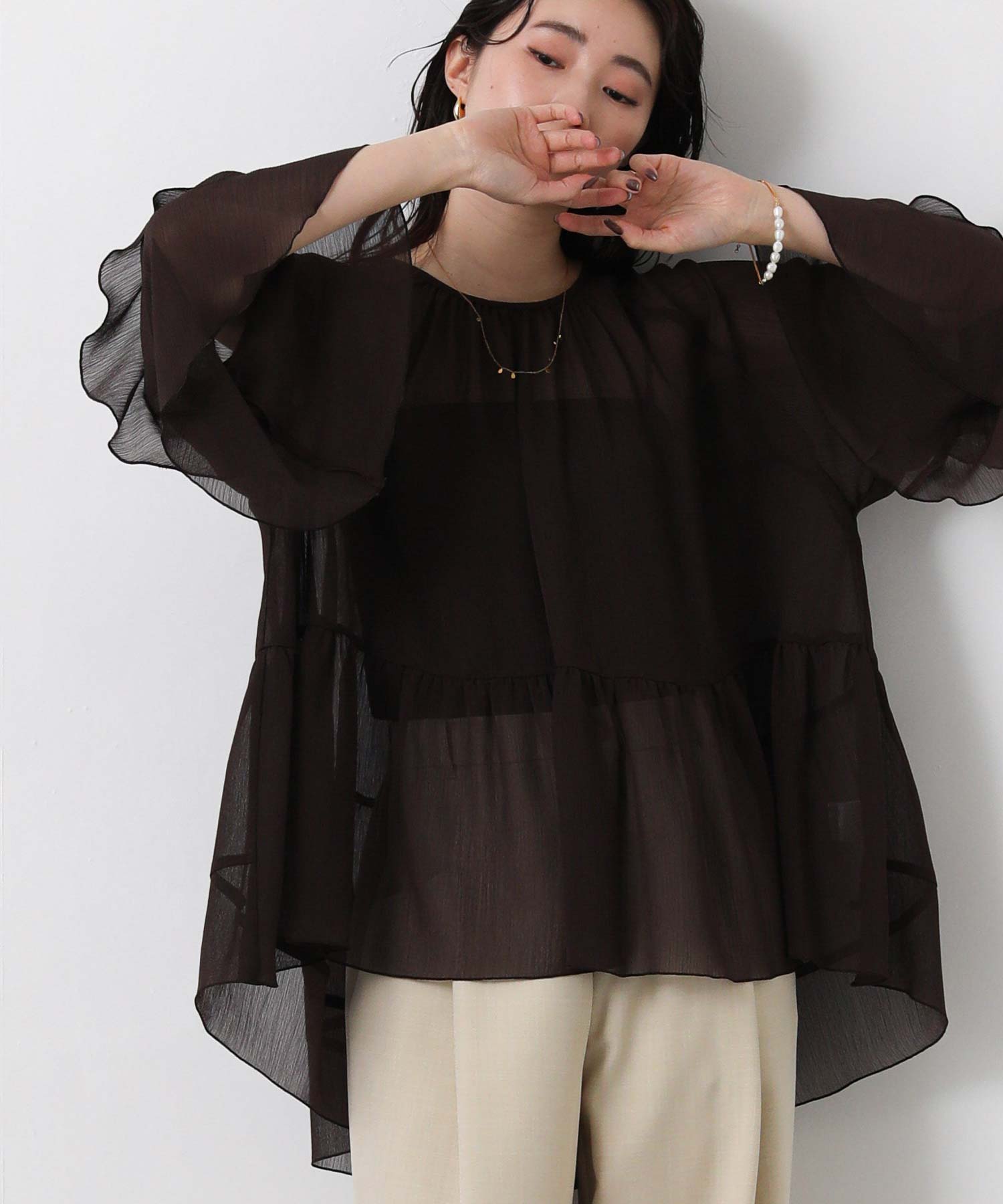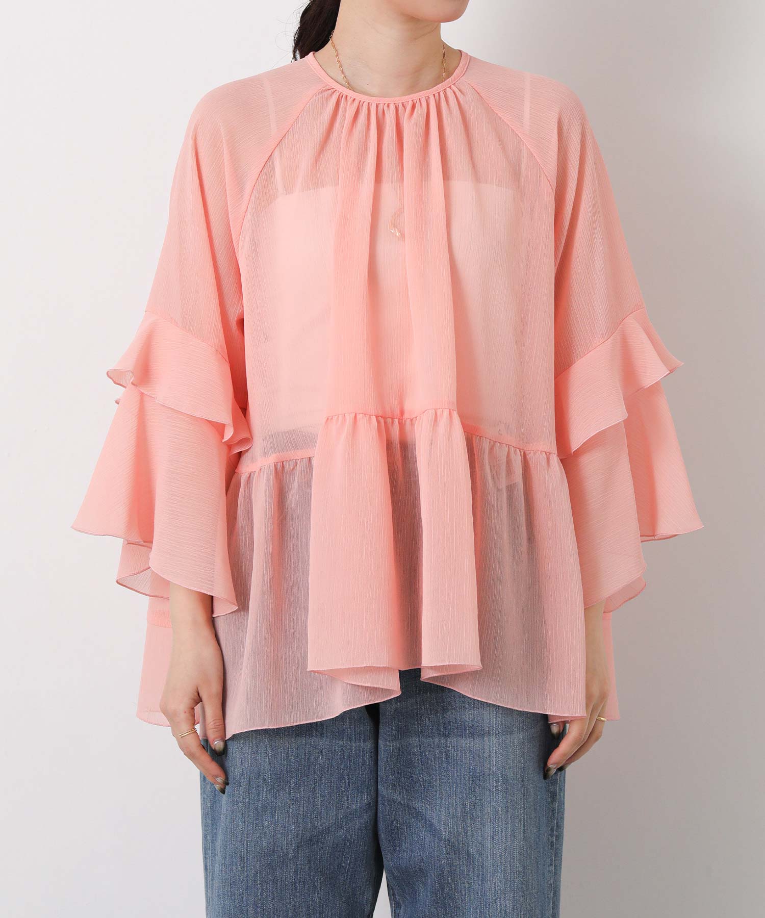楊柳ギャザーティアードブラウス