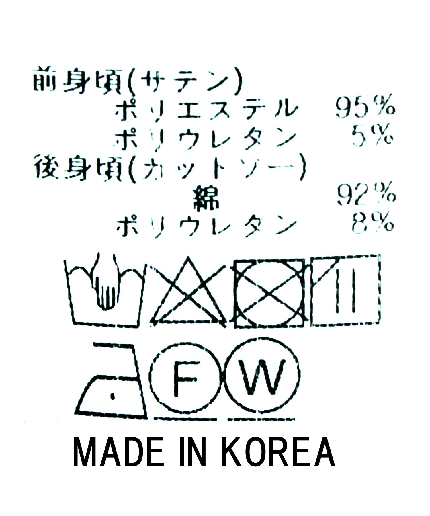 前身頃(サテン):ポリエステル95%、ポリウレタン5%