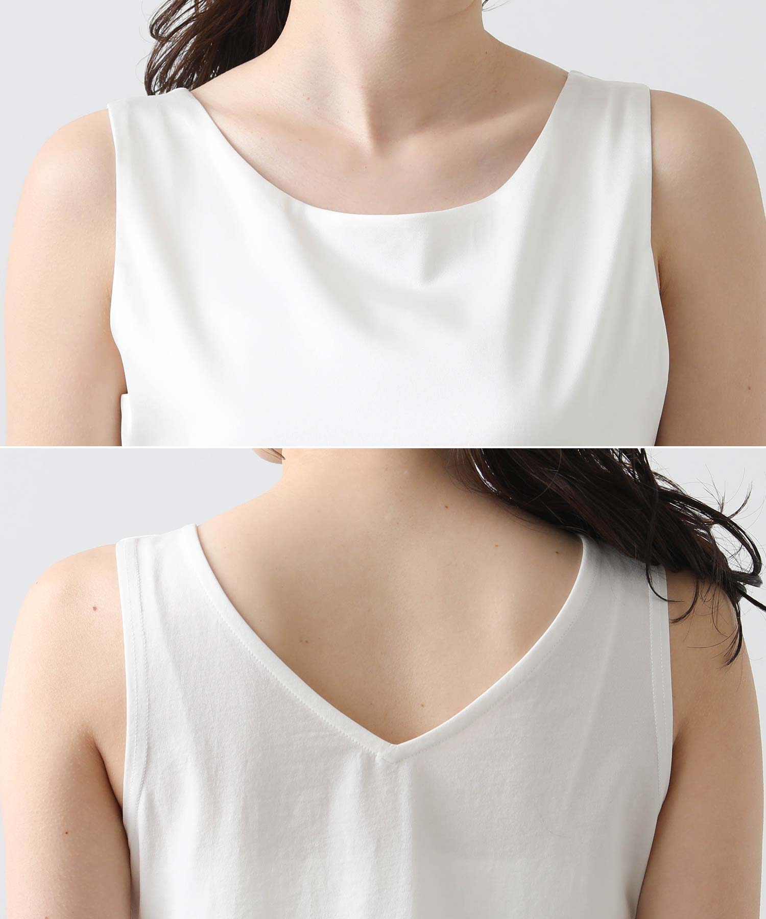 肩まわりは下着のストラップが見えにくいデザインにアップデートされ、実用性がさらに向上しました。
