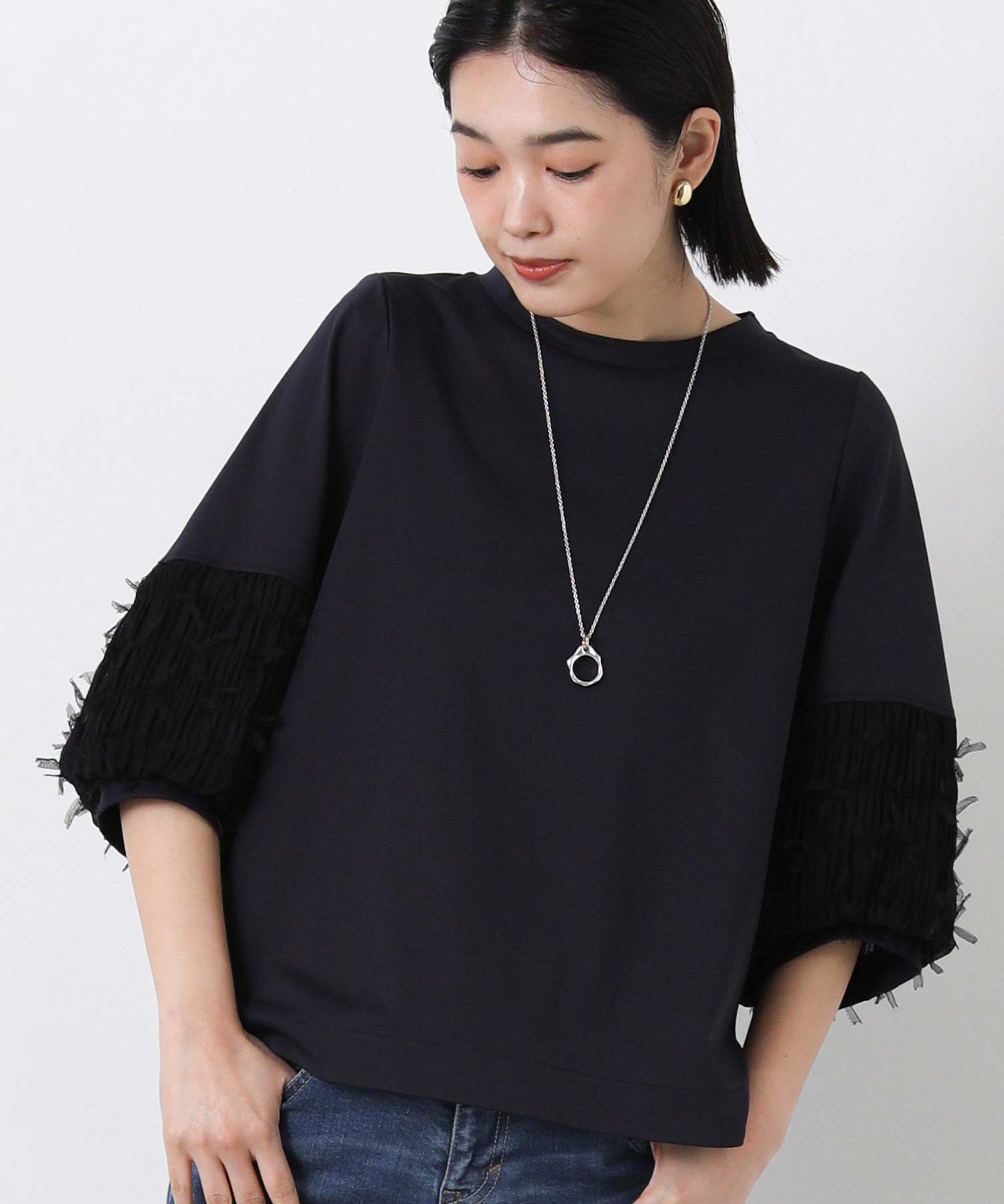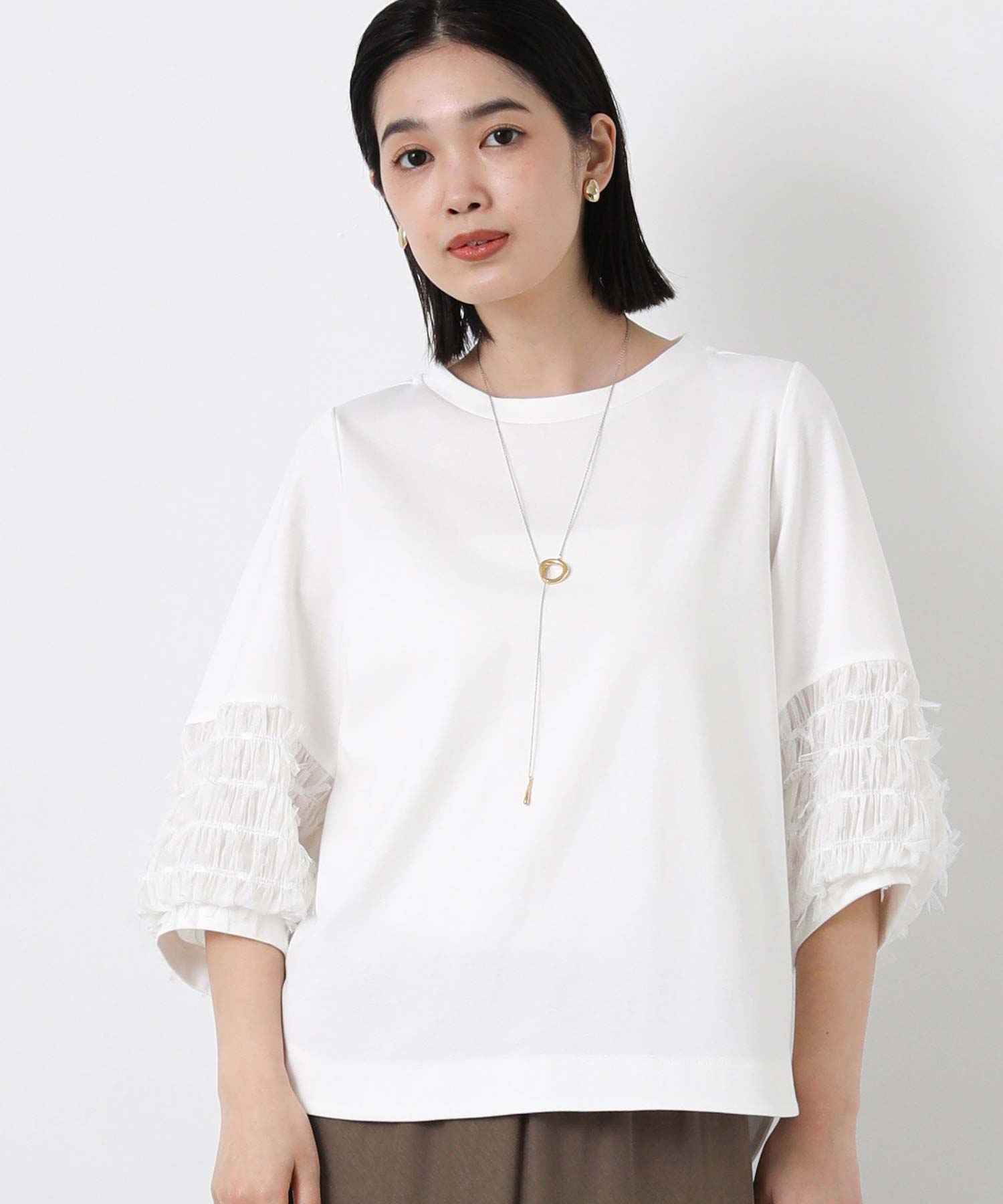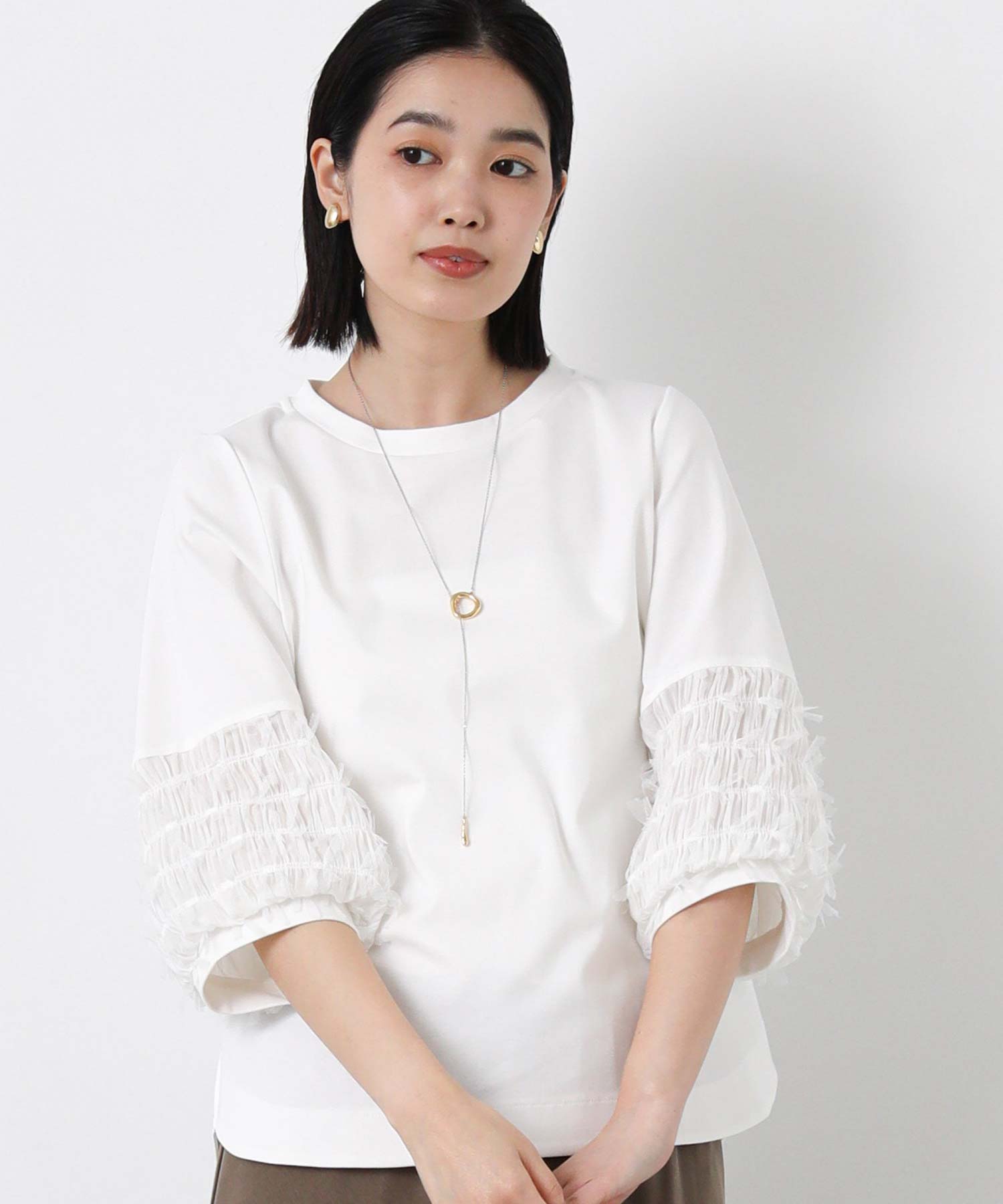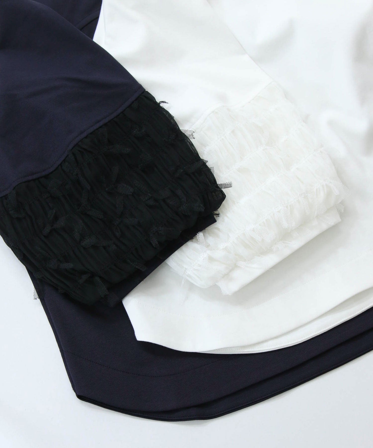 袖にはリボンのように見える立体感のある別布素材を使用し、さりげない華やかさをプラス。
