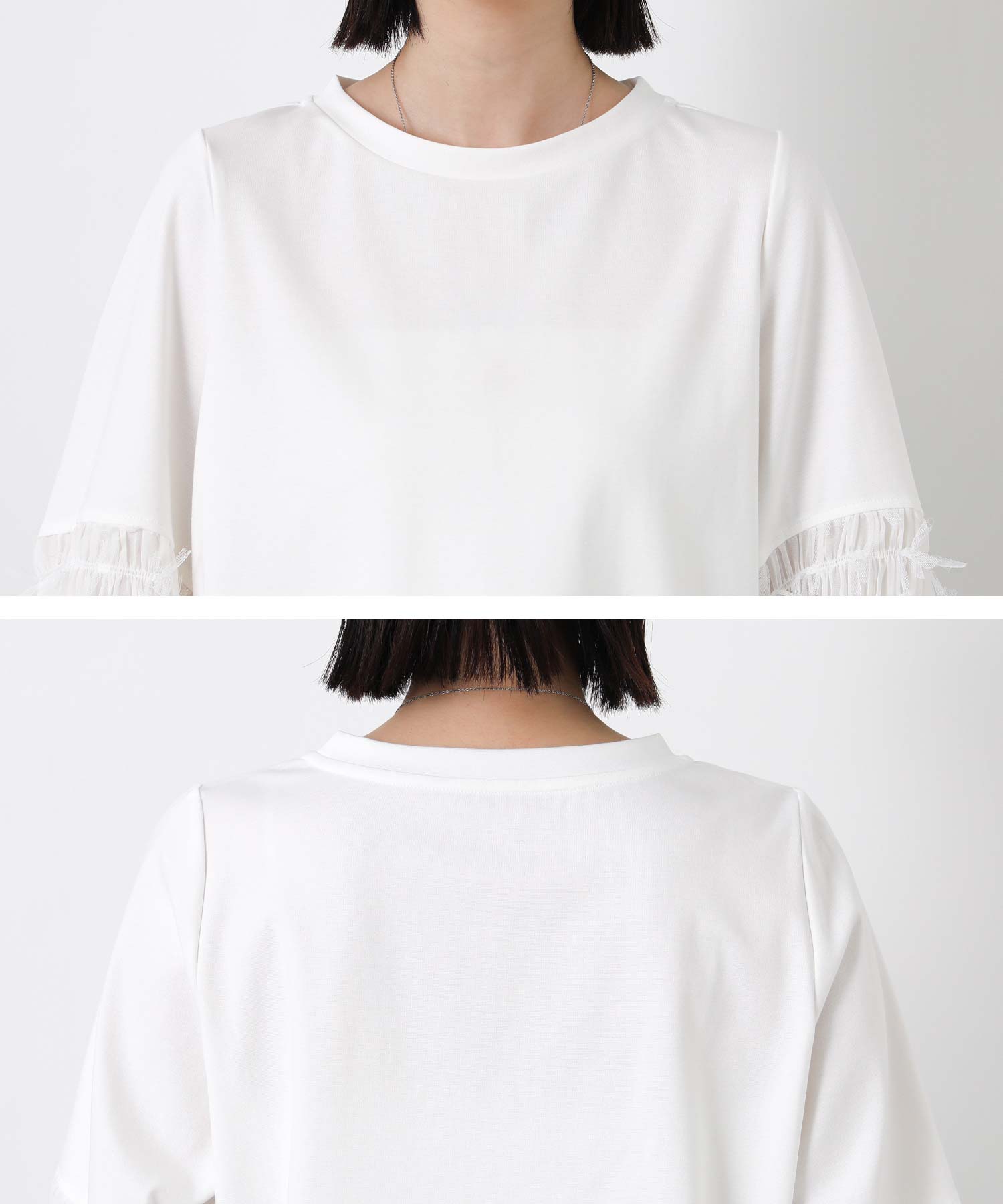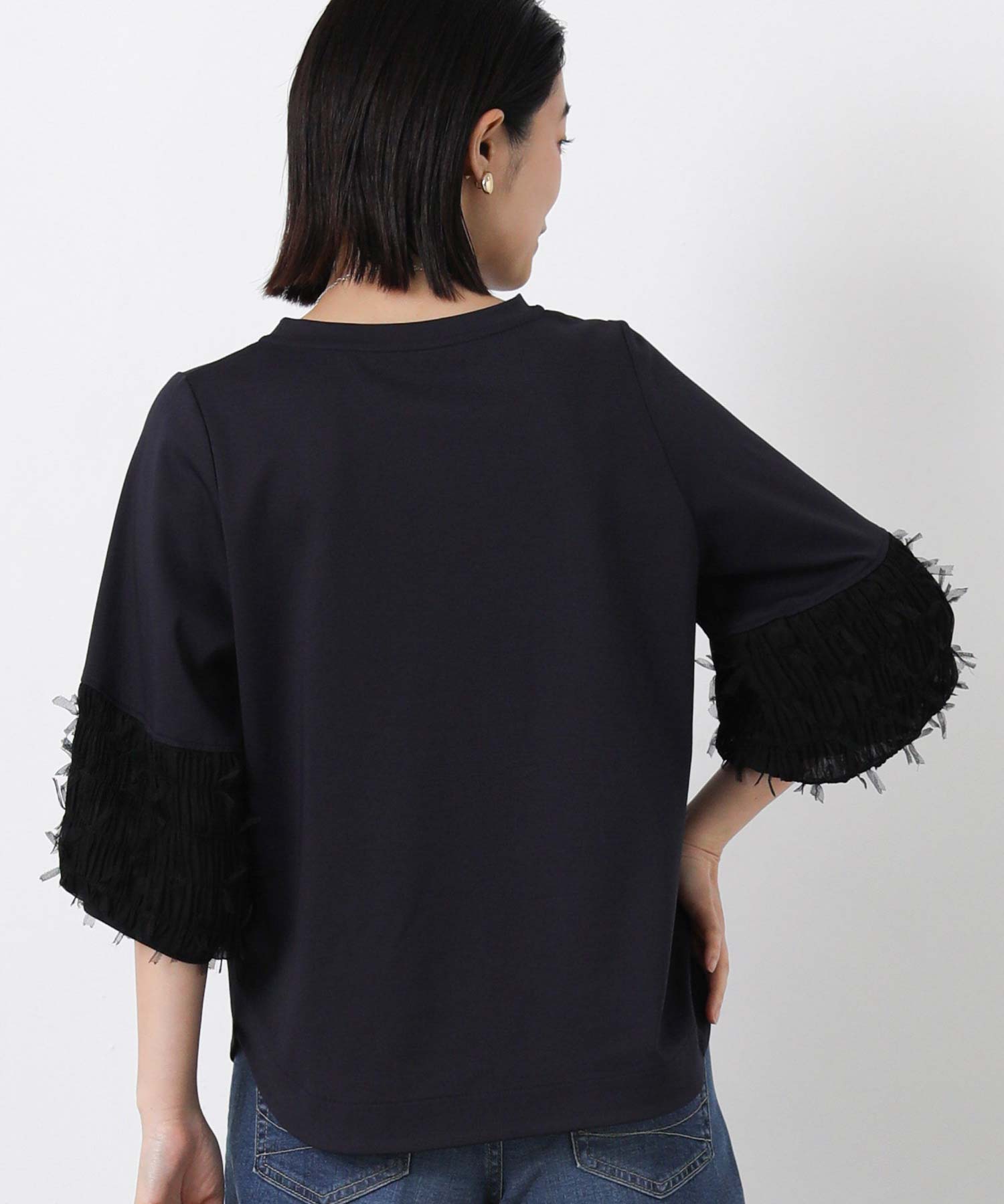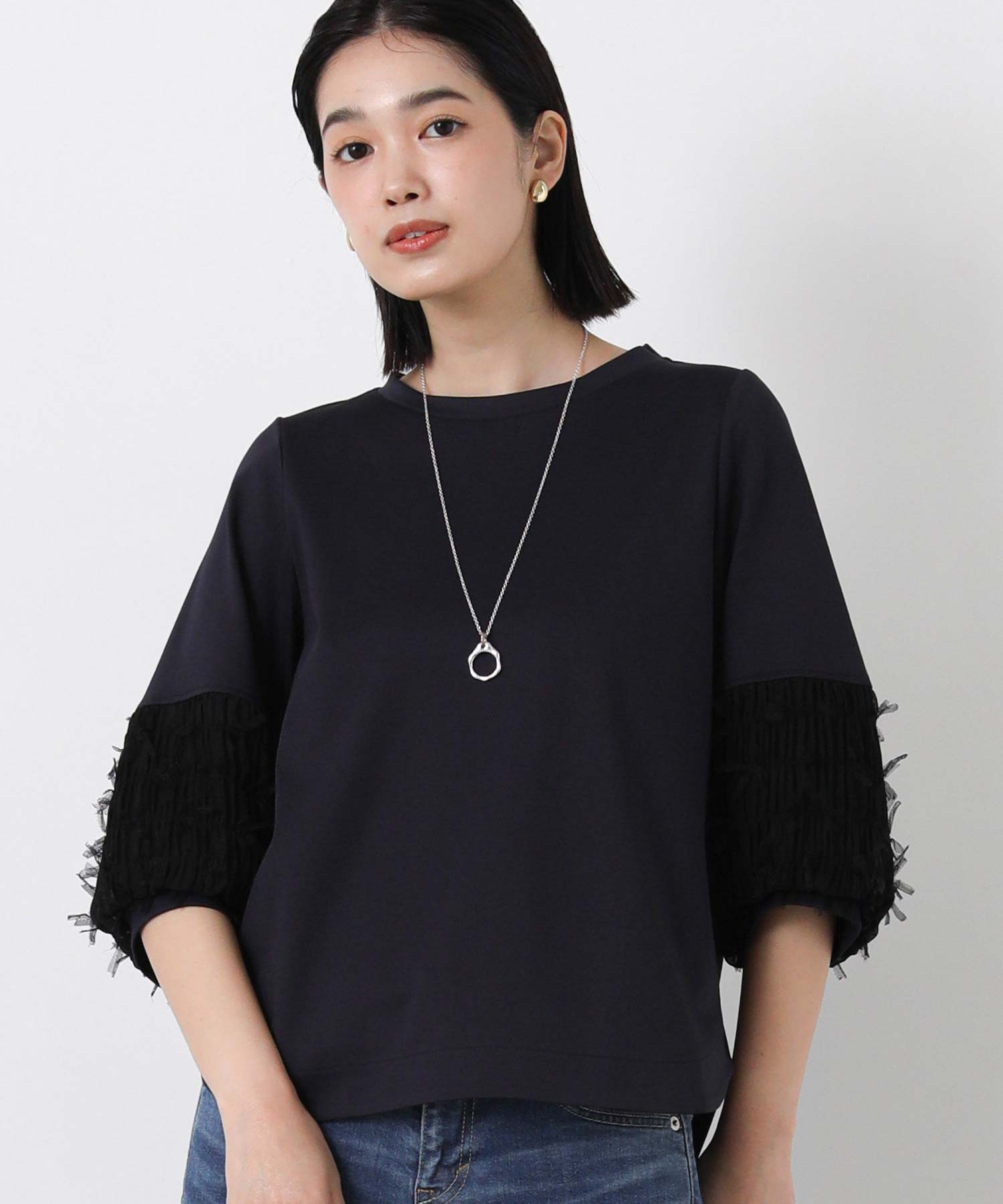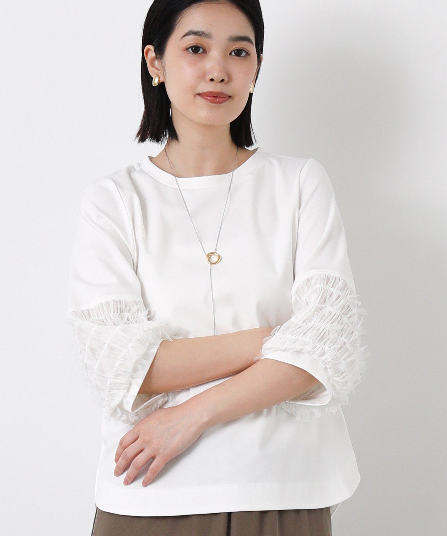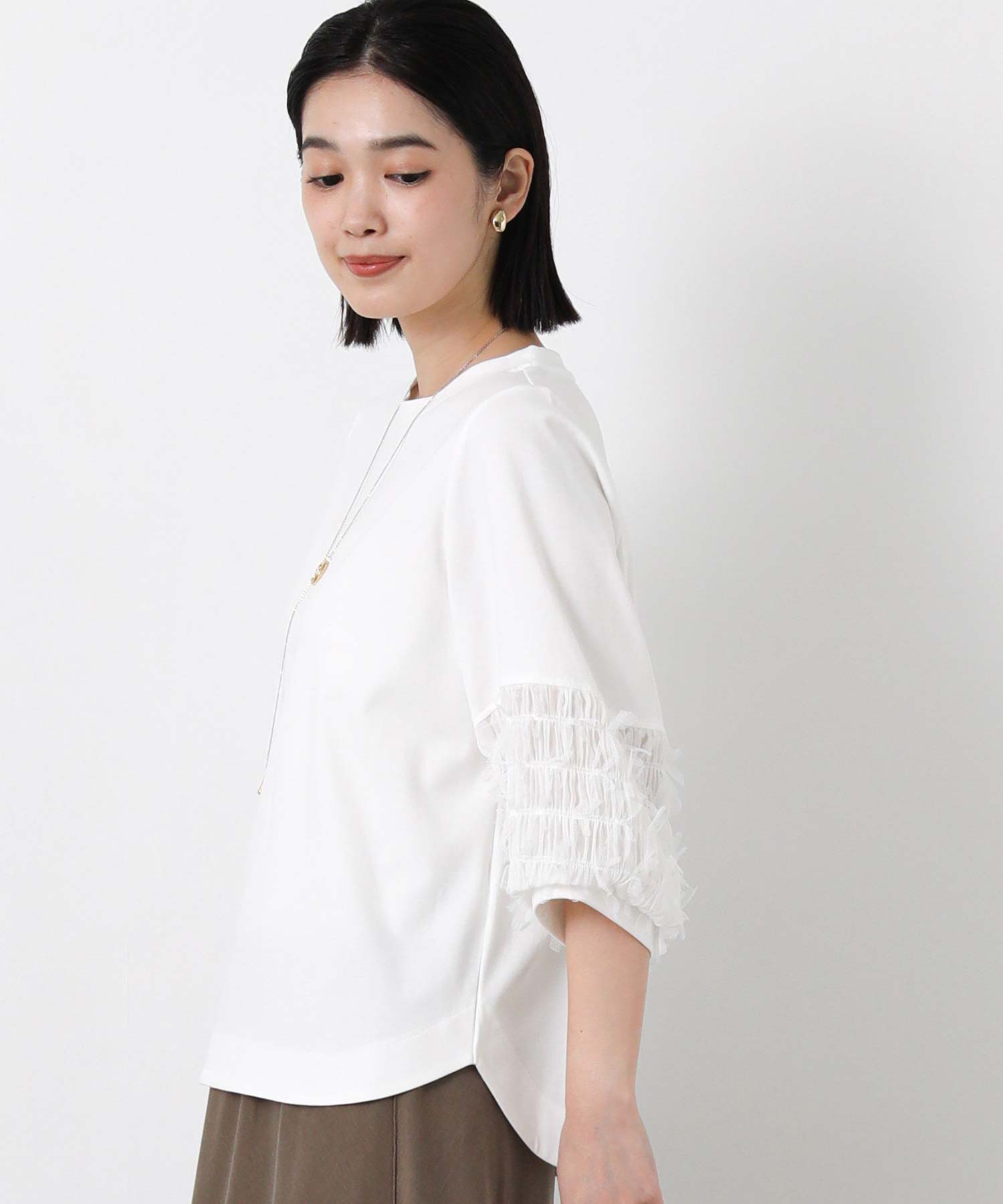 袖にはリボンのように見える立体感のある別布素材を使用し、さりげない華やかさをプラス。