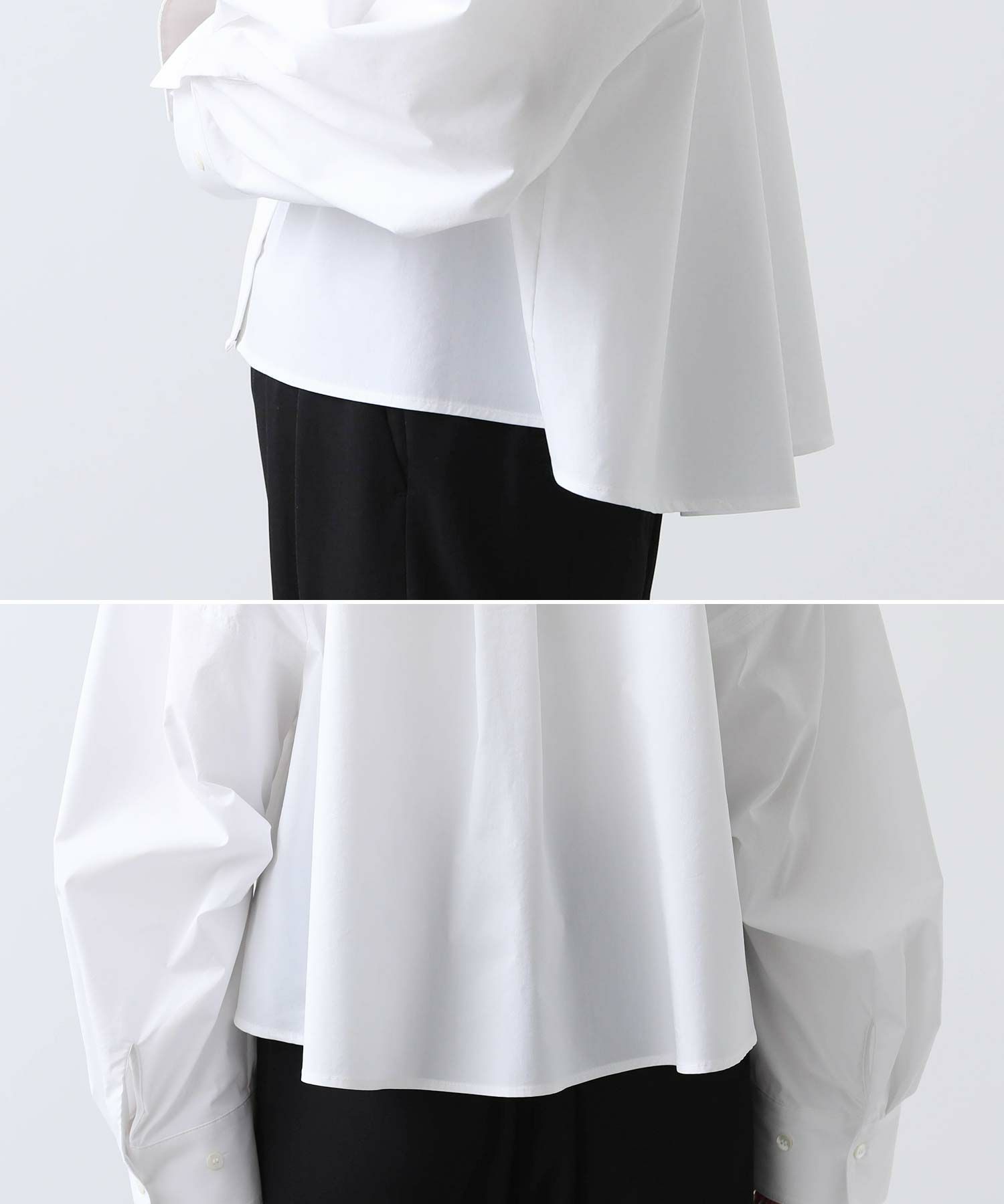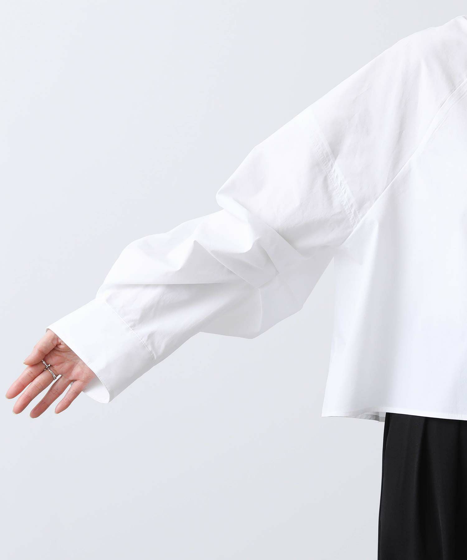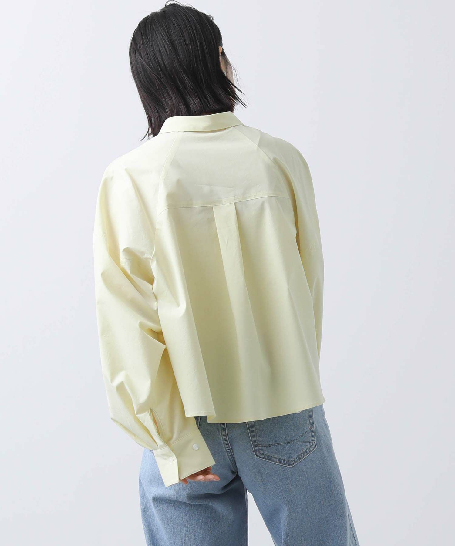 今年らしいクロップド丈のシャツ。