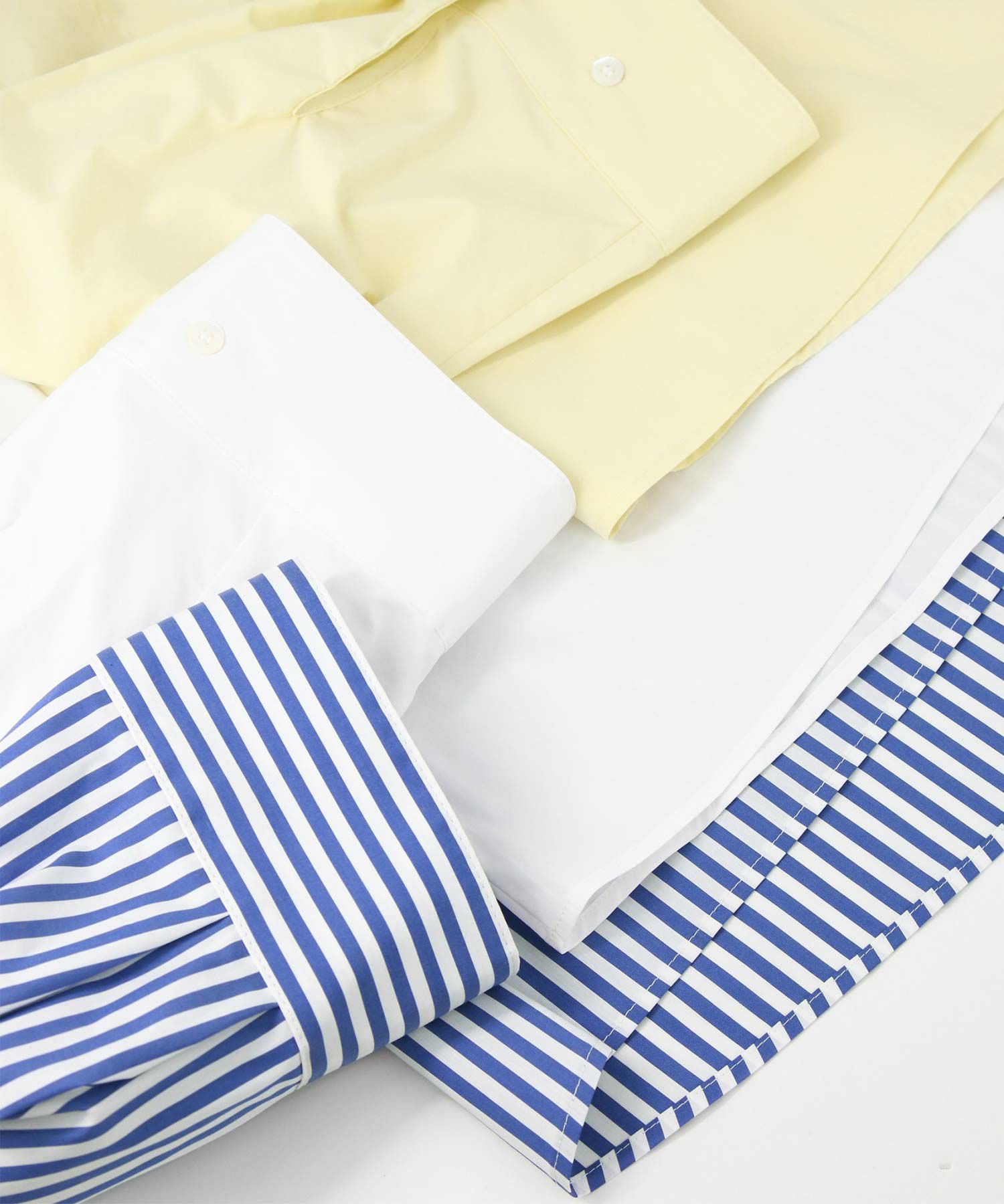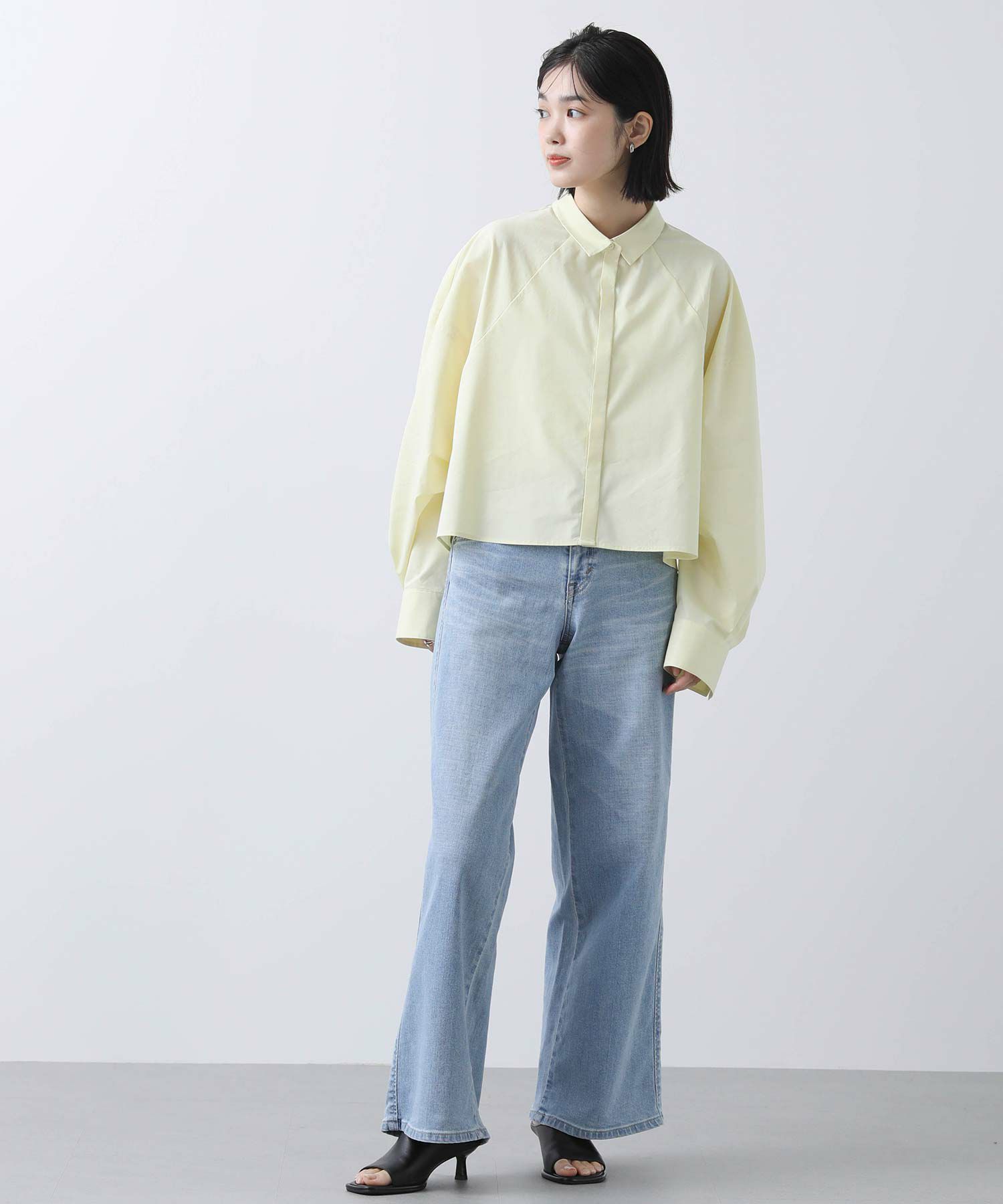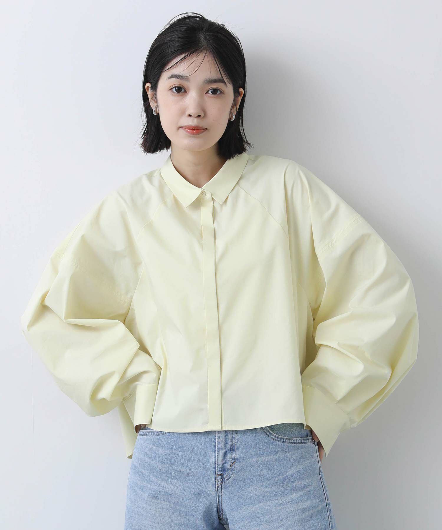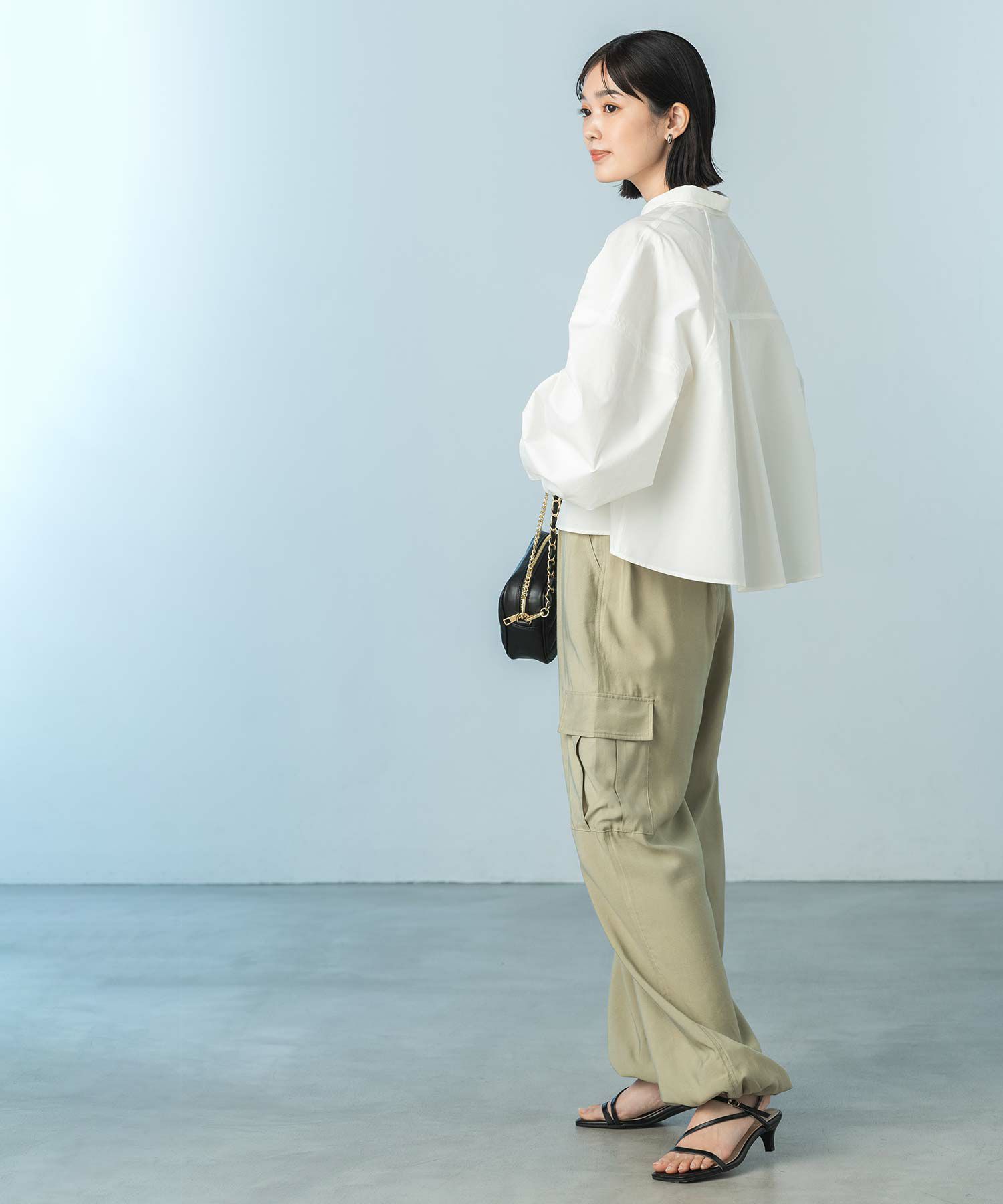 今年らしいクロップド丈のシャツ。