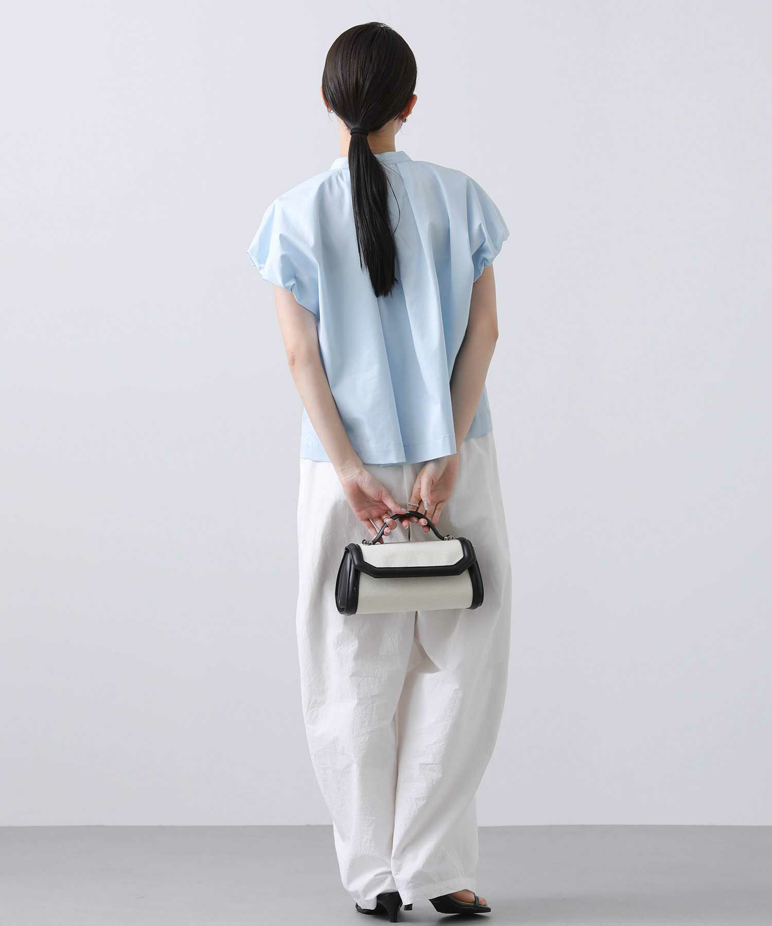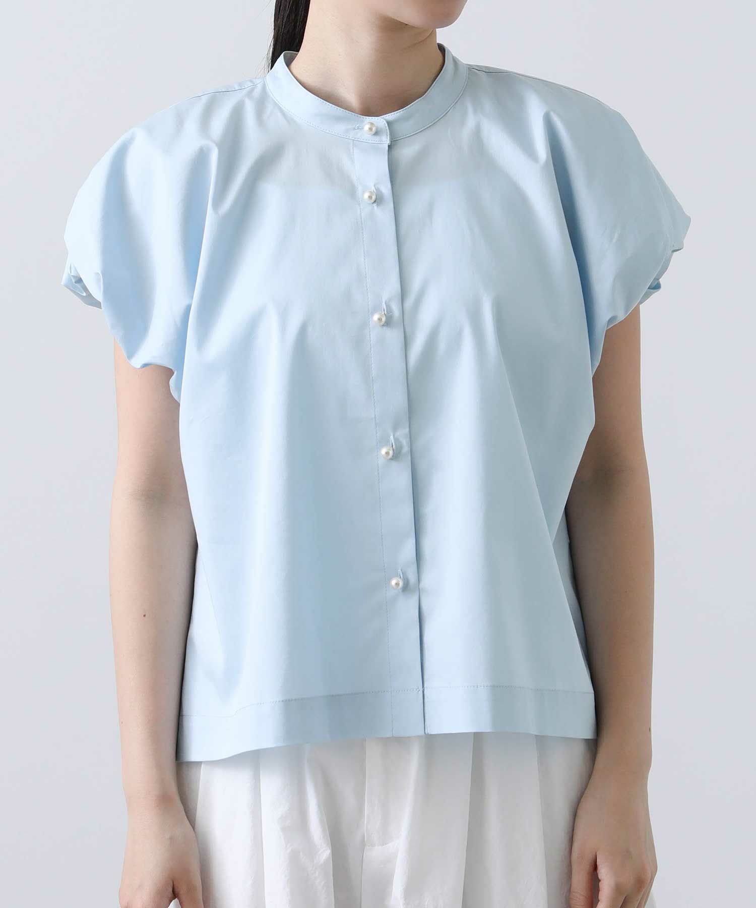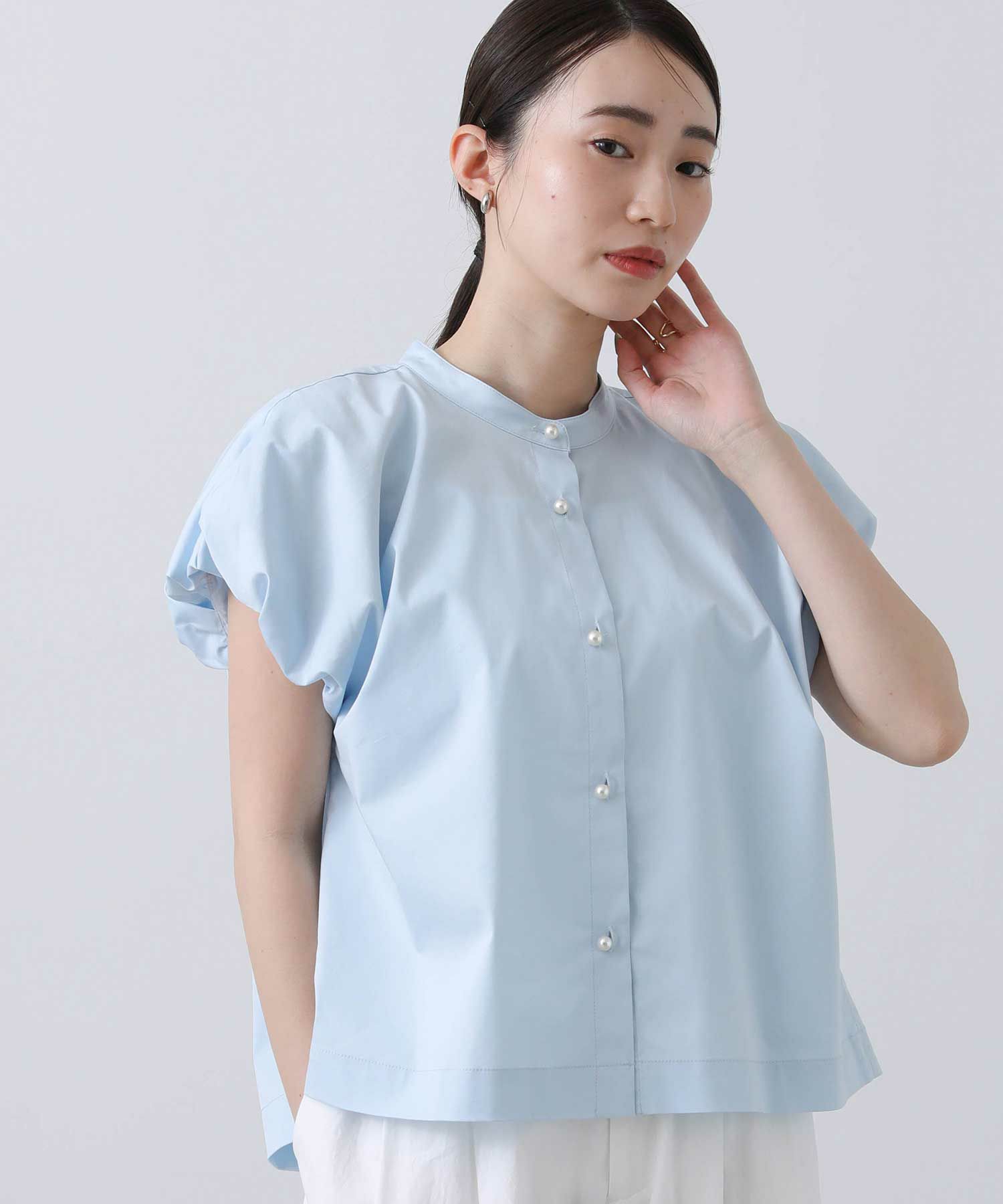 スタンドカラーで首周りをすっきりさせ、バルーン袖の甘さを抑えたデザインが魅力の一着。
