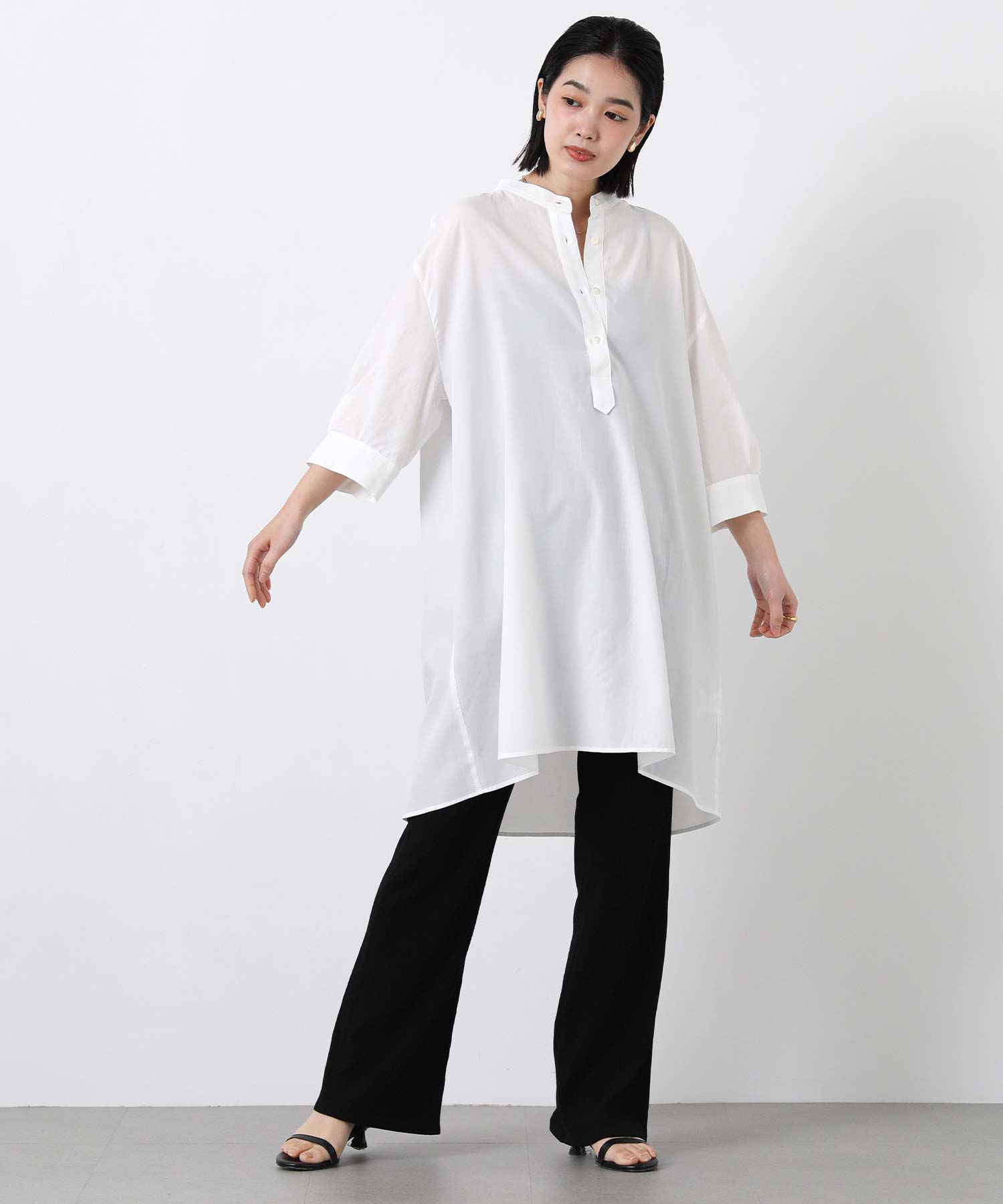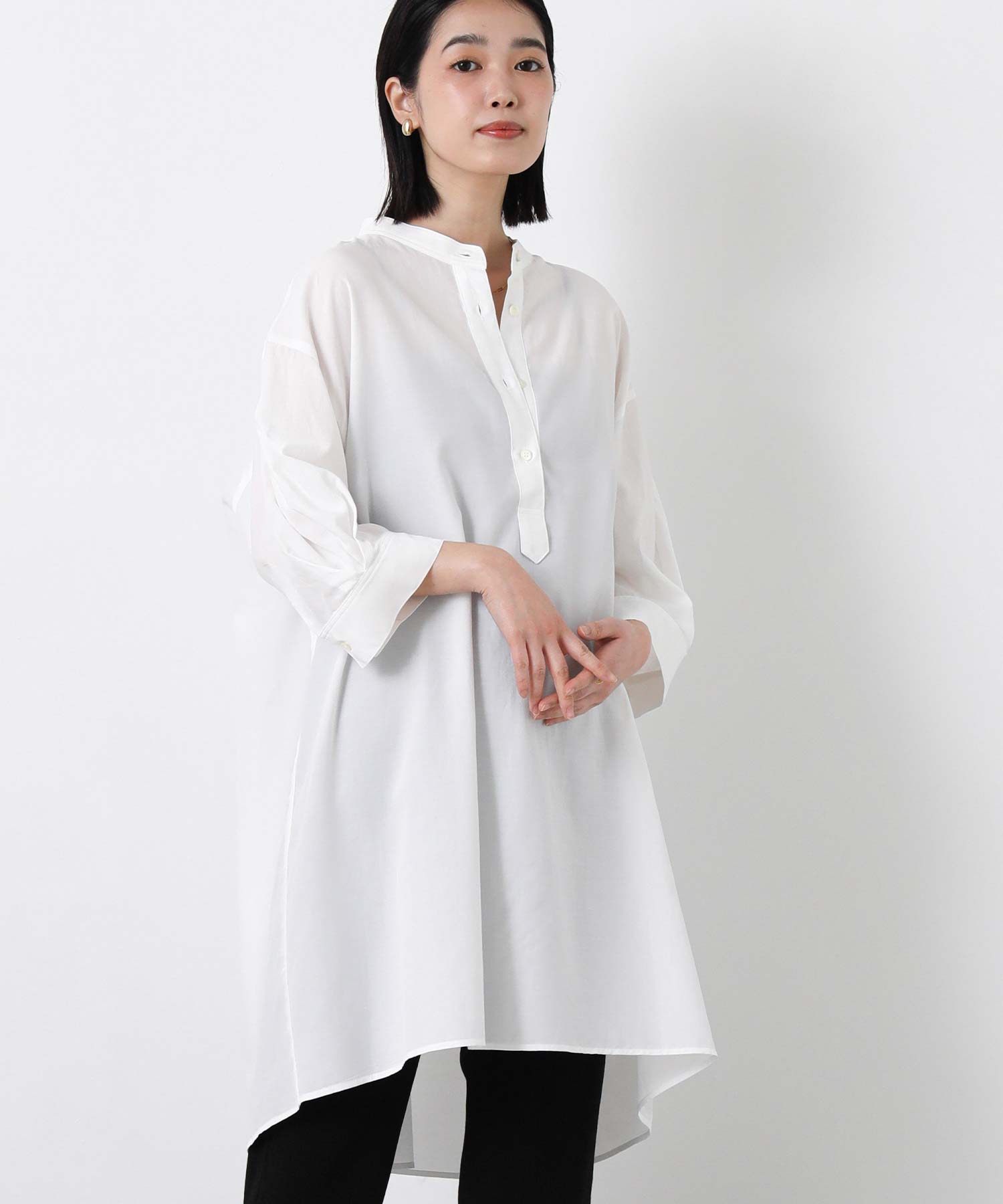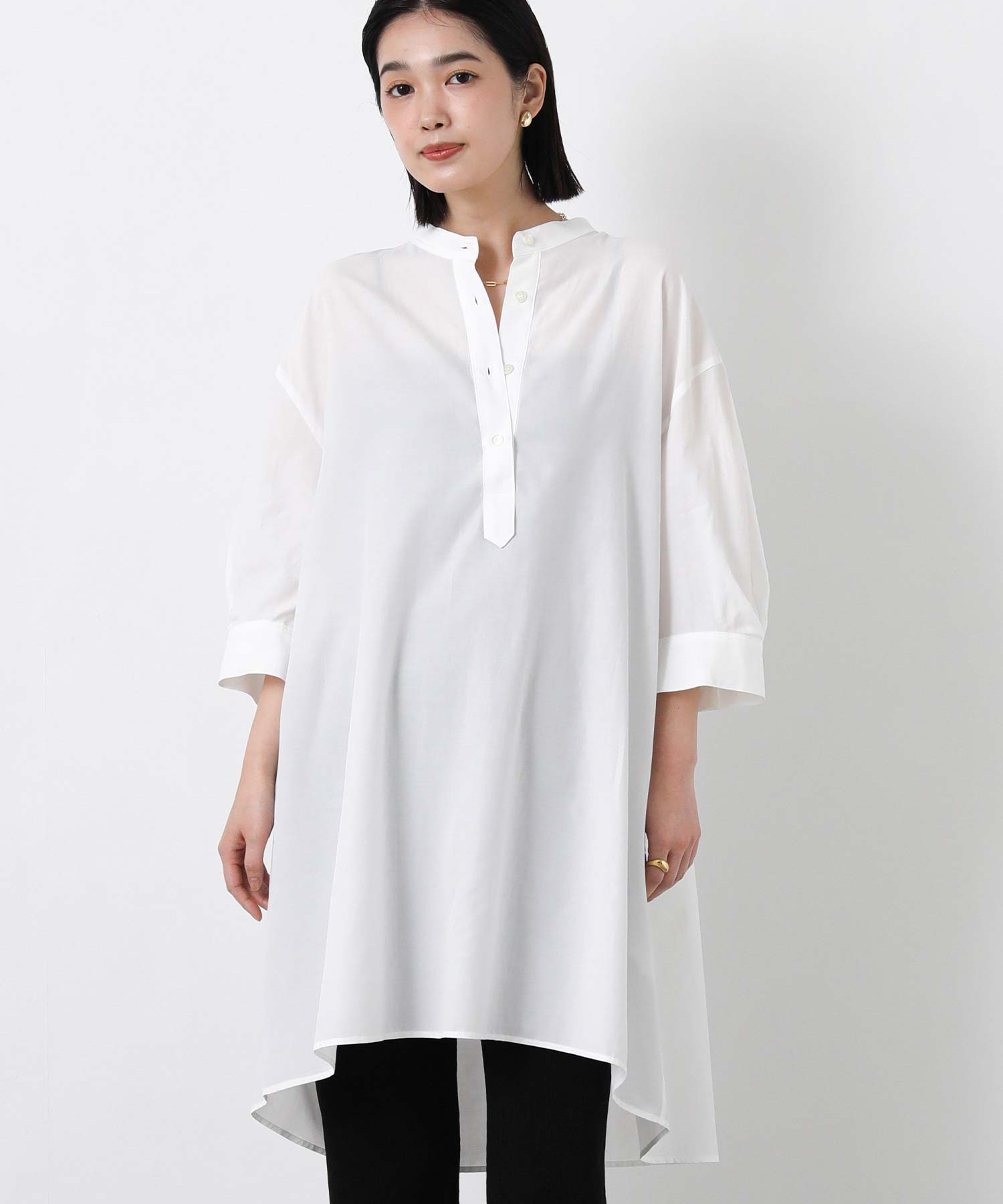 新鮮な着丈が着こなしの幅を広げてくれる、大人のチュニックシャツ。