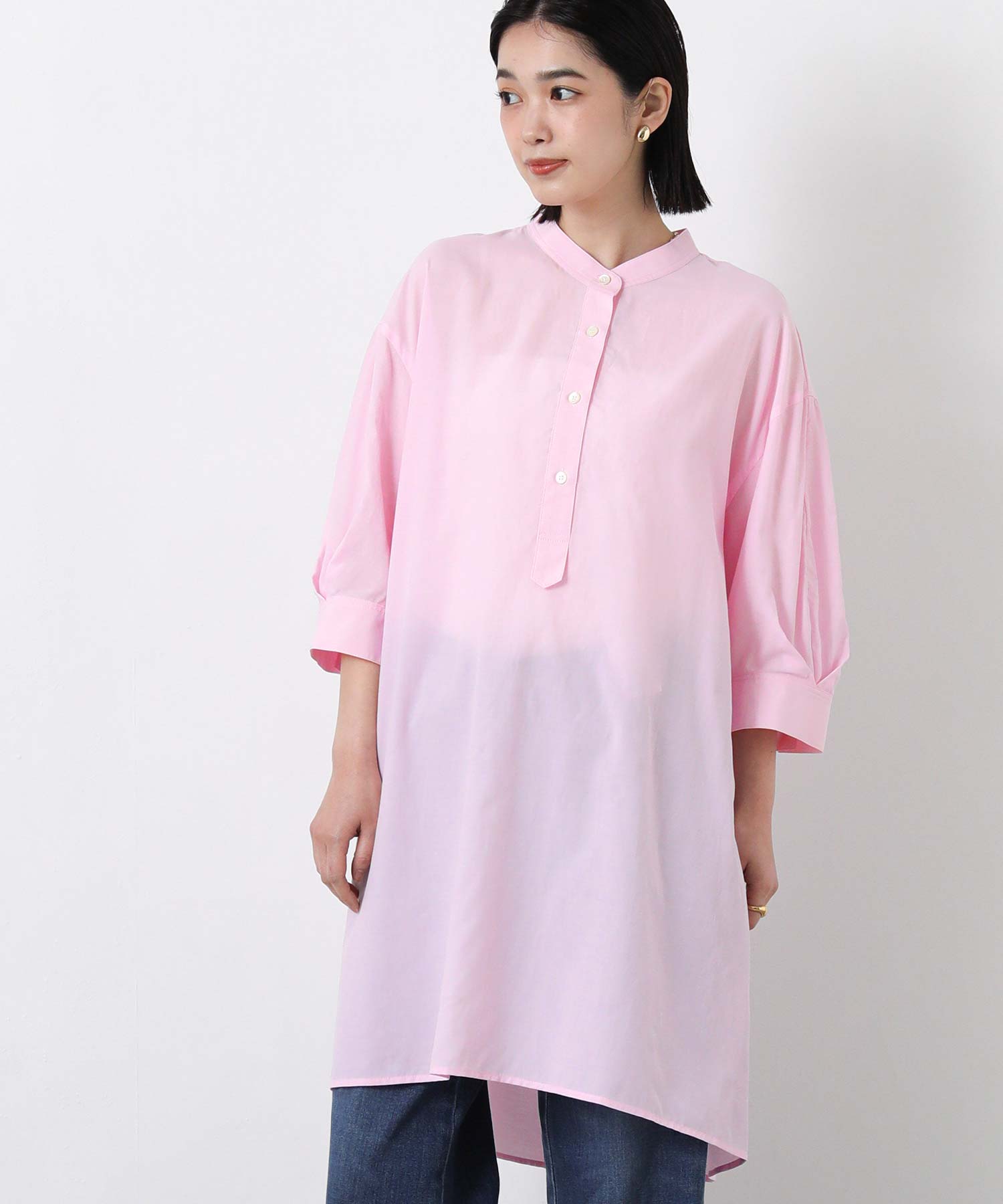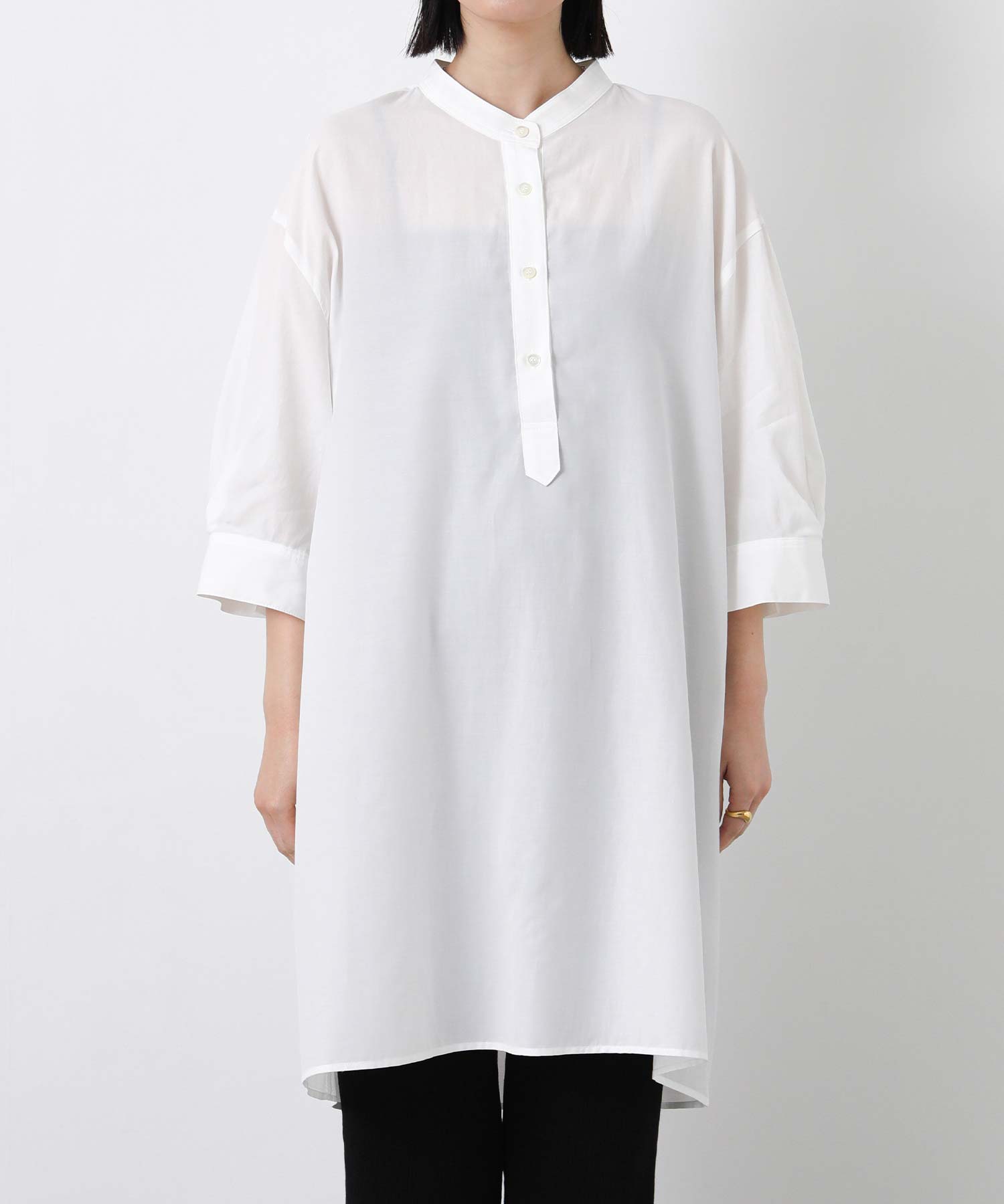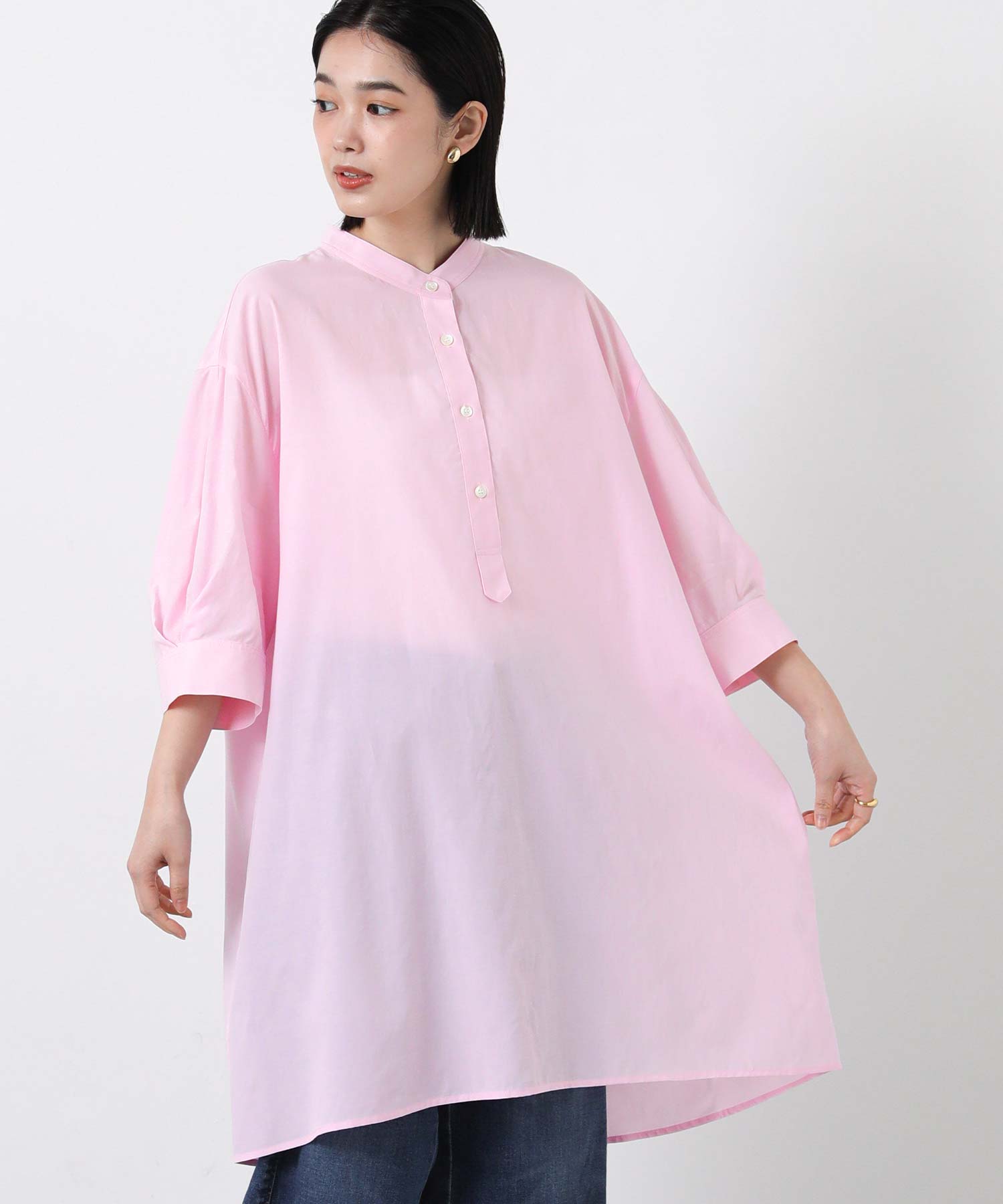 スタンドカラー5分袖チュニック