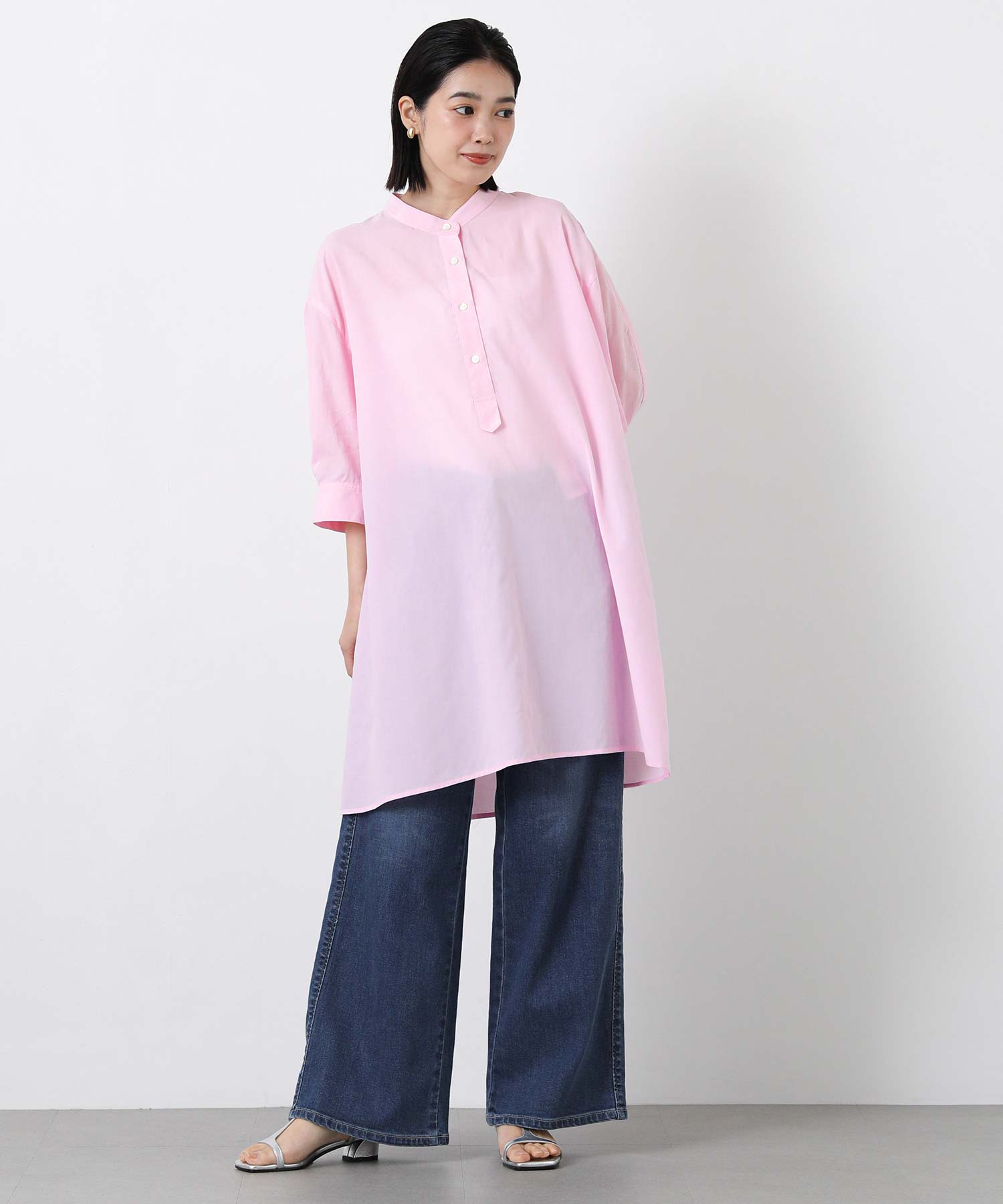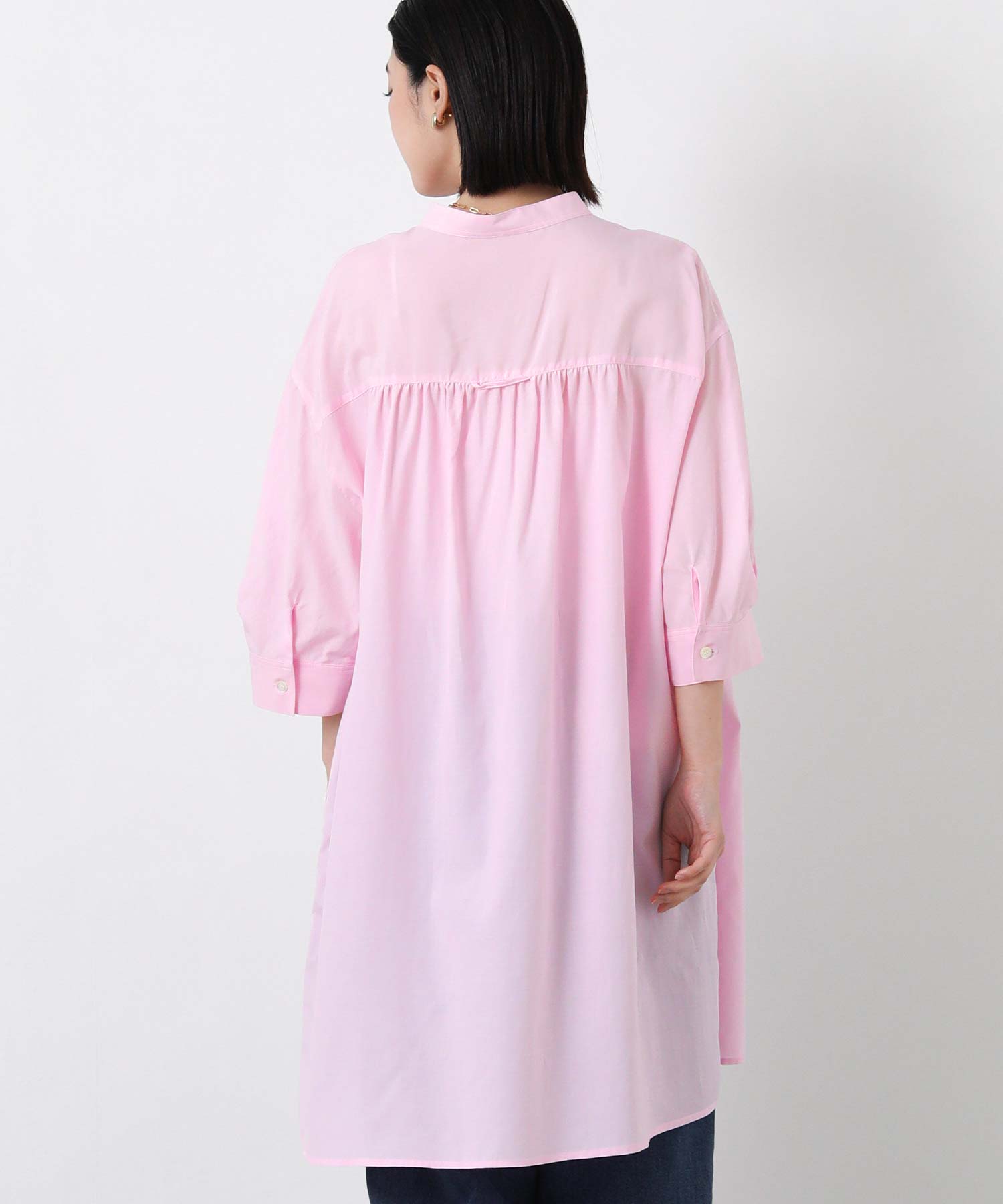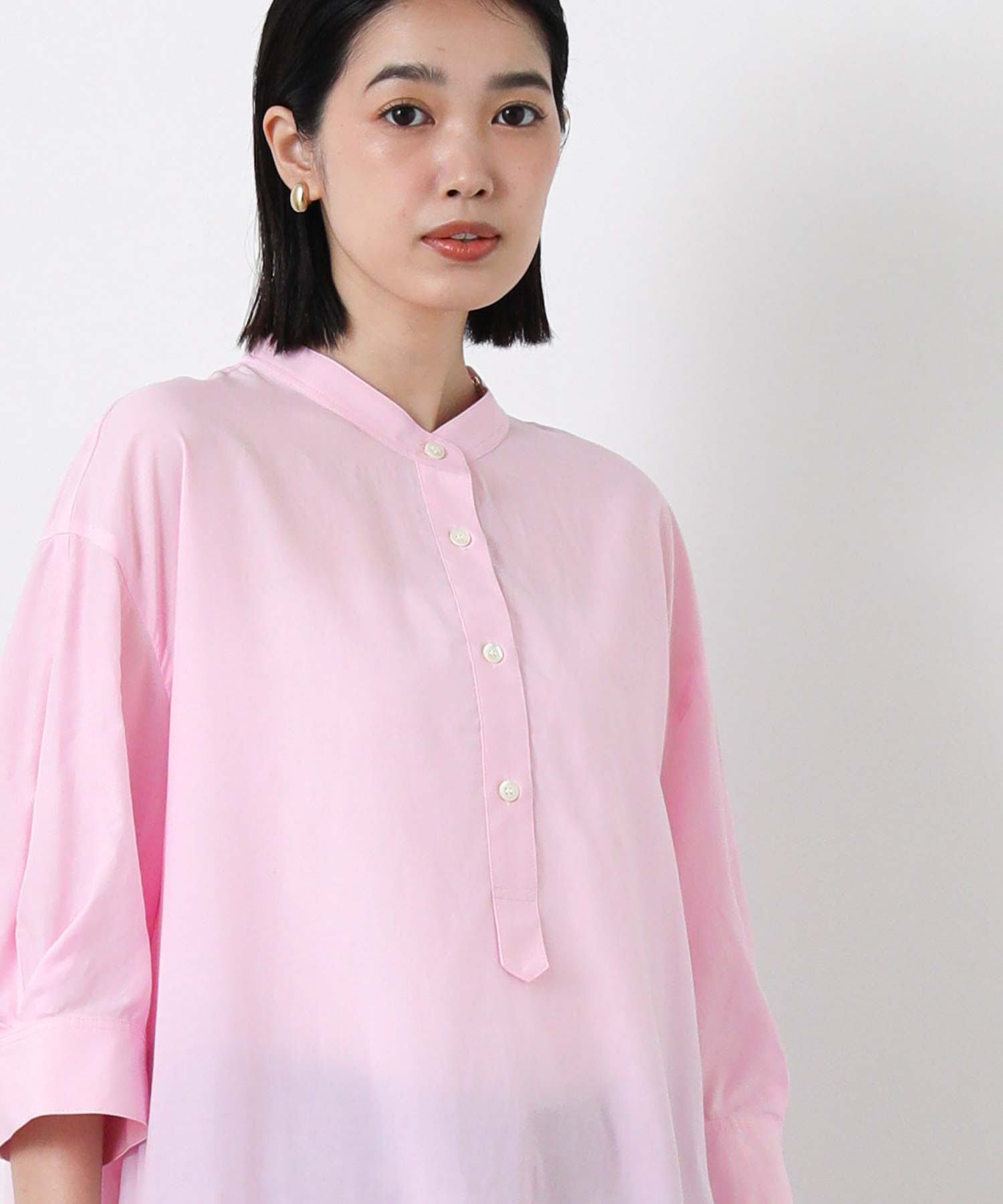 スタンドカラー5分袖チュニック