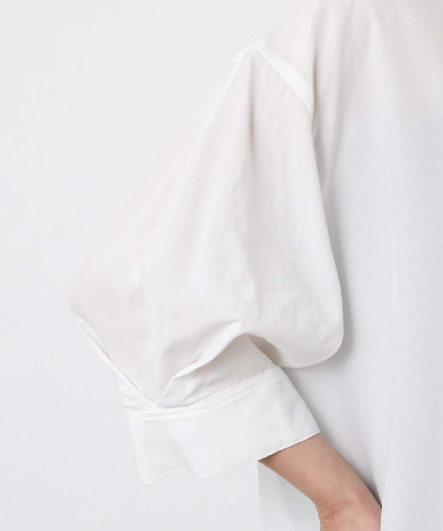 肘の隠れる袖丈で安心があり、手首が見えるので華奢見えしてくれます。