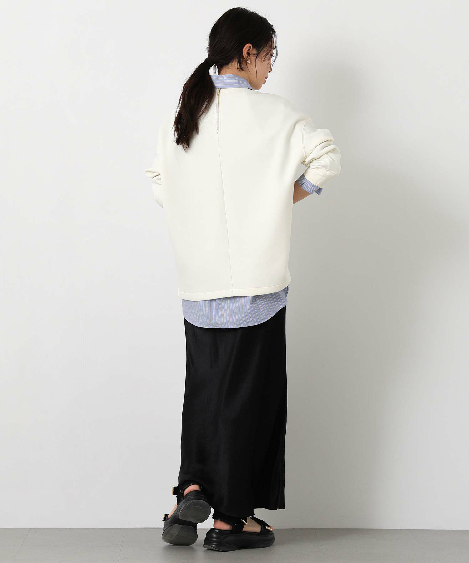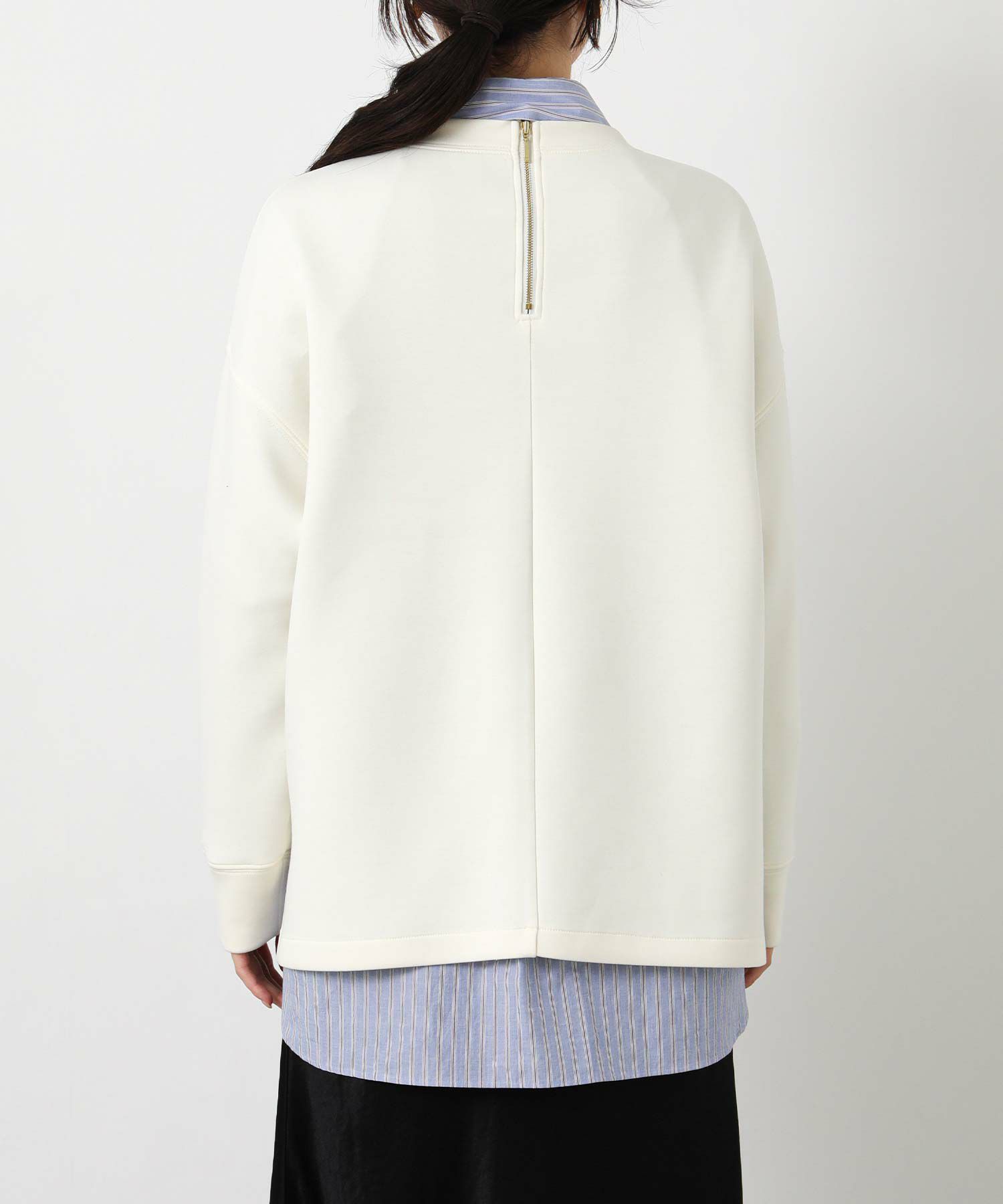 程よい厚みのもっちりダンボール素材を使用した、上品に着られるプルオーバー。