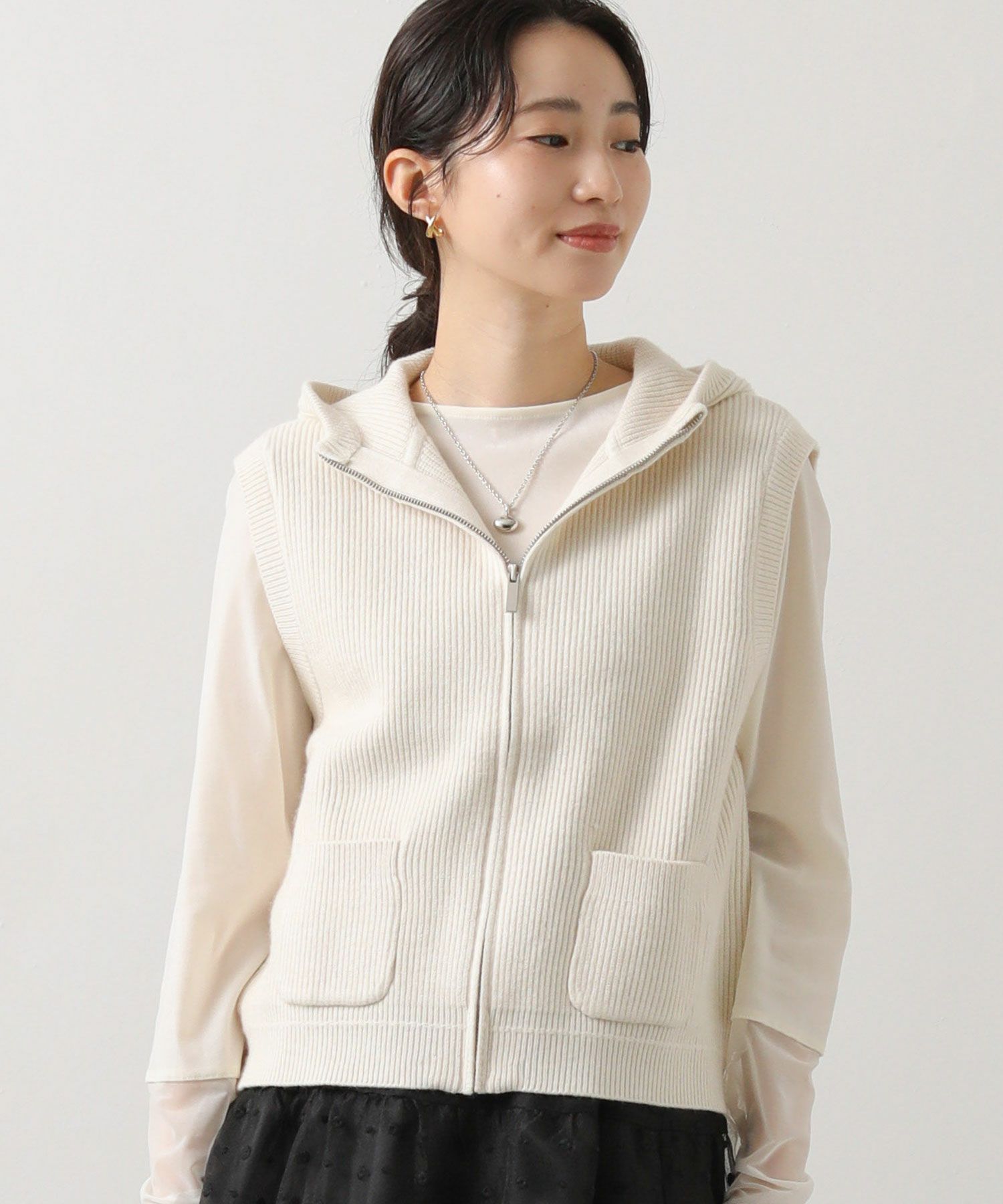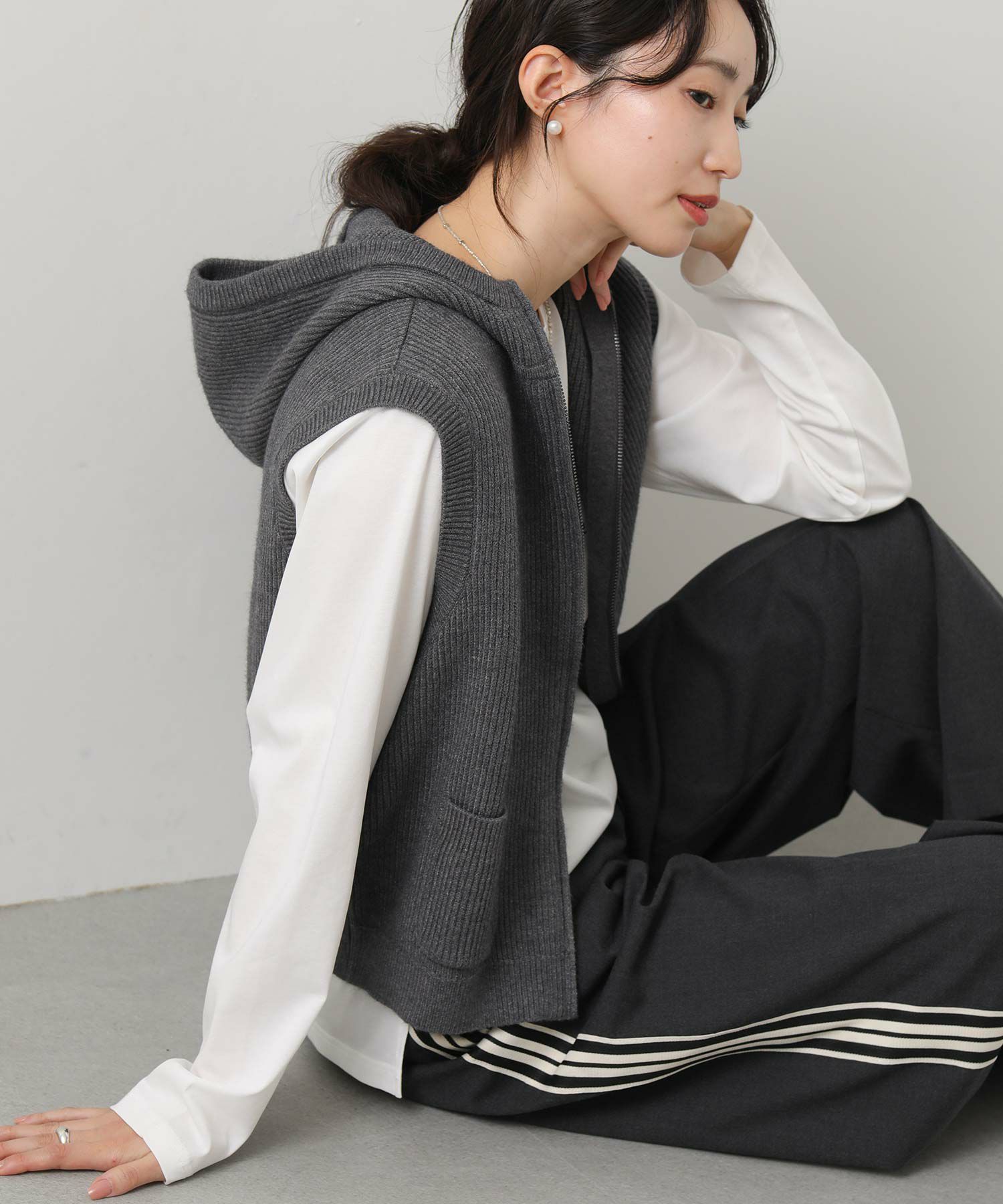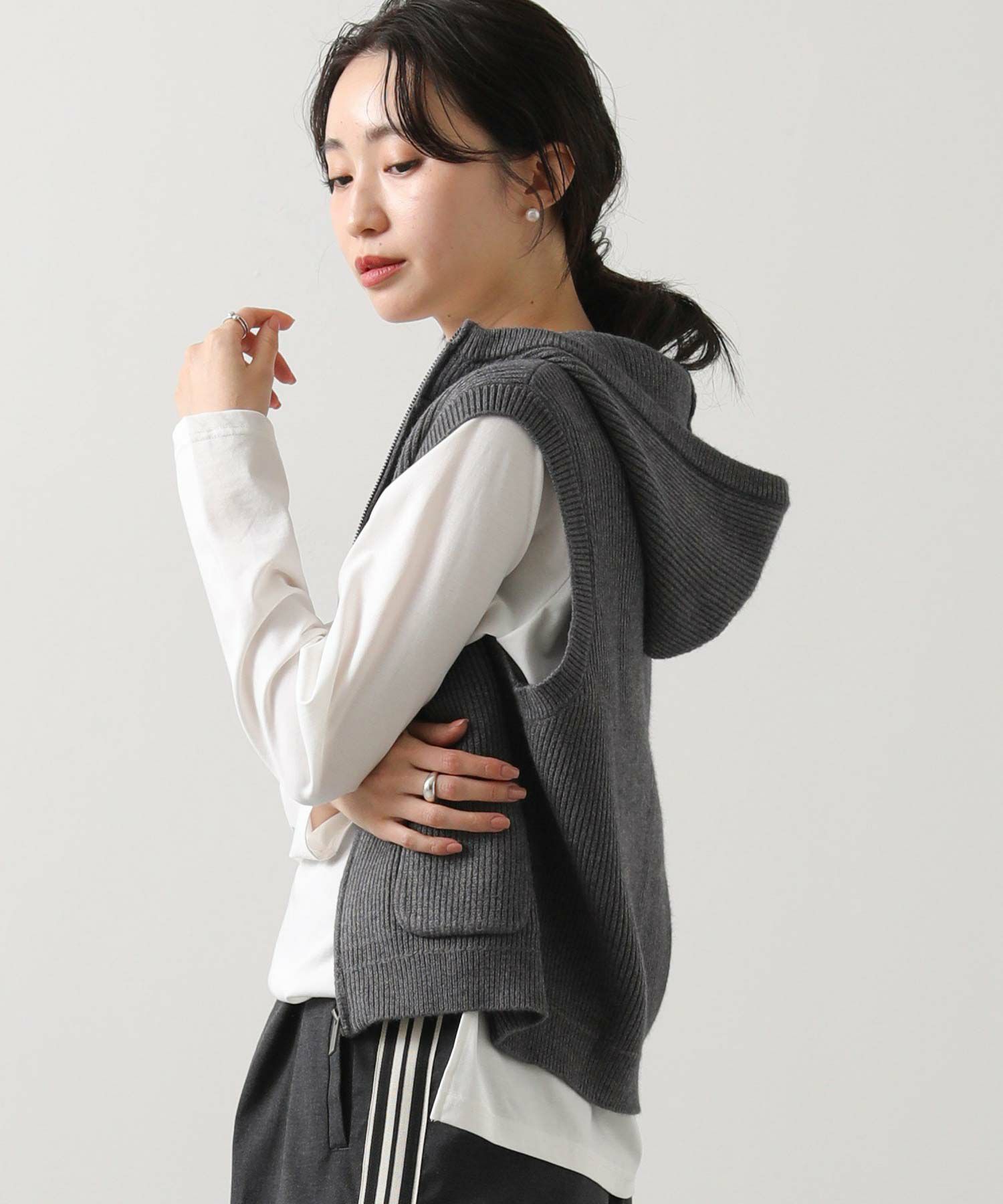 コンパクトなサイズ感が魅力のニットパーカーベスト。
