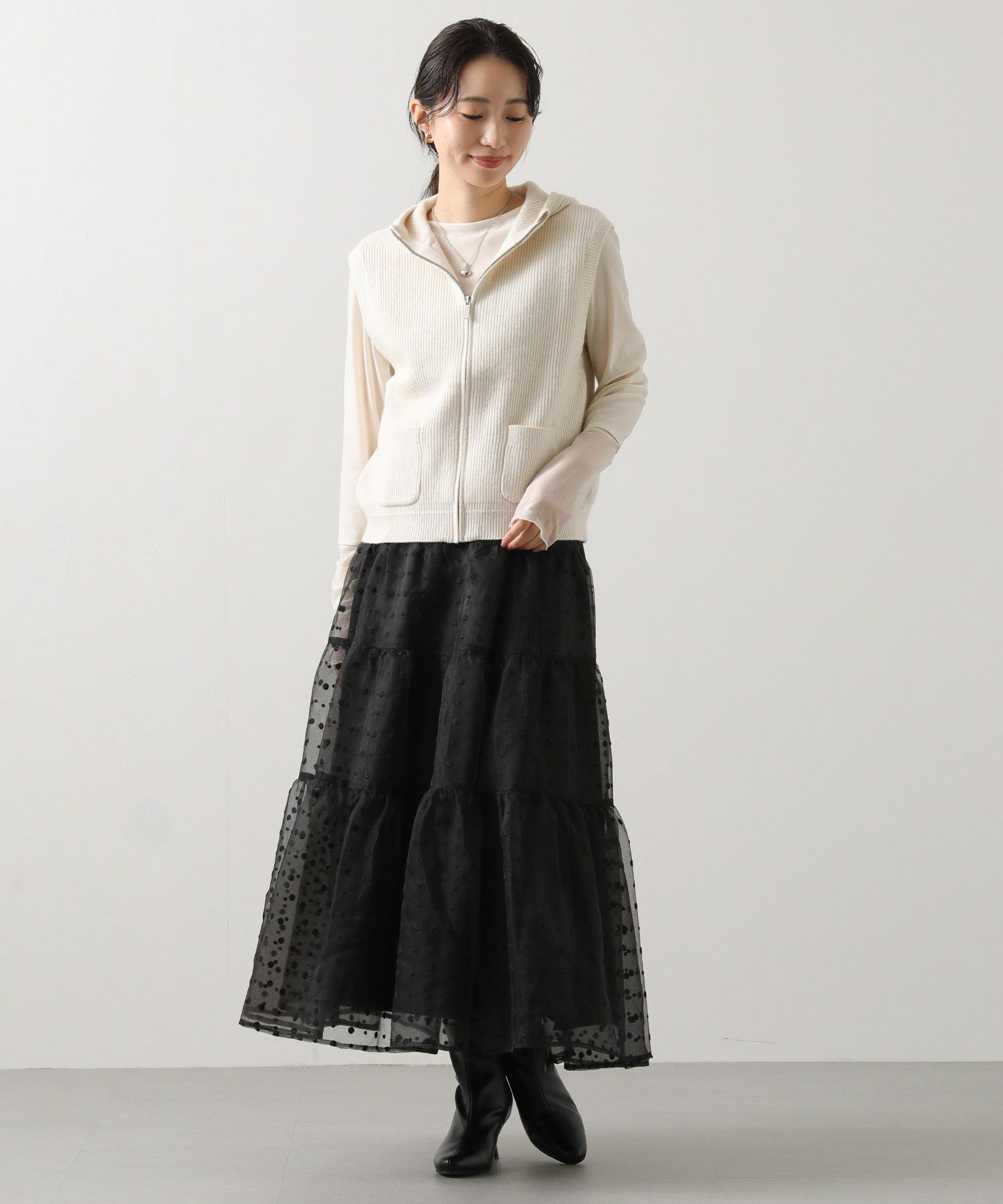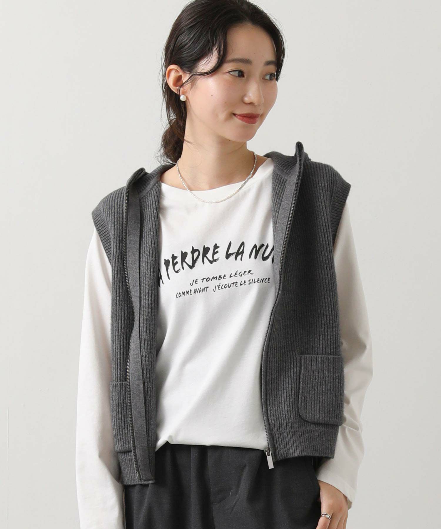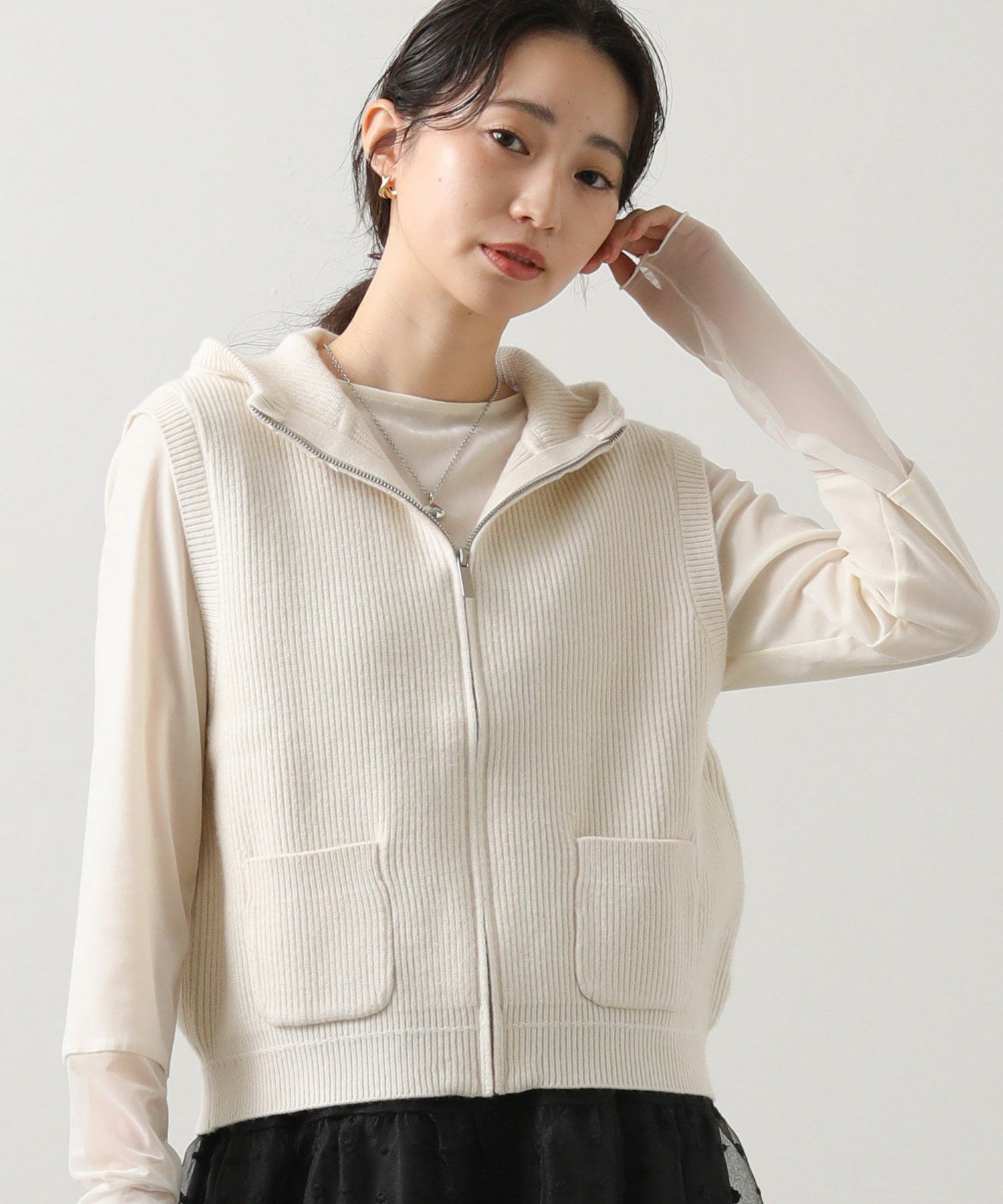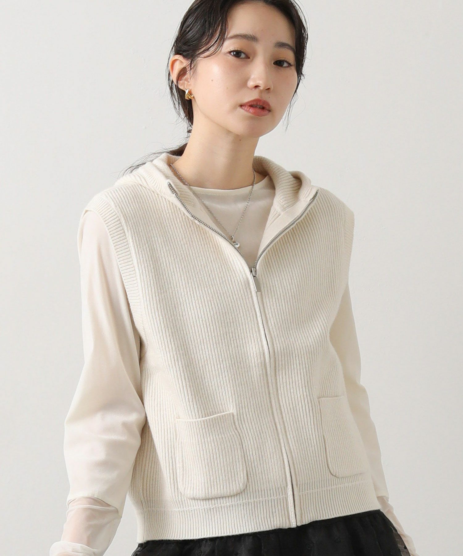 コンパクトなサイズ感が魅力のニットパーカーベスト。